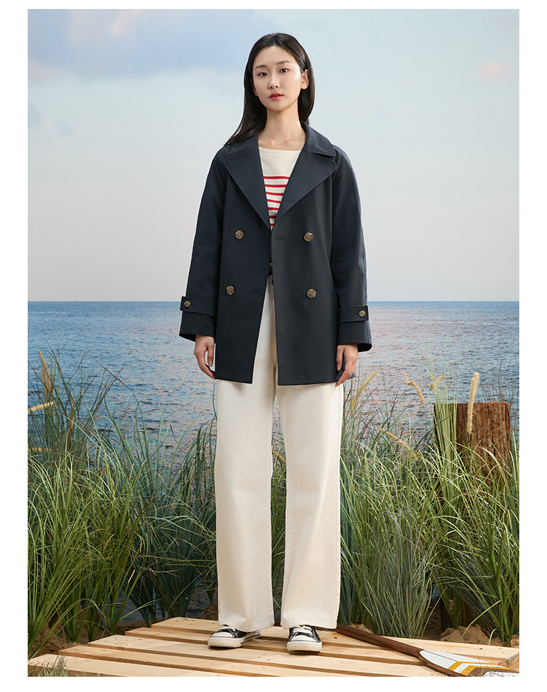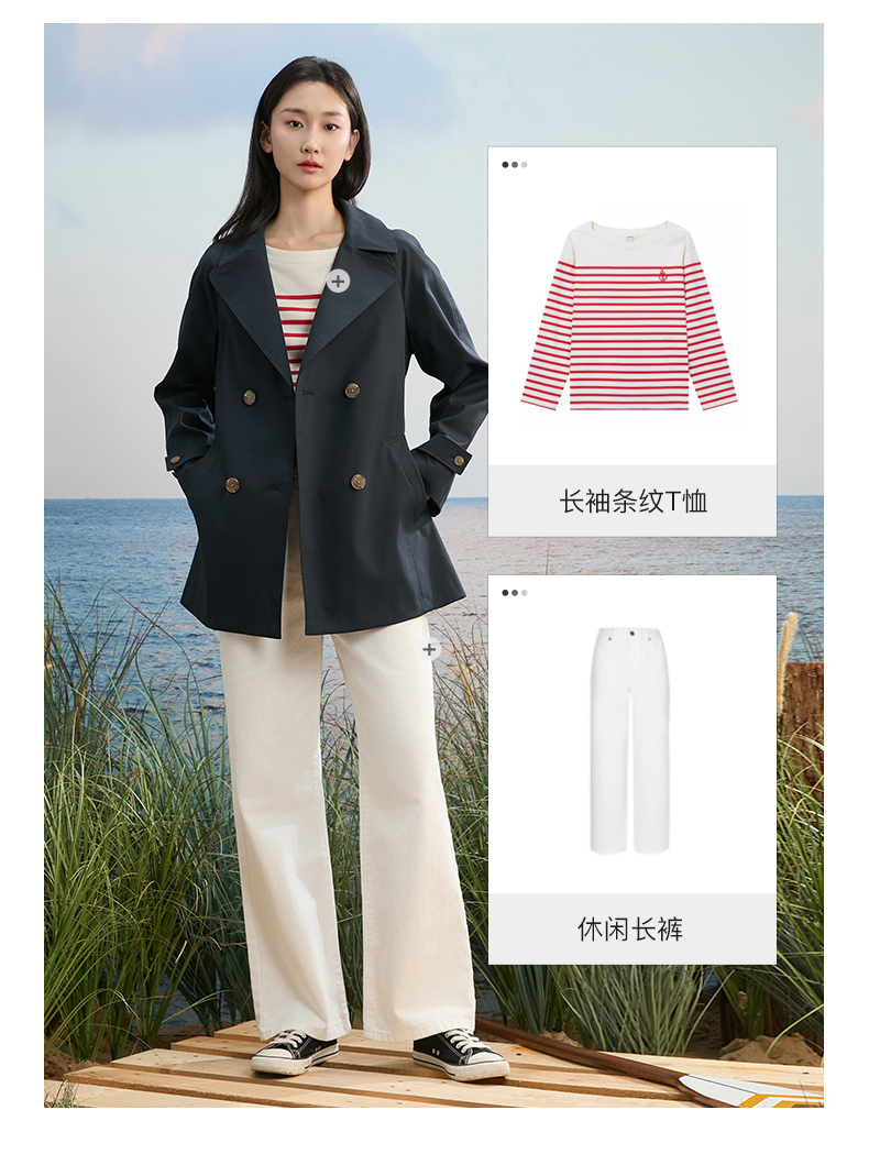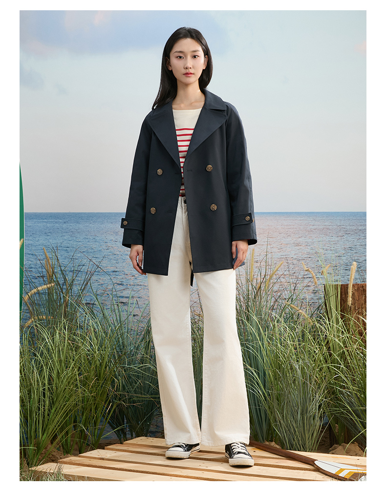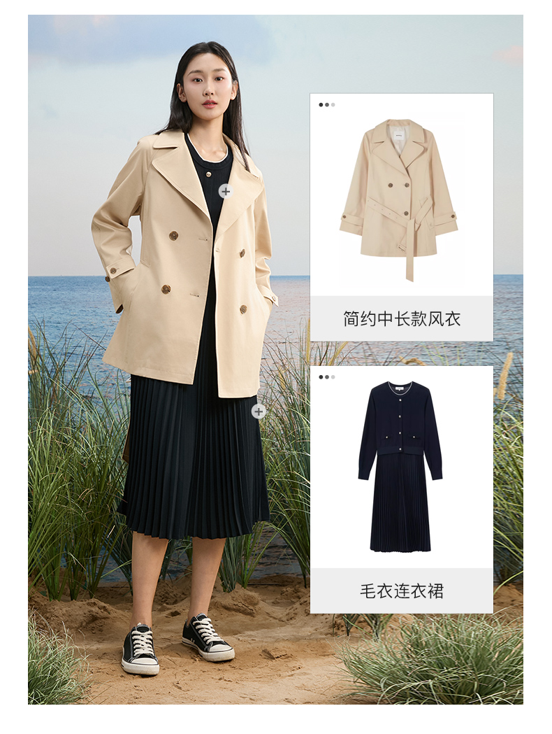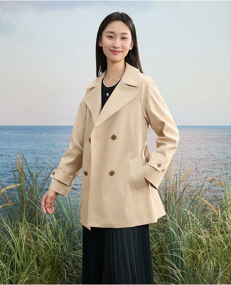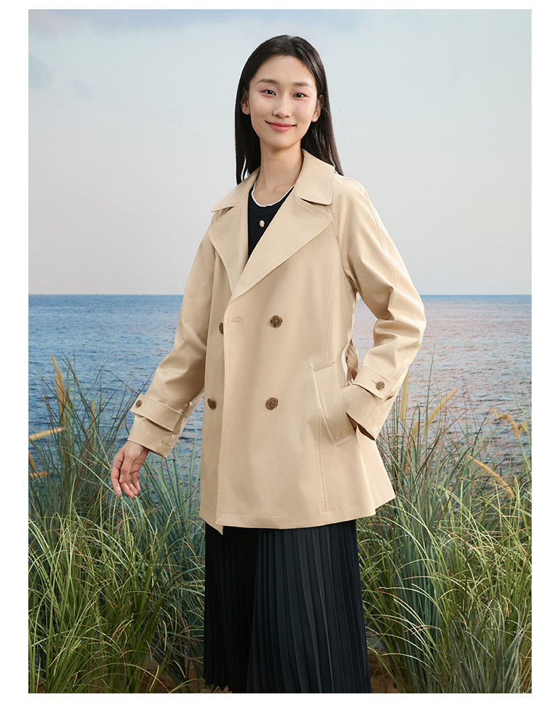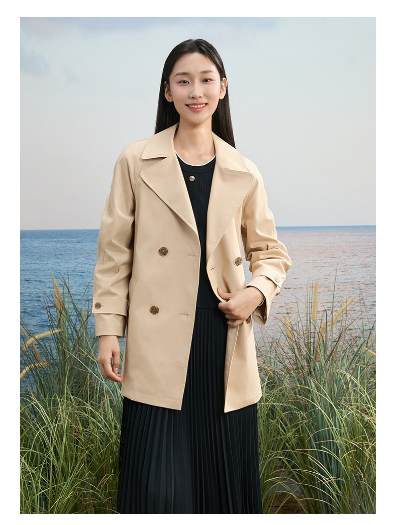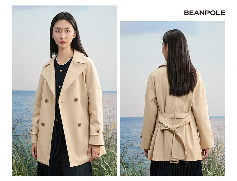 BEANPOLE滨波 春季女士韩系简约舒适外套气质经典休闲双排扣风衣