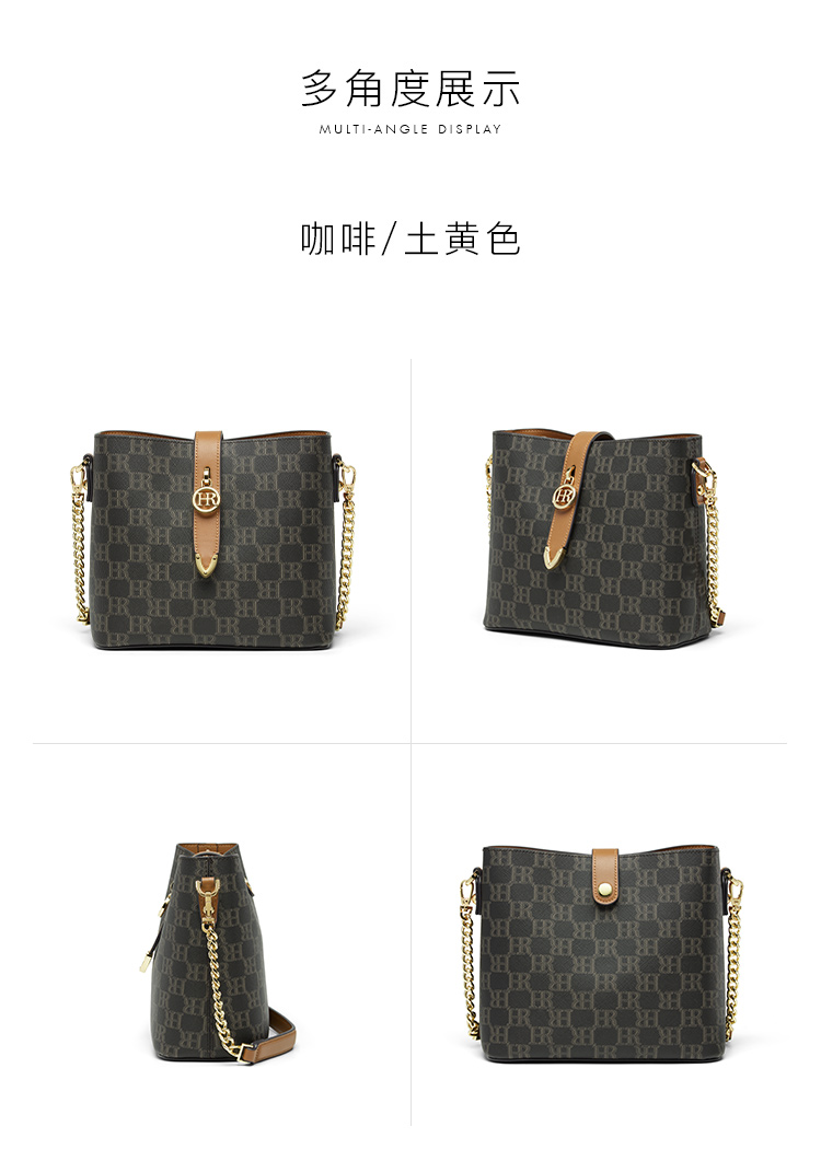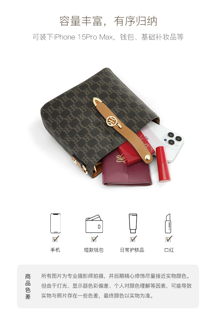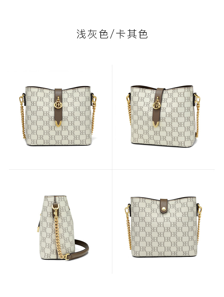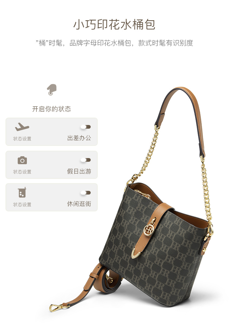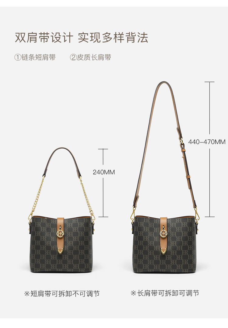 HR赫莲娜水桶包女新款2025上班通勤手提包轻奢老花百搭单肩斜挎包