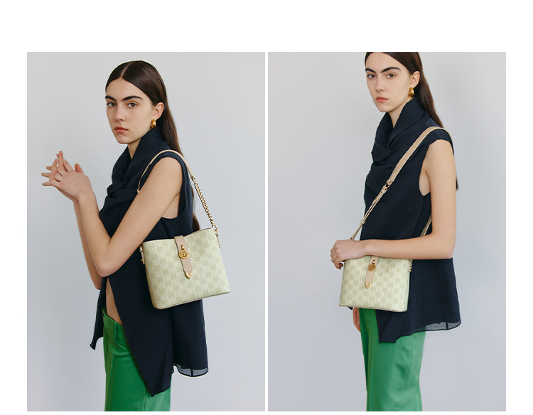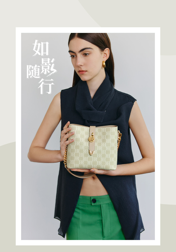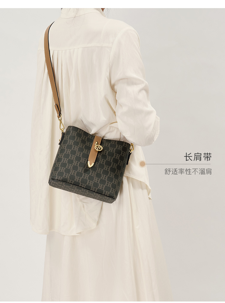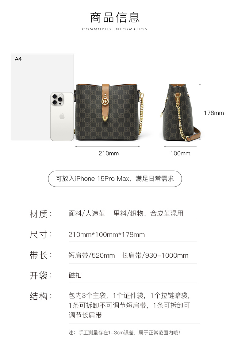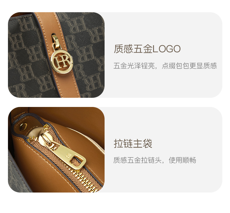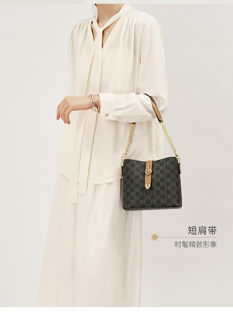 HR赫莲娜水桶包女新款2025上班通勤手提包轻奢老花百搭单肩斜挎包