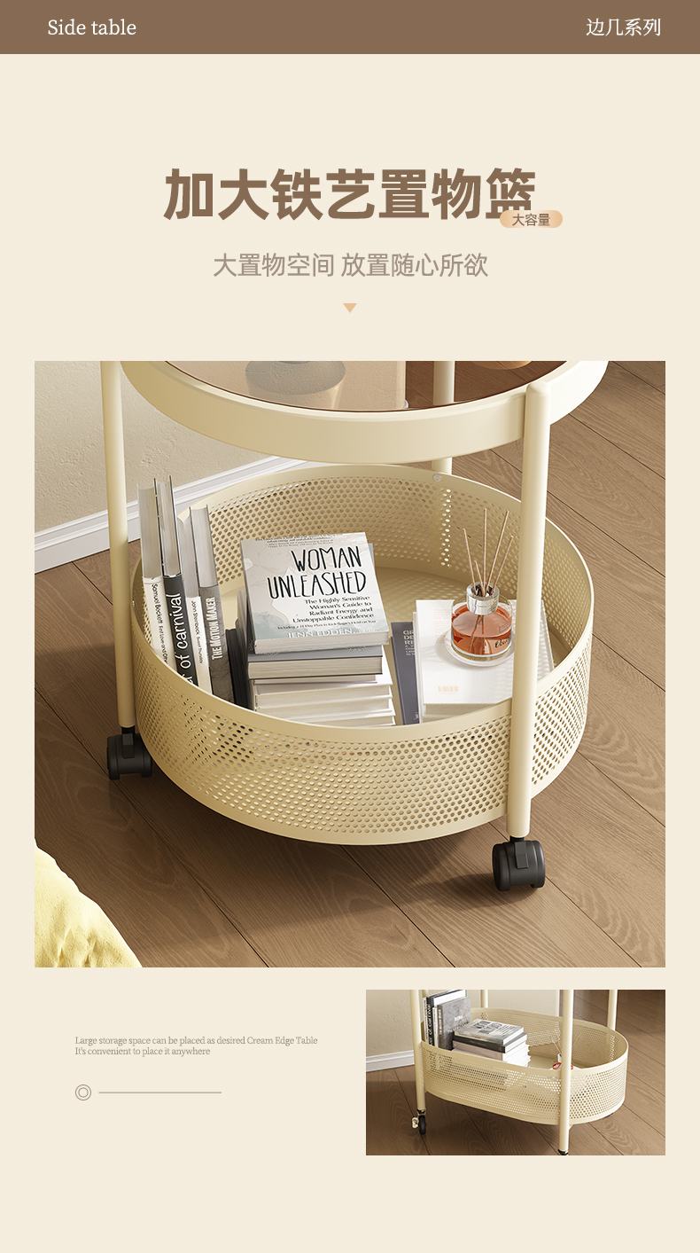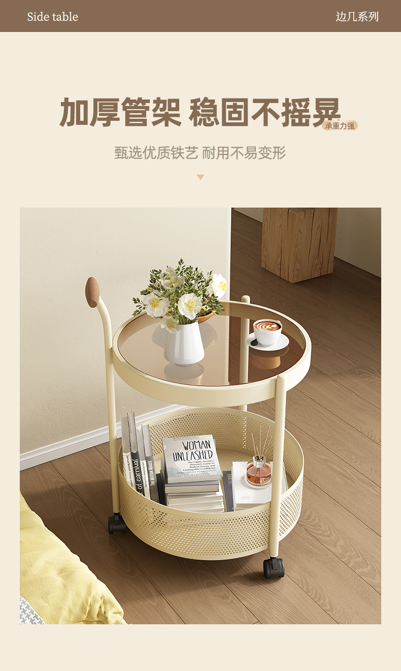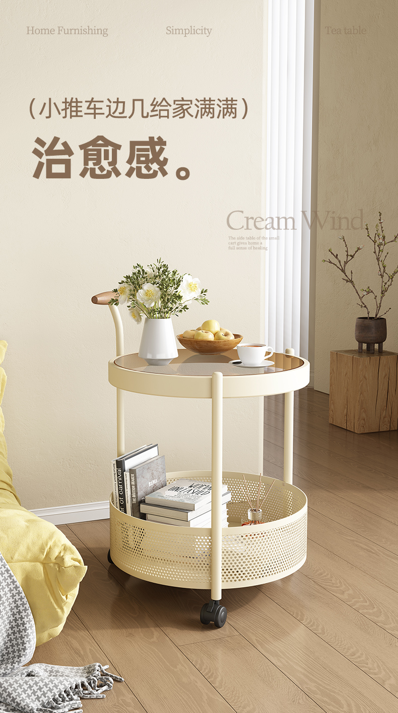 边几可移动茶几高级沙发边柜客厅中复古风小推车置物架带轮小桌子