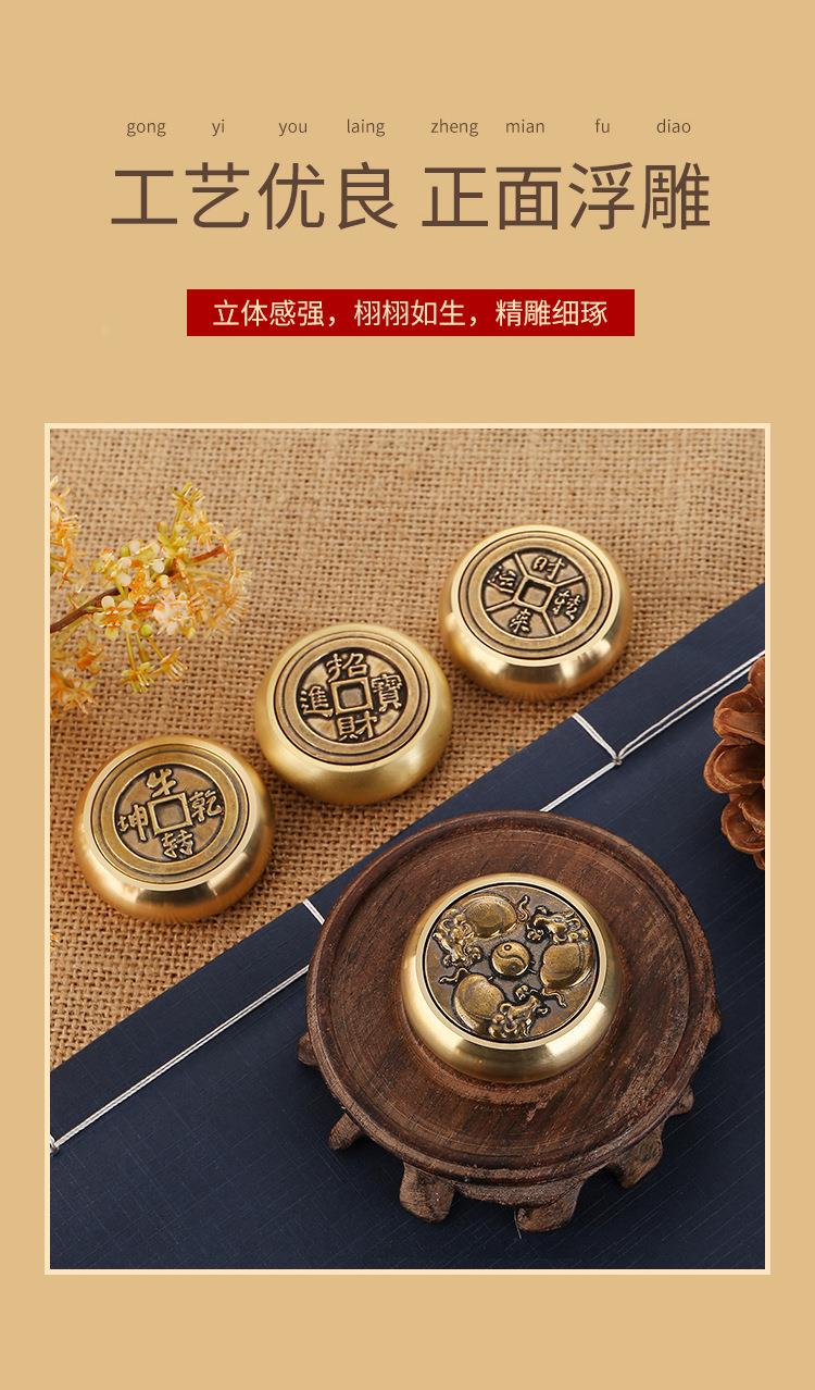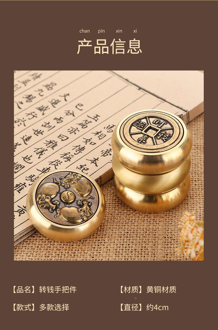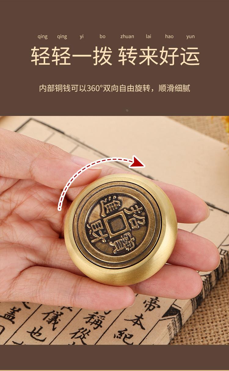 黄铜指尖陀螺时来运转解压转钱拉丝摆件工艺品八方来财转转手把件