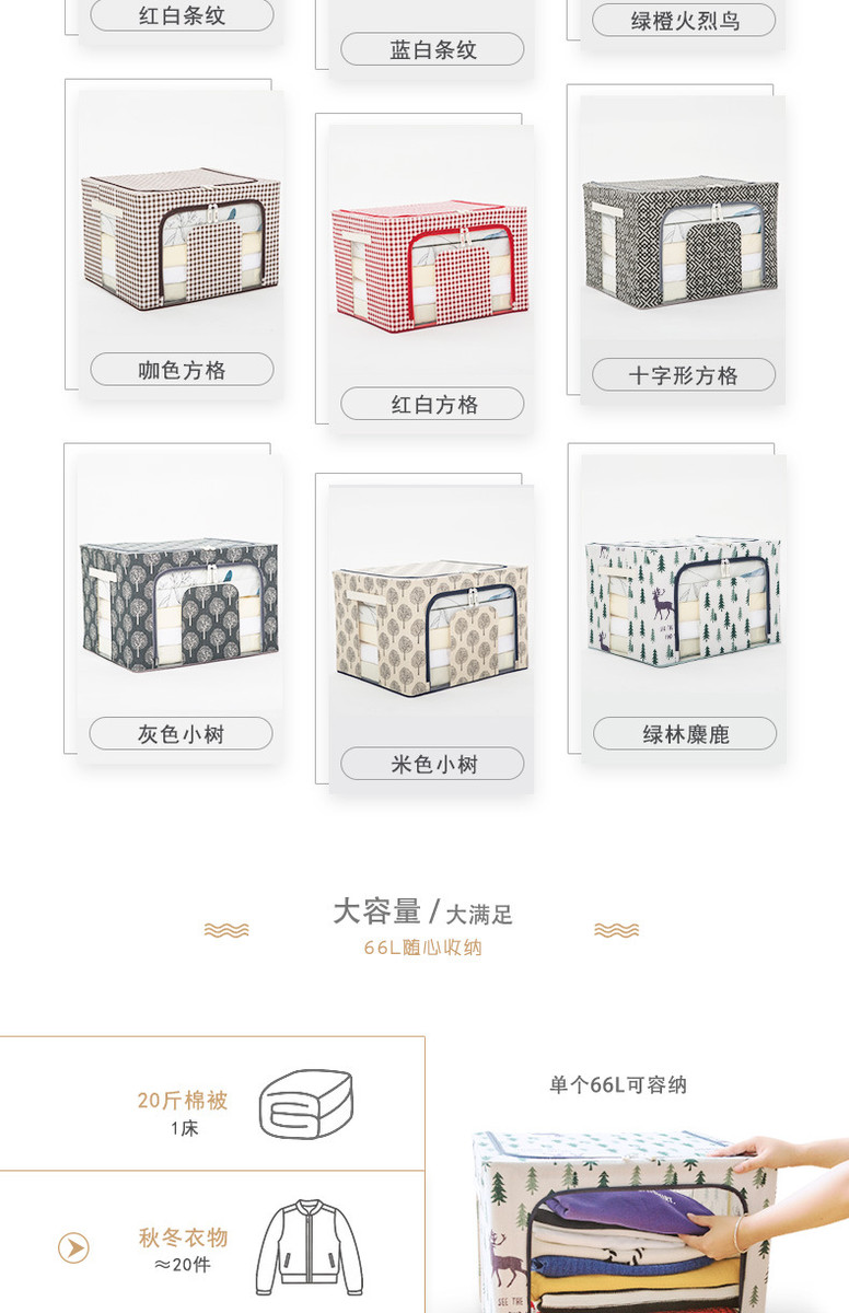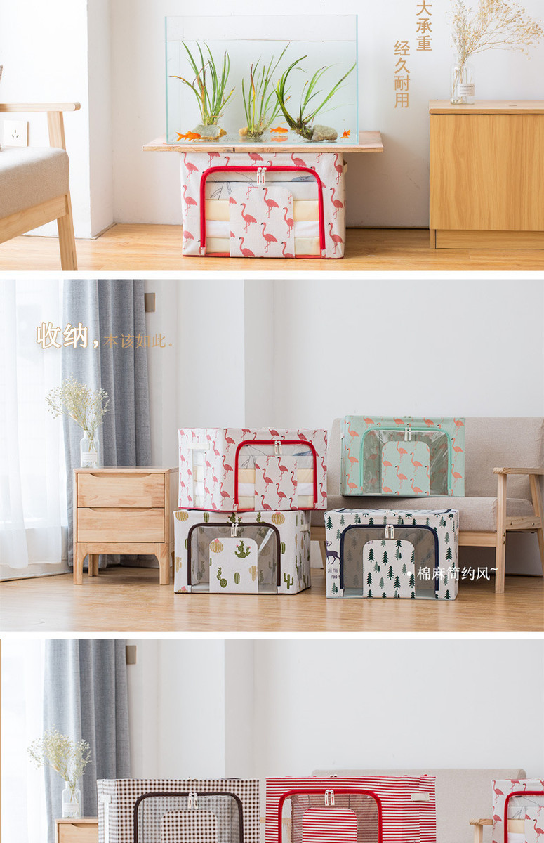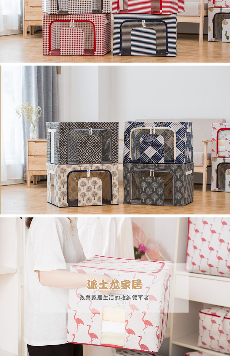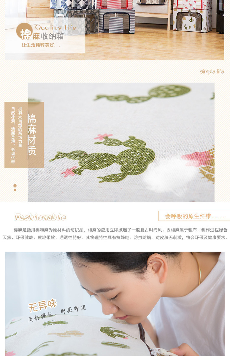 派士龙棉麻收纳箱防水防潮布艺66升可折叠衣物棉被玩具百纳储物箱