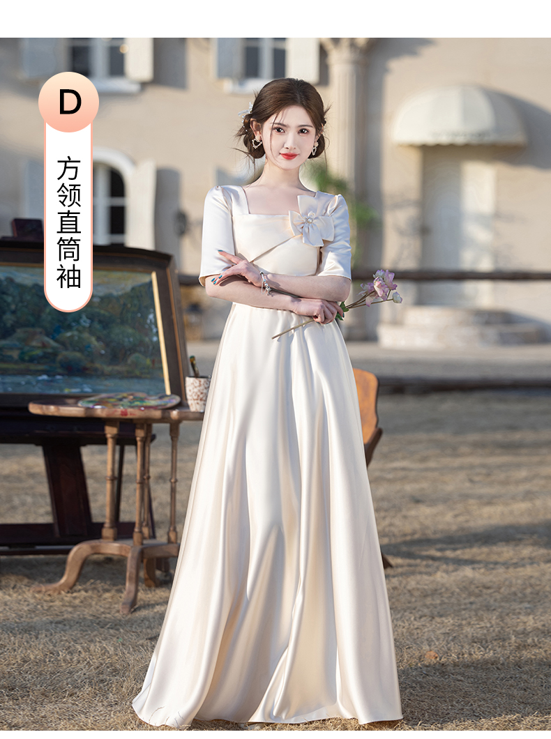 缎面大码伴娘服2025新款夏香槟色伴娘团礼服裙平时可穿高级晚礼服