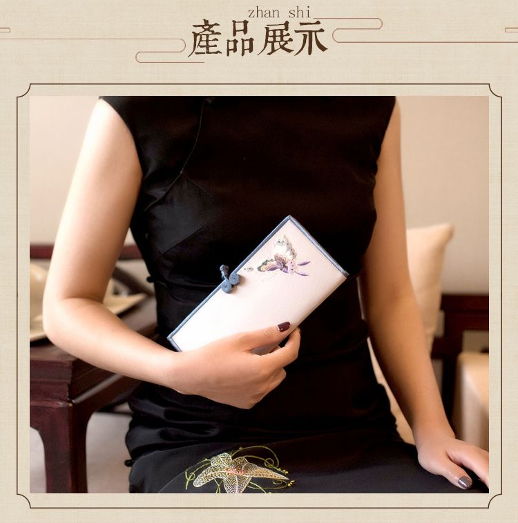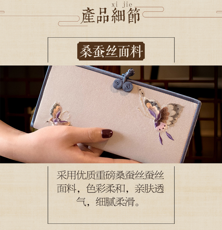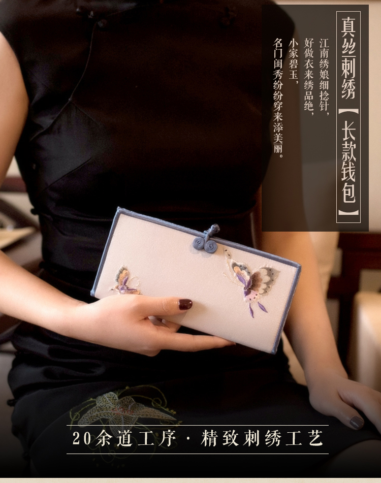 新款搭扣长款钱包苏绣手工刺绣手包桑蚕丝绣花女包包送礼古风老外