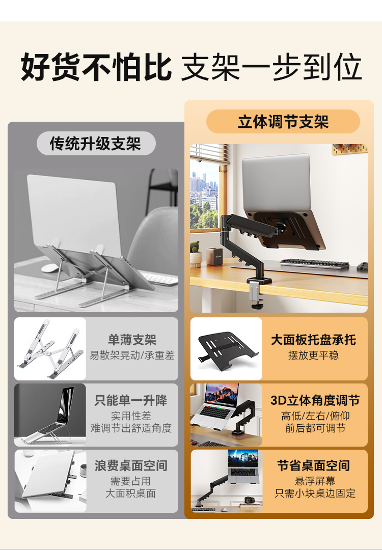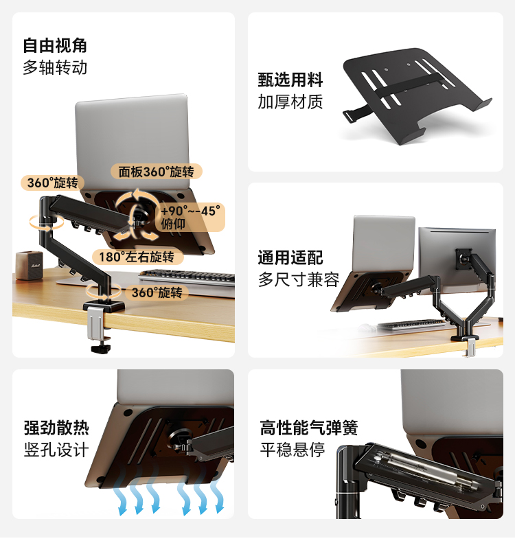 友狮笔记本支架机械臂托盘桌面悬空托架旋转升降电脑悬浮支撑架