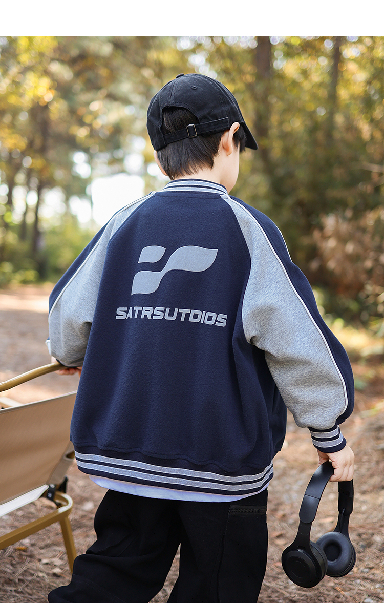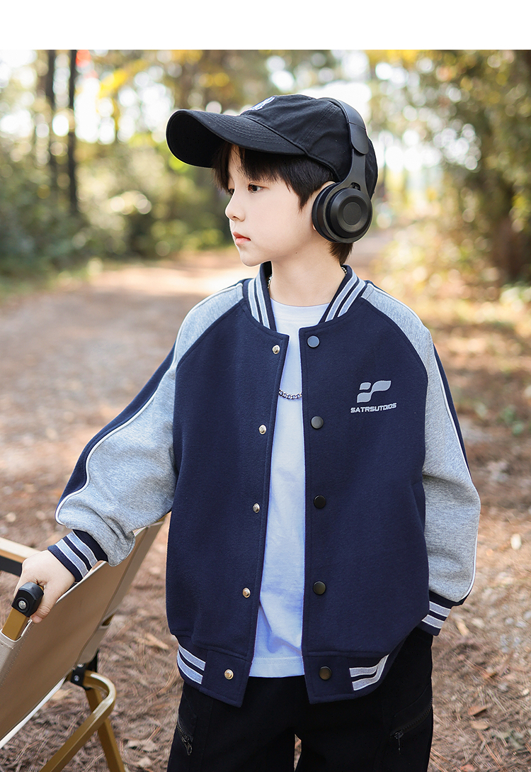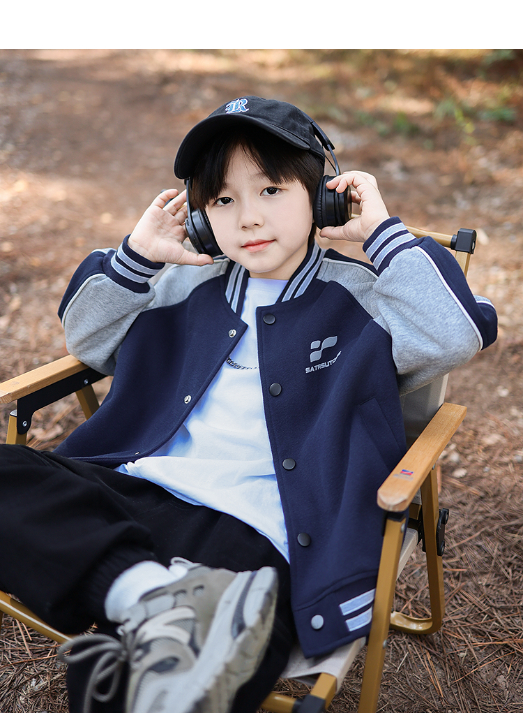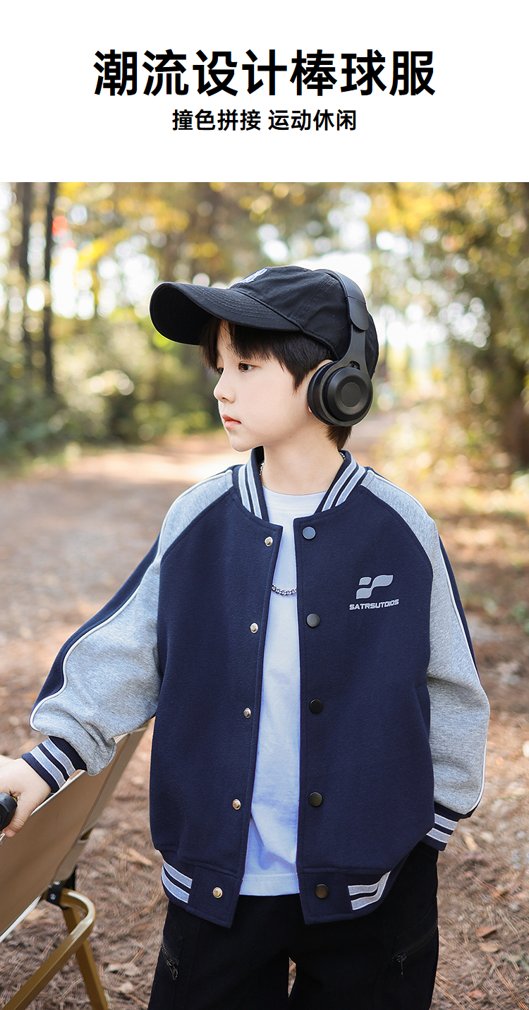 御宝当家童装男童外套儿童棒球服学院风春秋2025新款撞色男孩上衣