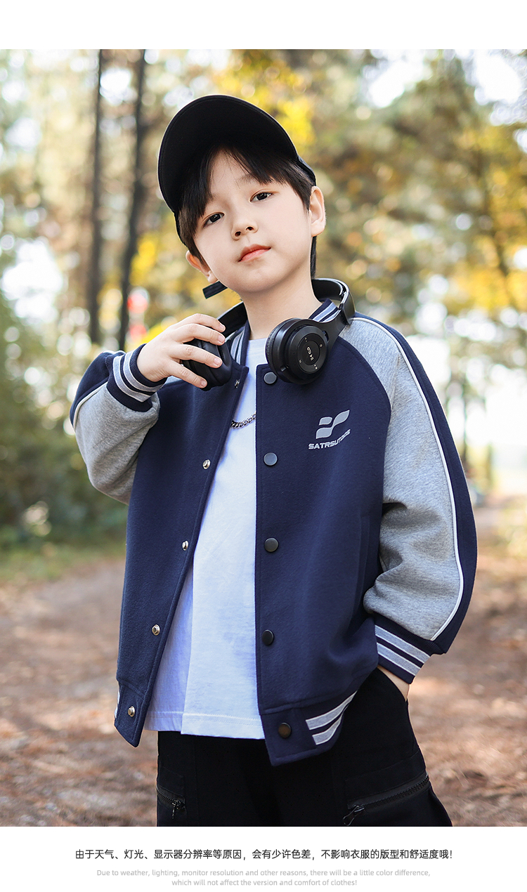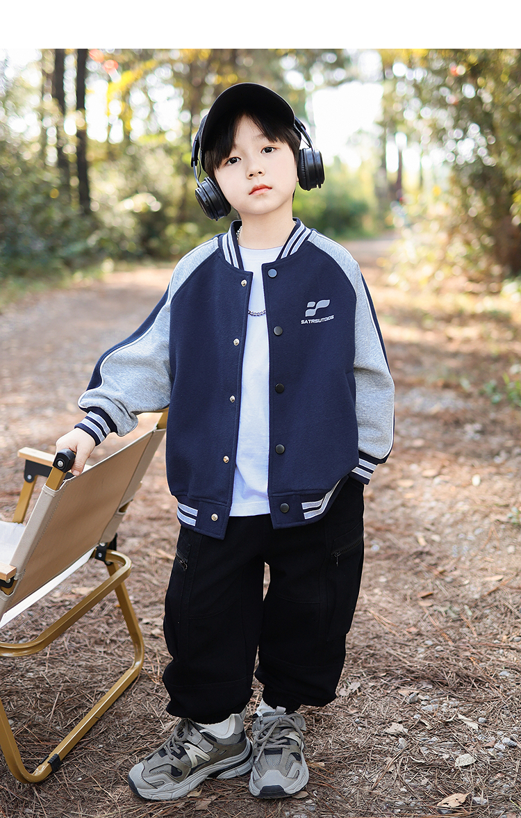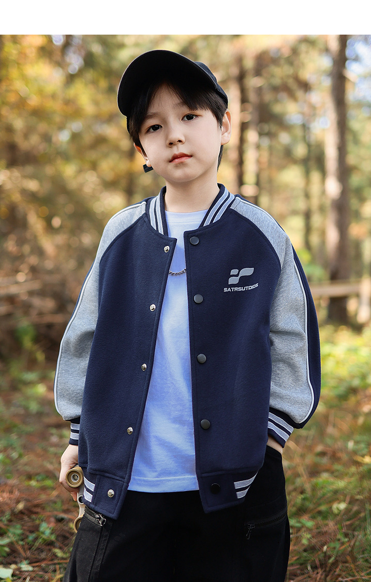 御宝当家童装男童外套儿童棒球服学院风春秋2025新款撞色男孩上衣