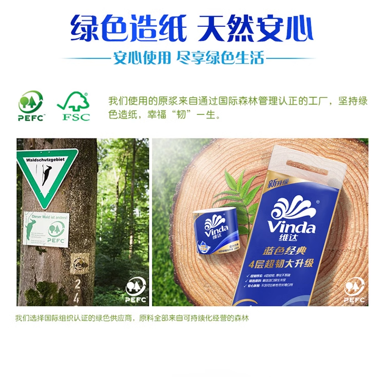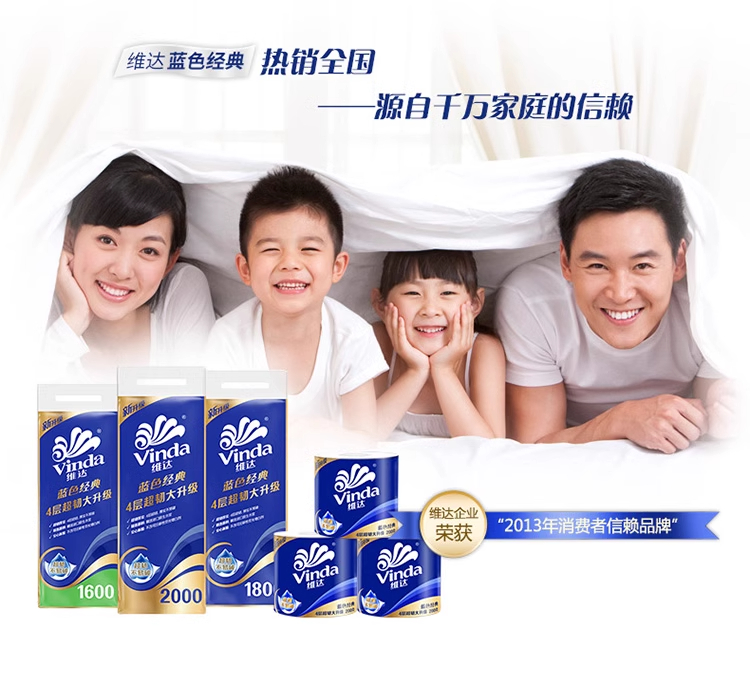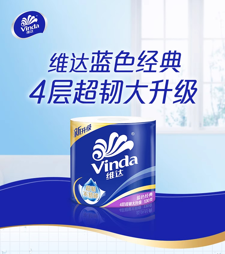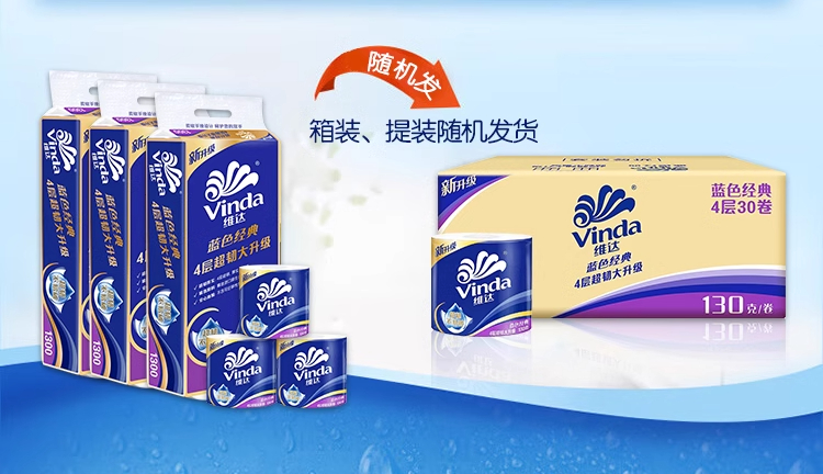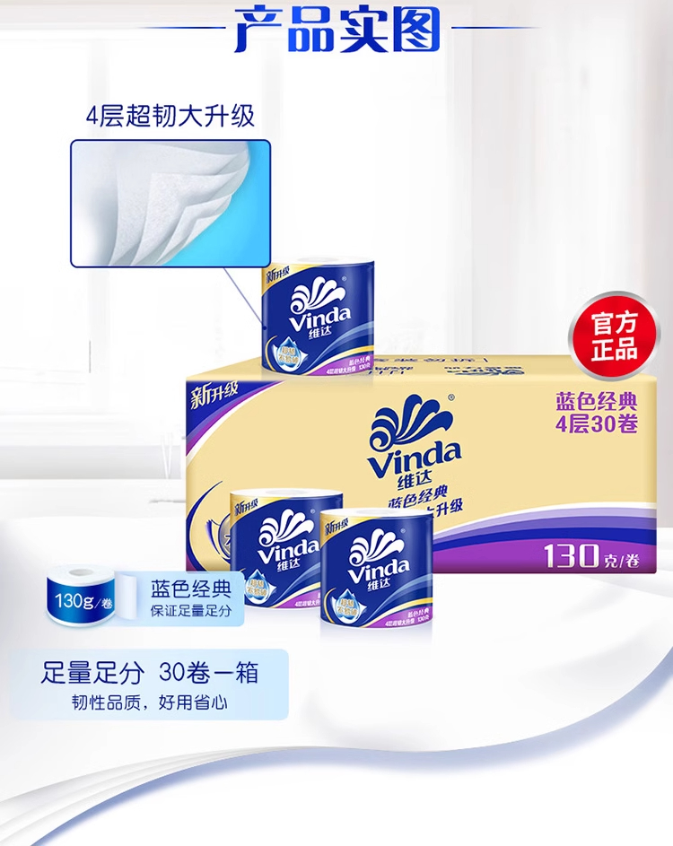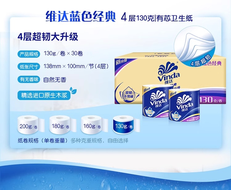 维达蓝色经典有芯卫卷卷纸4层130克手纸家用实惠装整箱纸巾卫生纸
