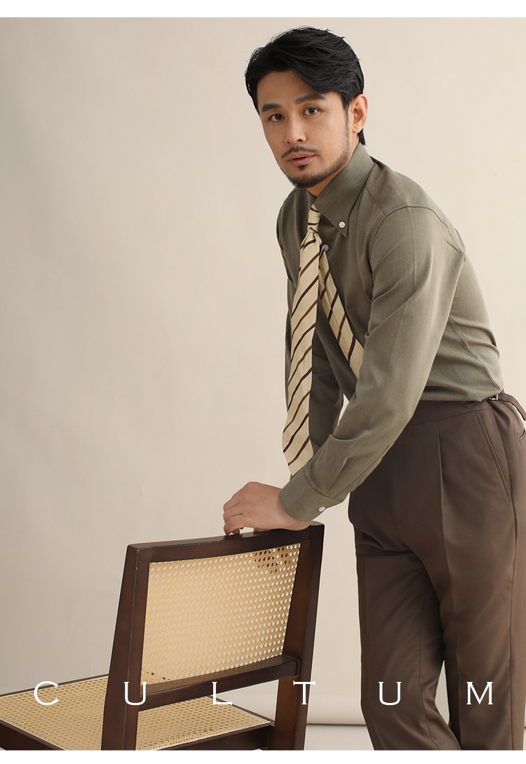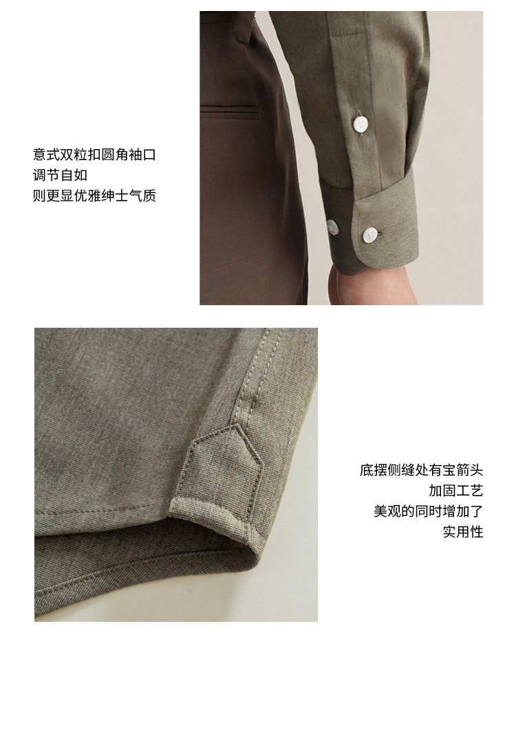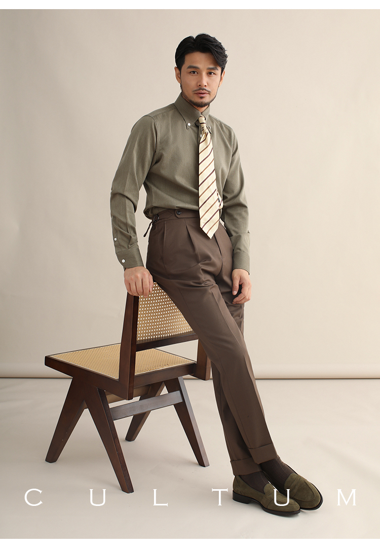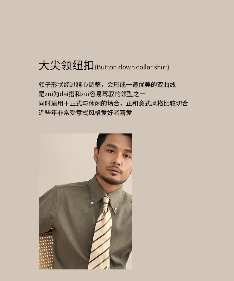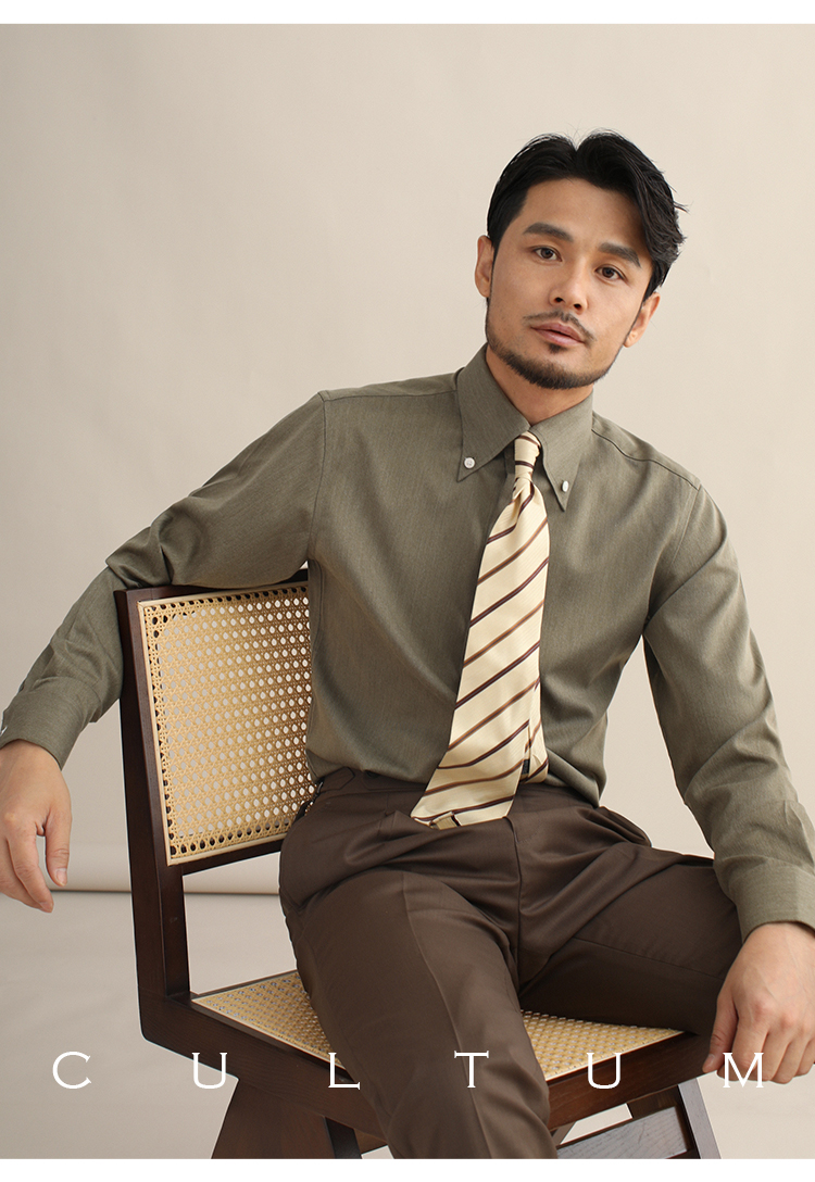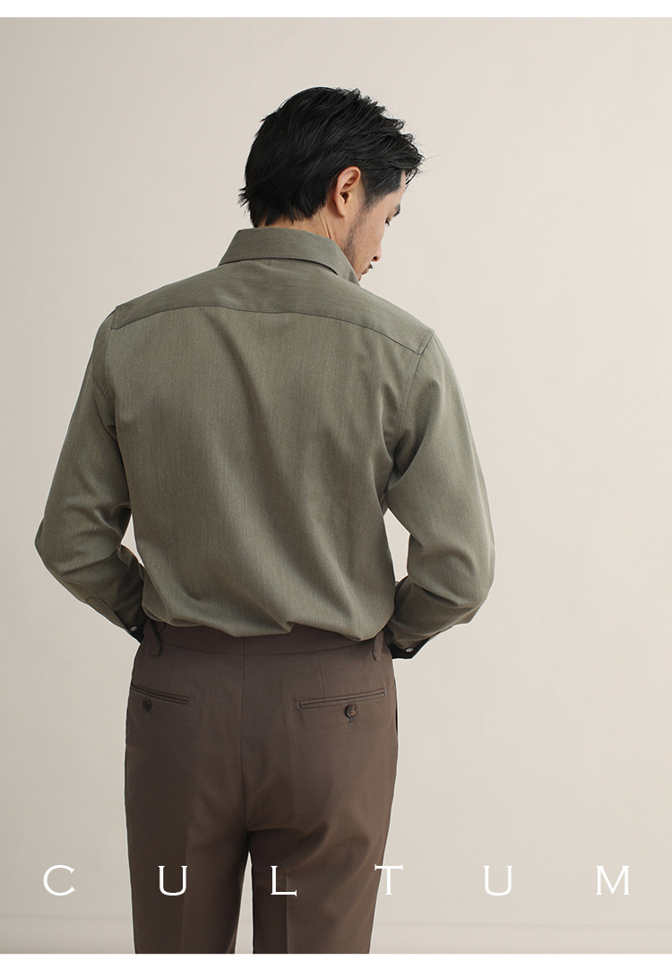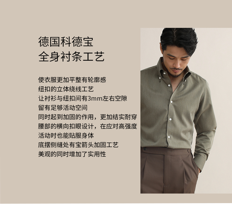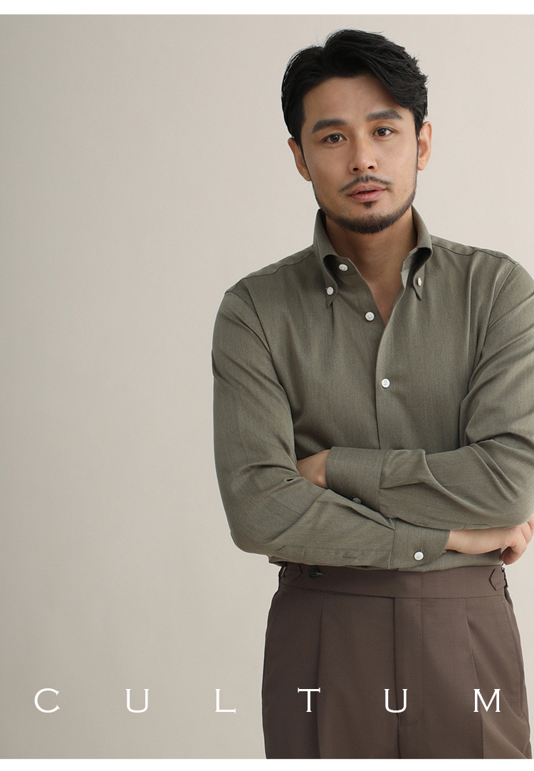 CULTUM意式免烫弹力纽扣领绿色长袖衬衫男士复古绅士休闲商务衬衣