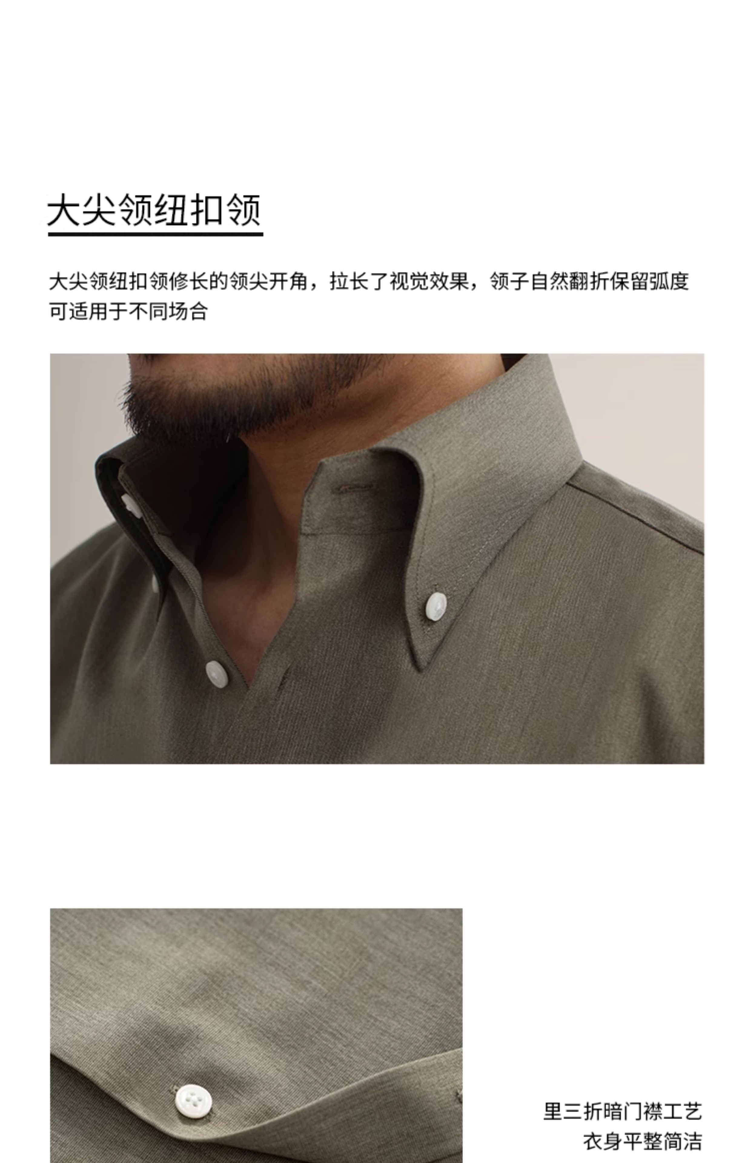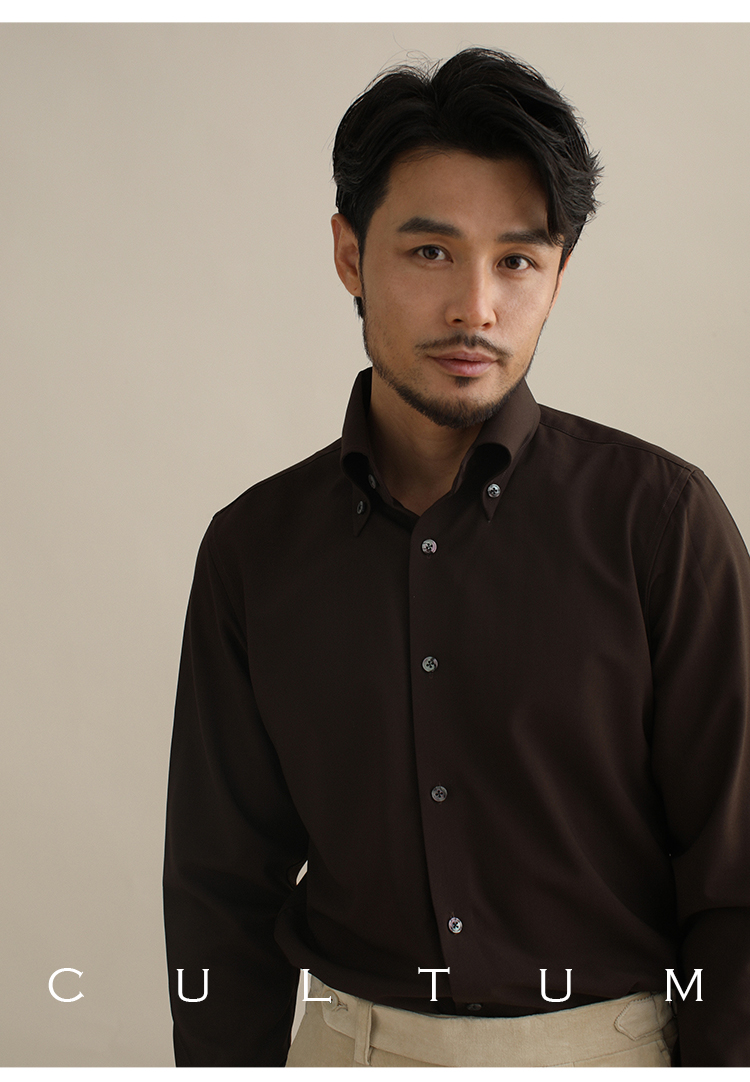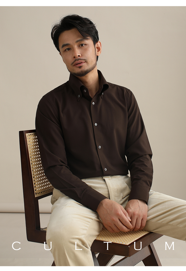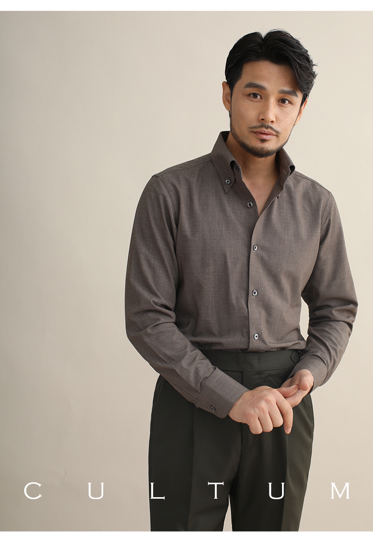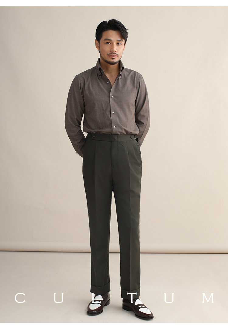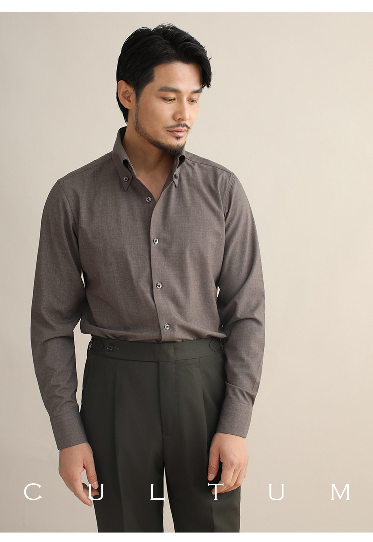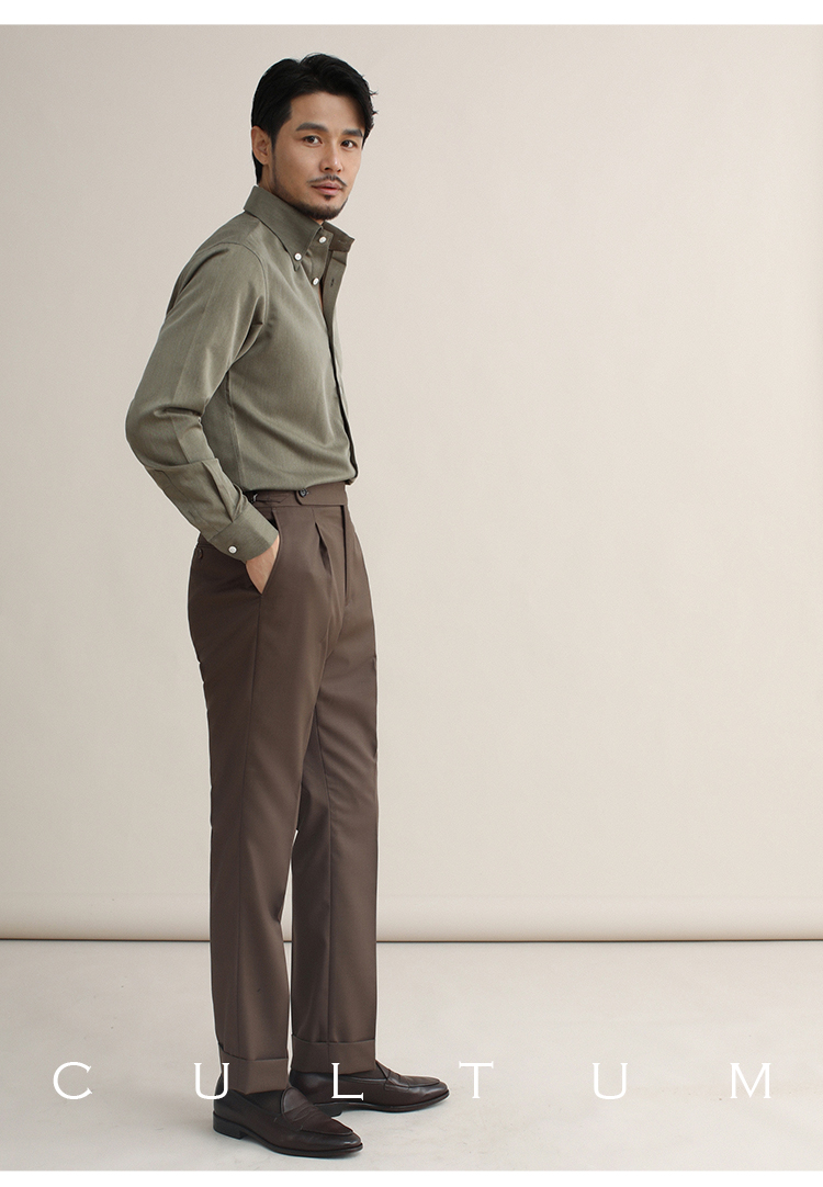 CULTUM意式免烫弹力纽扣领绿色长袖衬衫男士复古绅士休闲商务衬衣