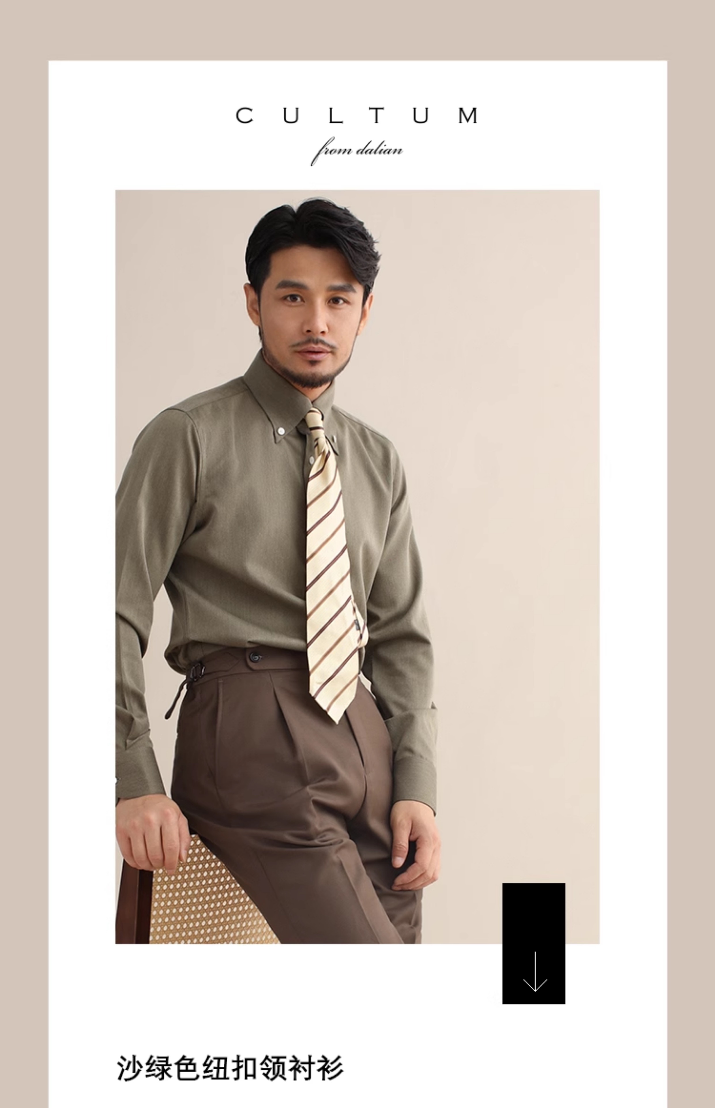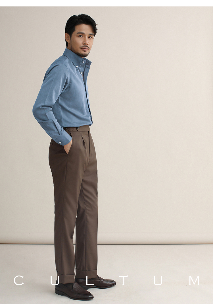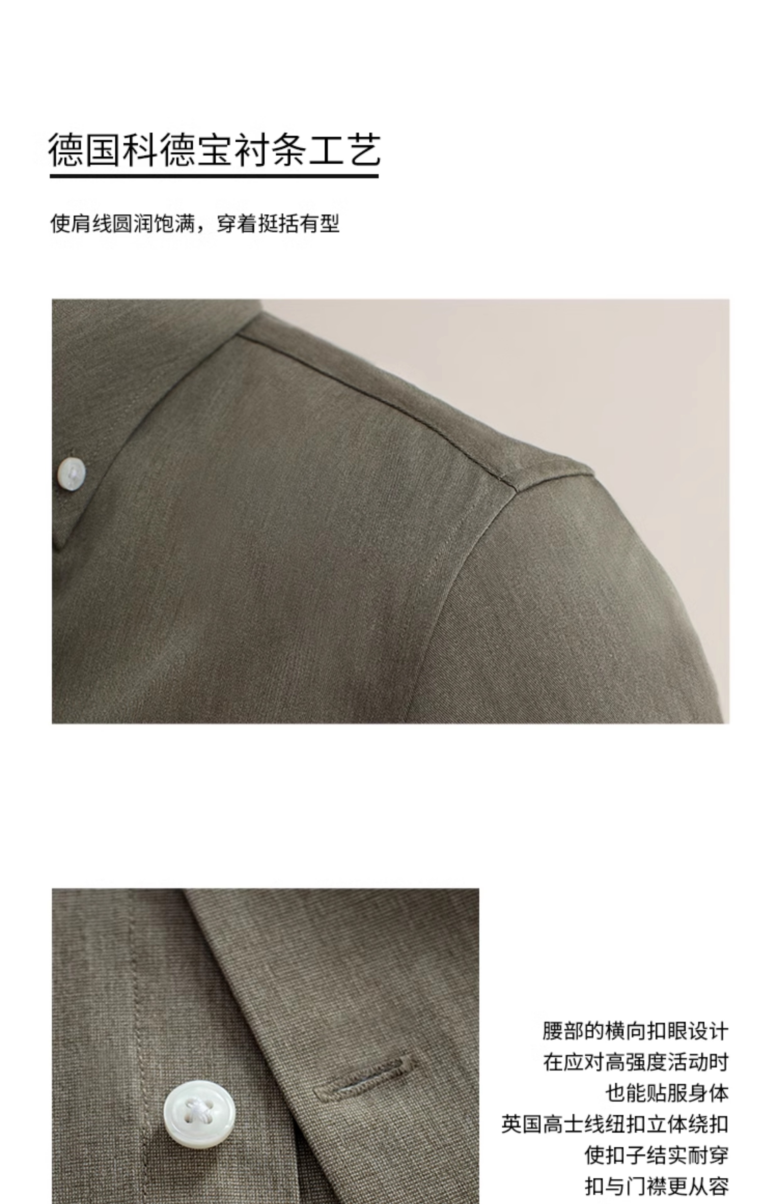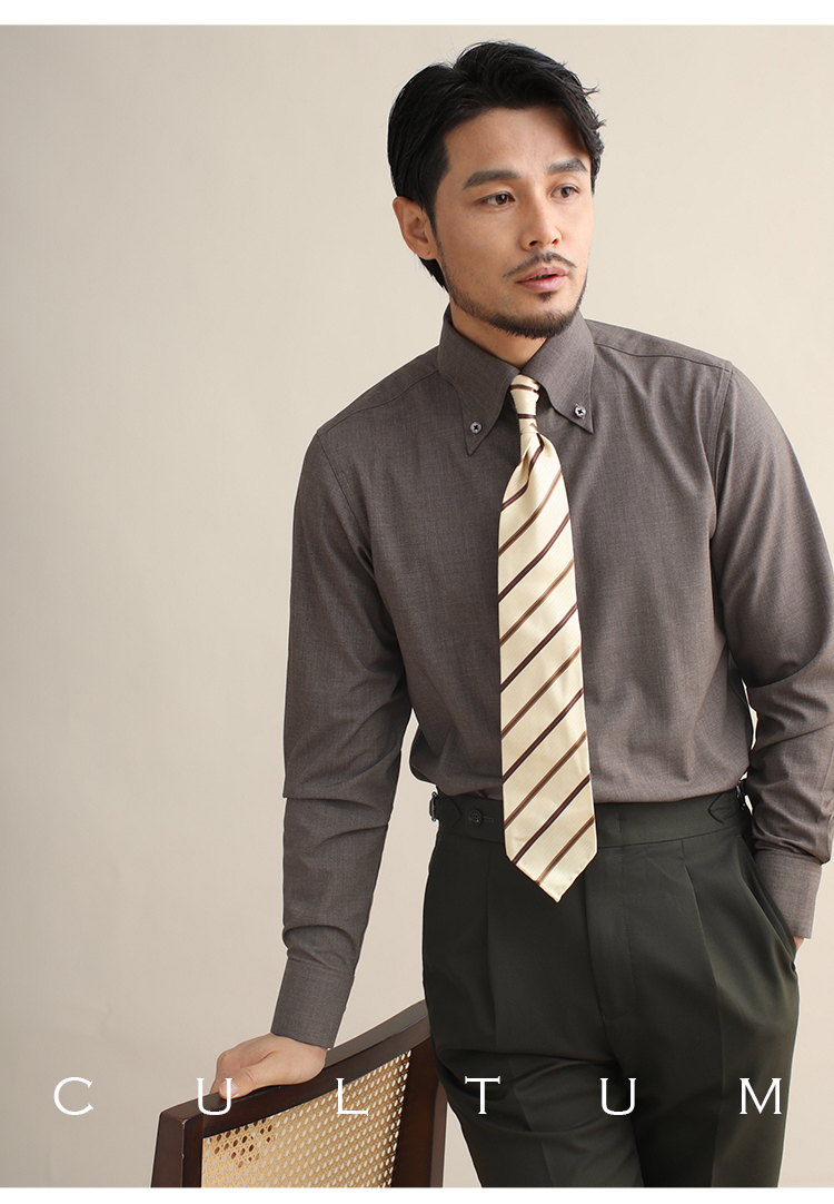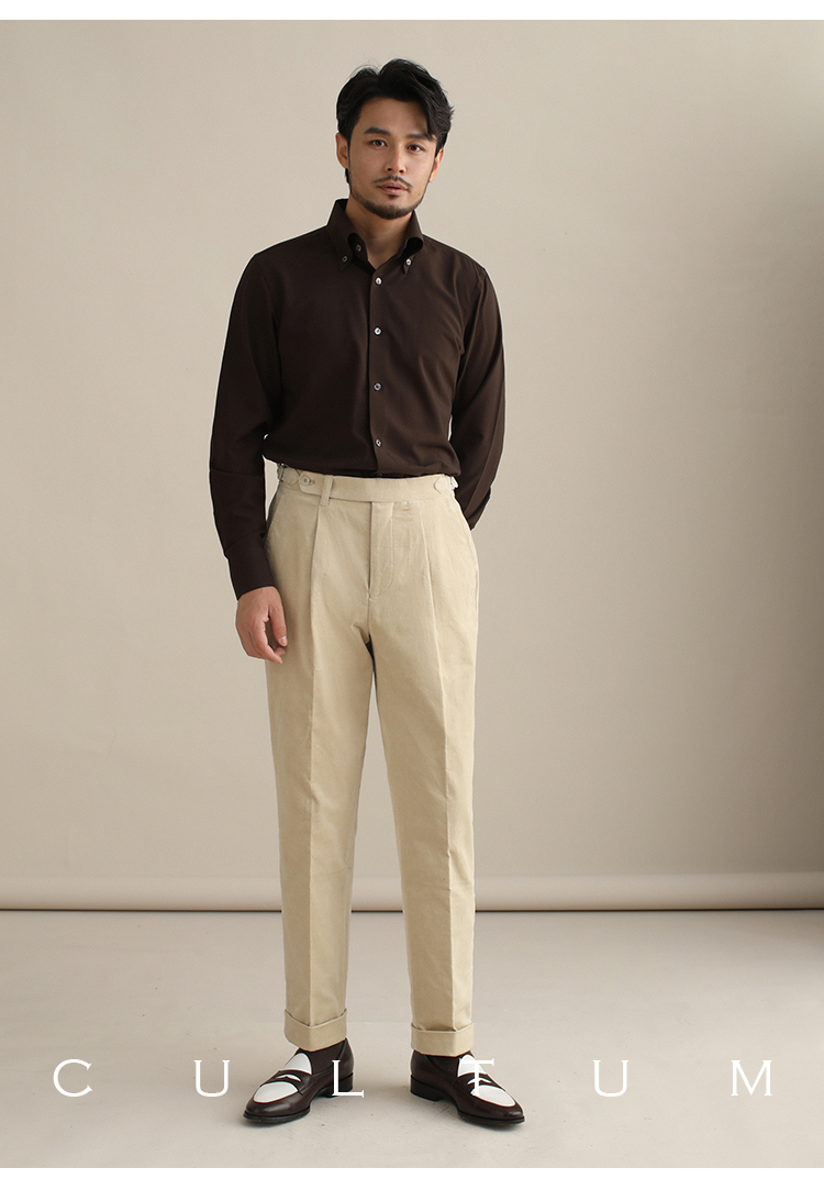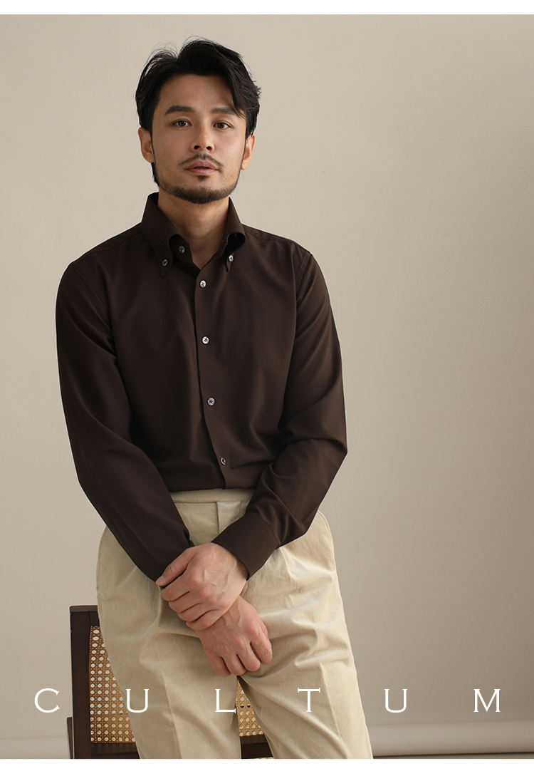 CULTUM意式免烫弹力纽扣领绿色长袖衬衫男士复古绅士休闲商务衬衣