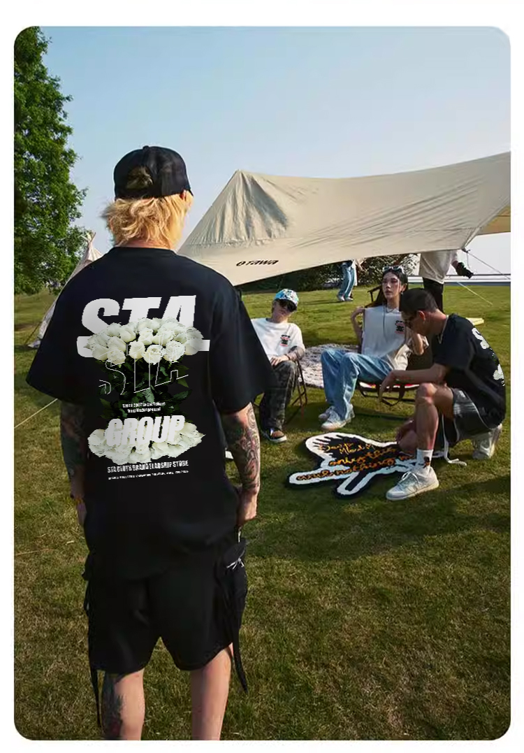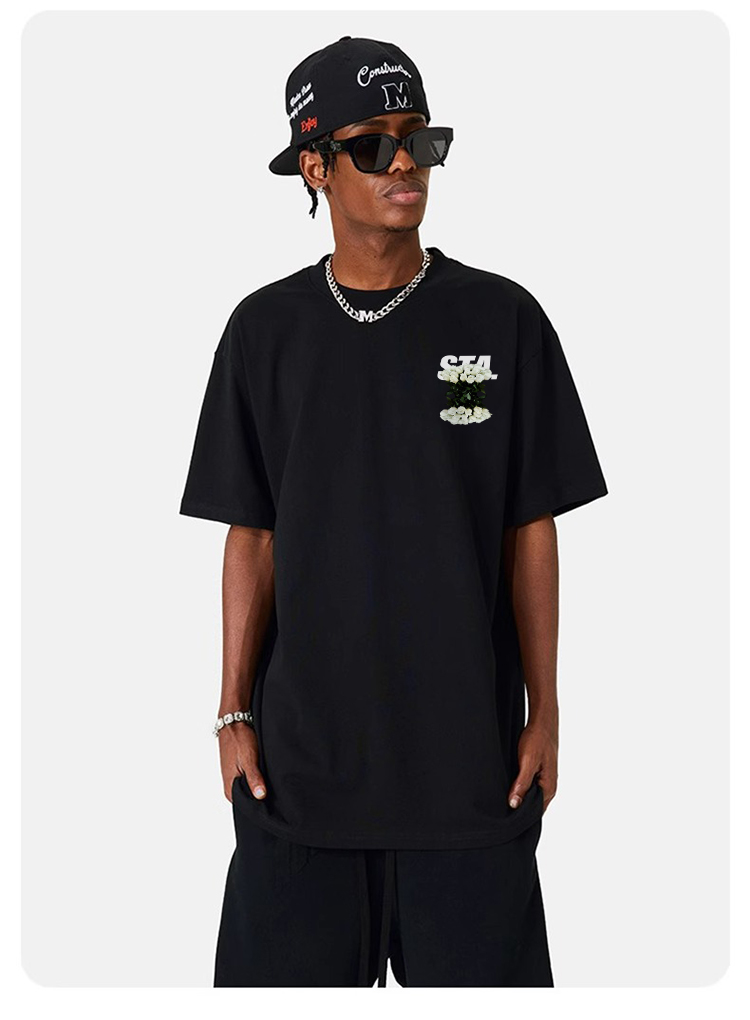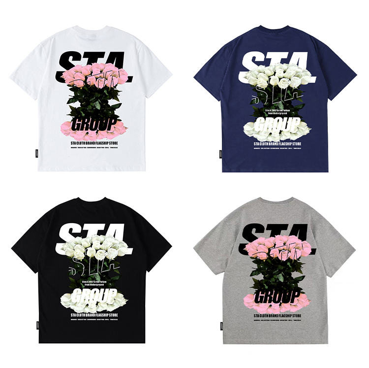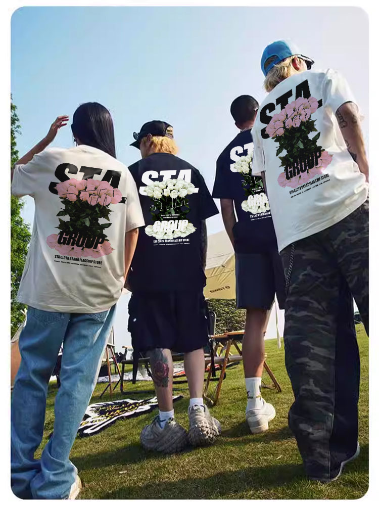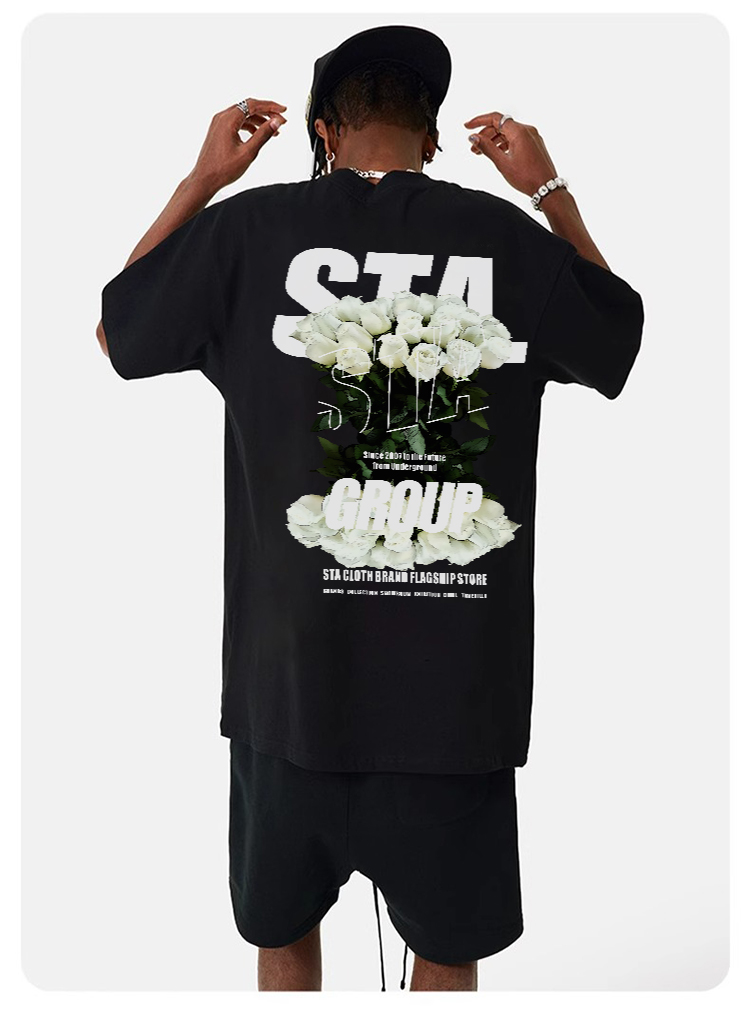 STA官方店24SS夏季新款花朵玫瑰男女生纯棉重磅t恤情侣装短袖上衣