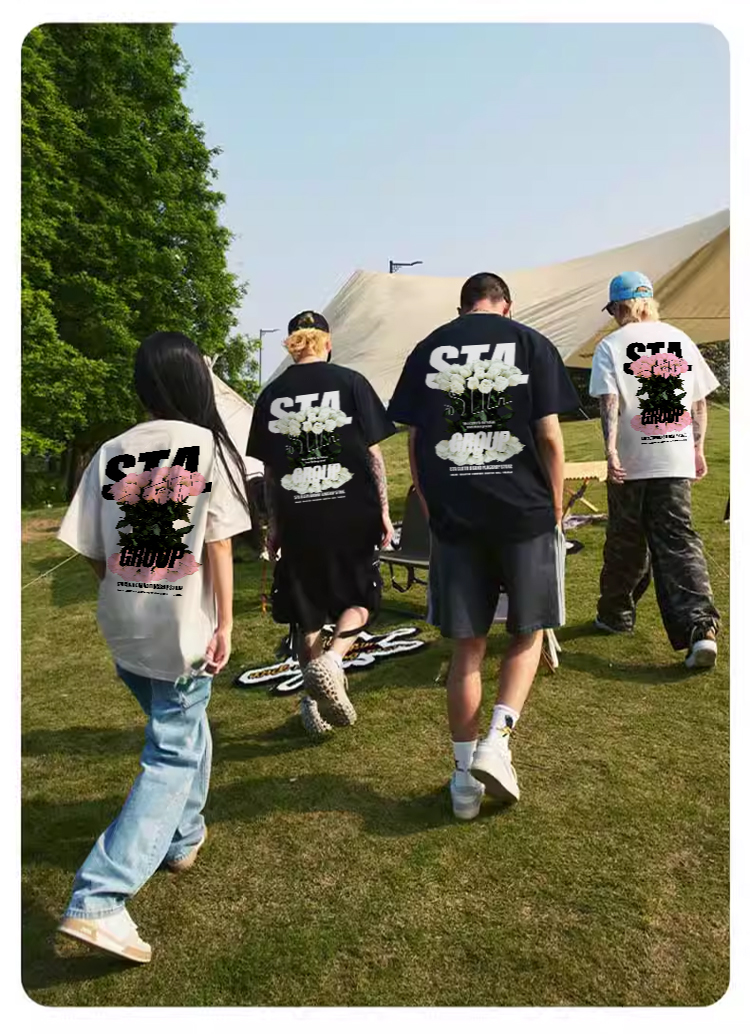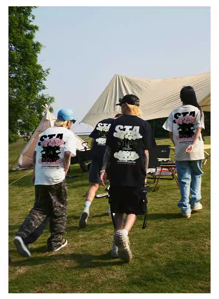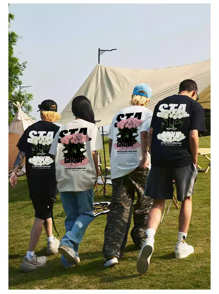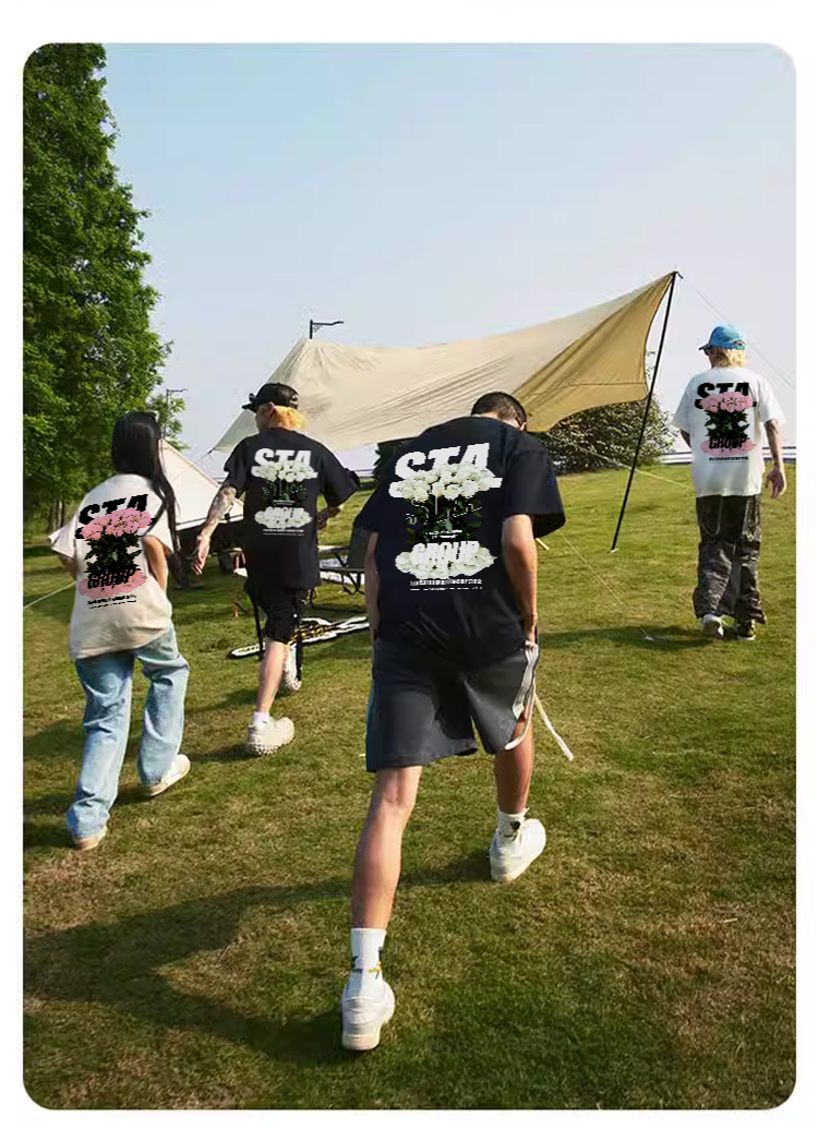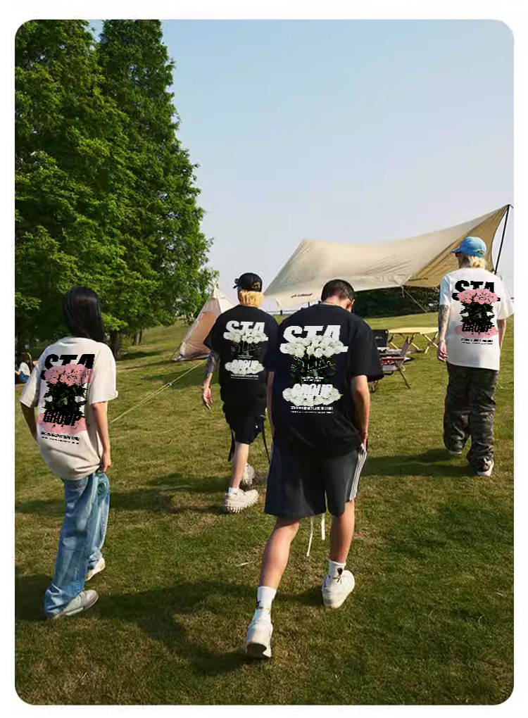 STA官方店24SS夏季新款花朵玫瑰男女生纯棉重磅t恤情侣装短袖上衣