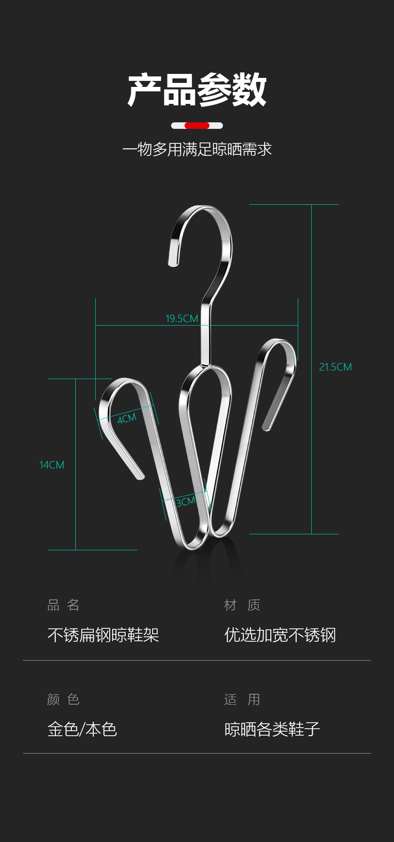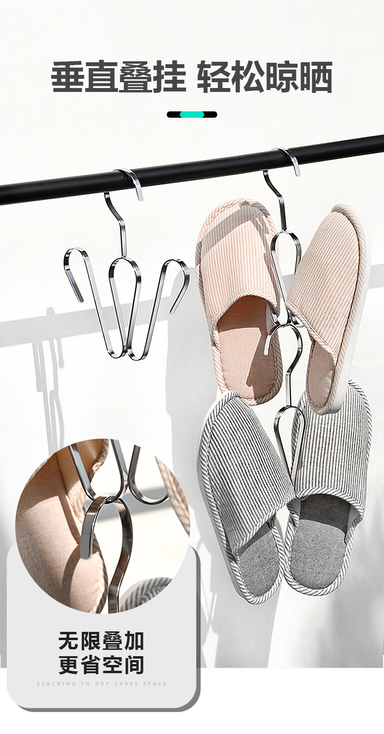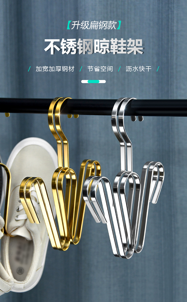 凯旺不锈钢晾鞋架阳台挂鞋衣架多功能晒鞋架加宽挂勾凉鞋双钩鞋架