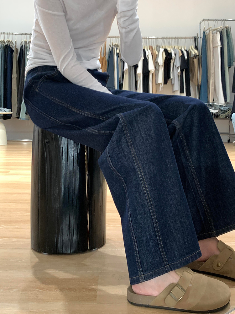 深蓝色直筒牛仔裤女夏季新款胖妹妹mm梨形身材高腰宽松显瘦阔腿裤