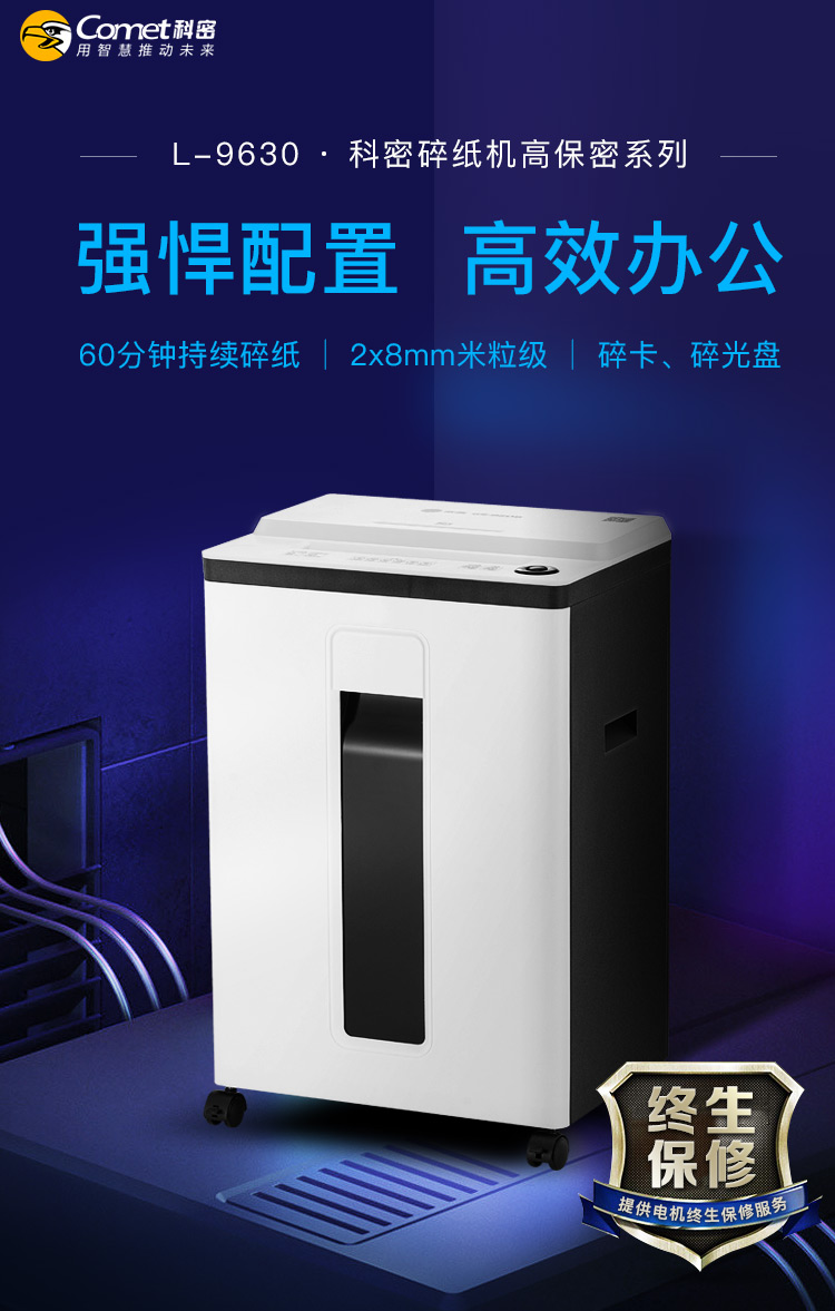 科密(comet)L-9630 5级保密办公专用商用碎纸机财务文件a4纸张粉碎机L-9620/9620D/9640/9650/9660