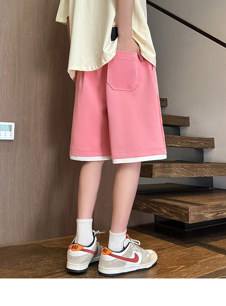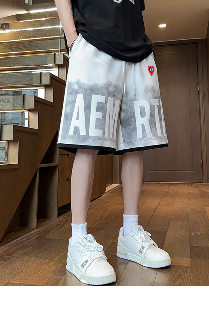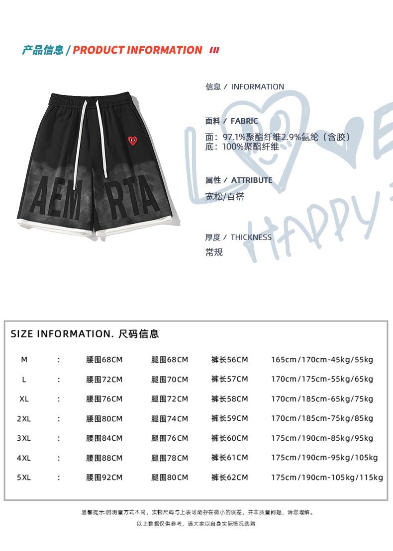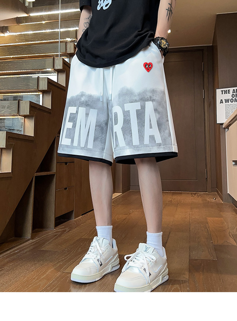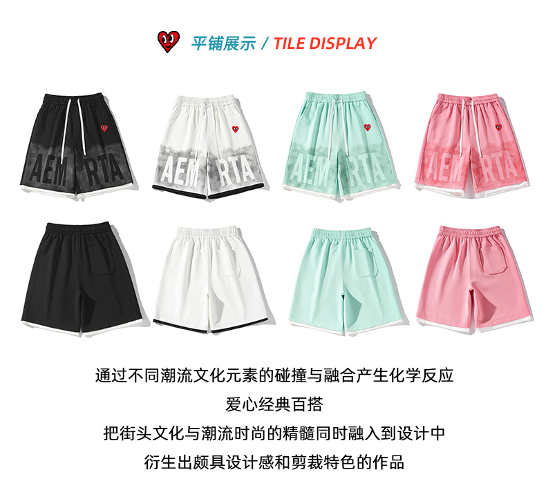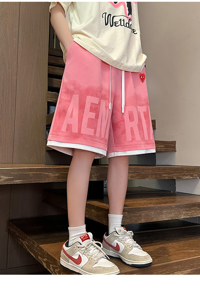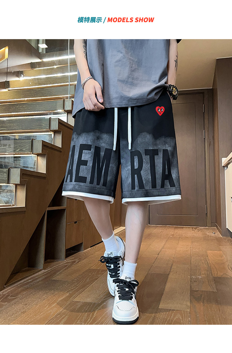 查尔斯桃心 美式菠萝格假两件休闲短裤男夏季宽松高街运动五分裤