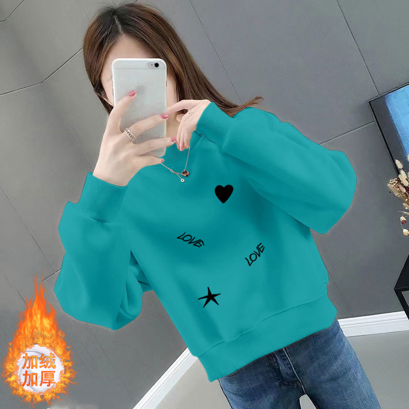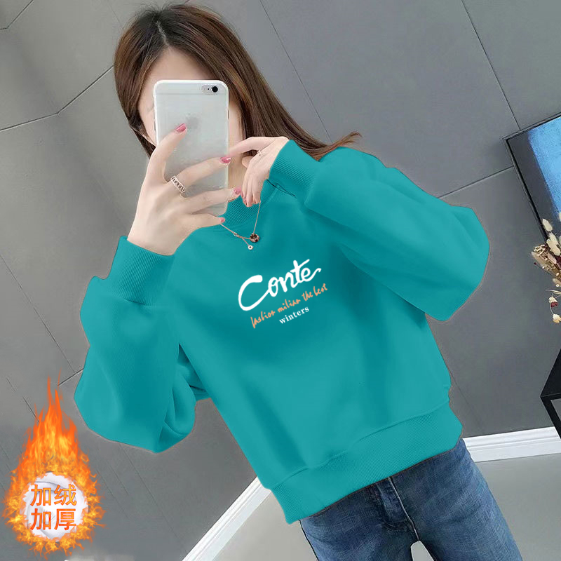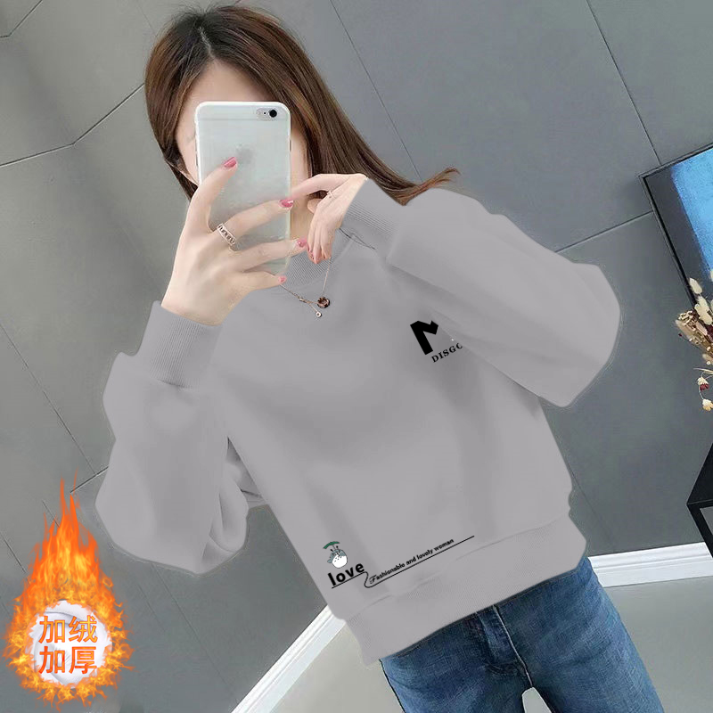 纯棉短款卫衣女加绒加厚秋冬季韩版宽松百搭洋气长袖圆领上衣外套