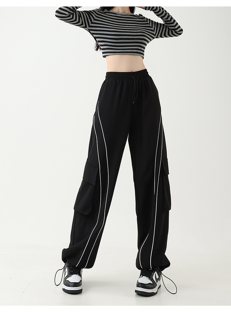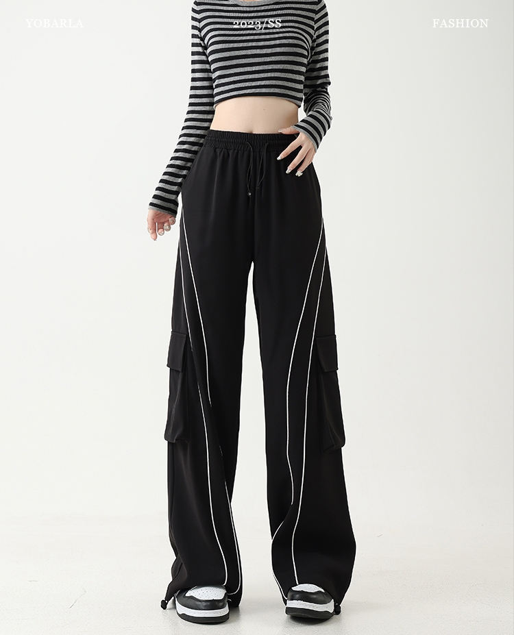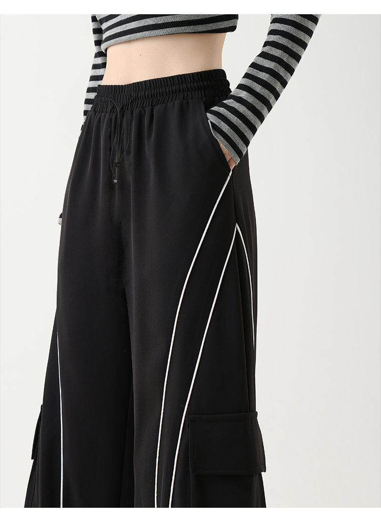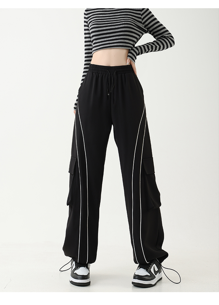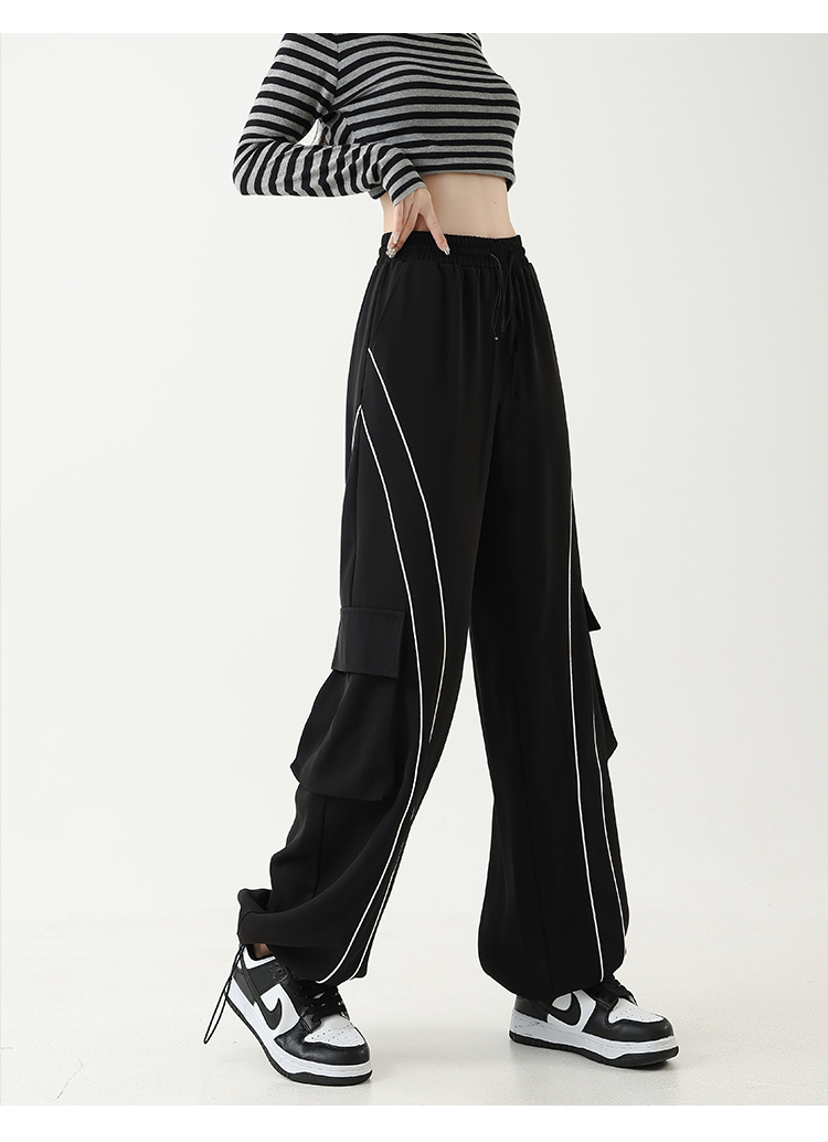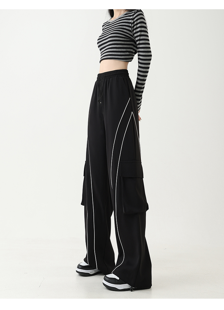 黑色美式休闲工装裤女夏季新款大码胖mm宽松显瘦梨形身材阔腿裤子