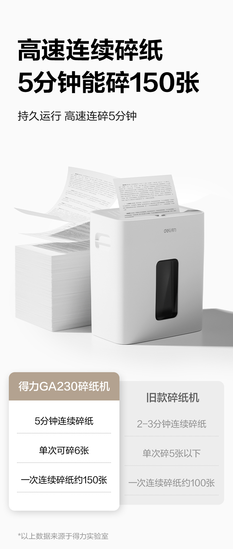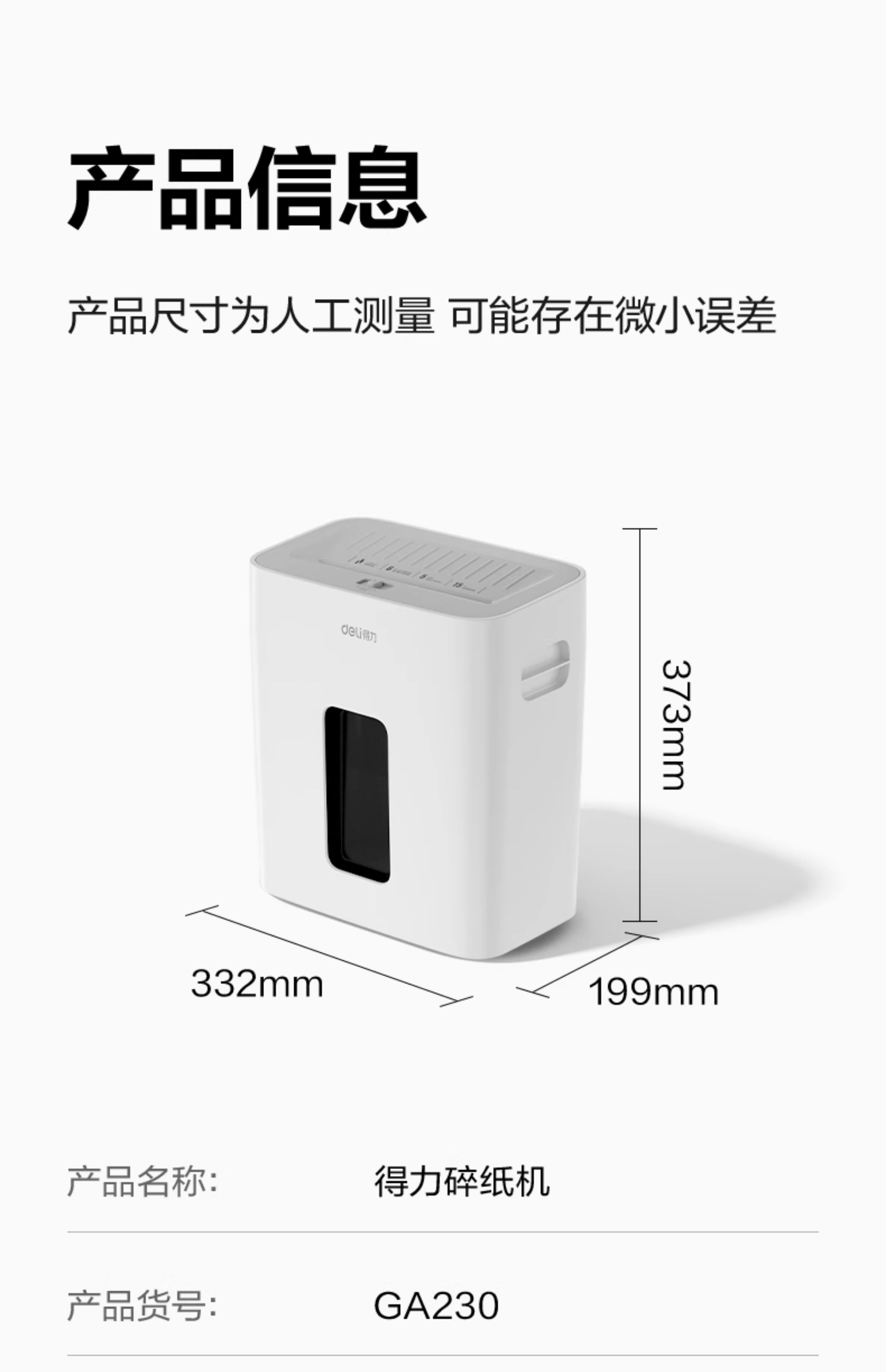 得力碎纸机办公室专用GA230家用小型迷你桌面电动纸张文件粉碎机