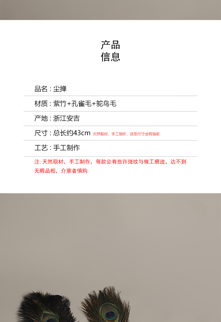 手工竹制除尘掸孔雀毛鸵鸟毛鸡毛掸子除尘扫灰家用不扬尘静电吸尘
