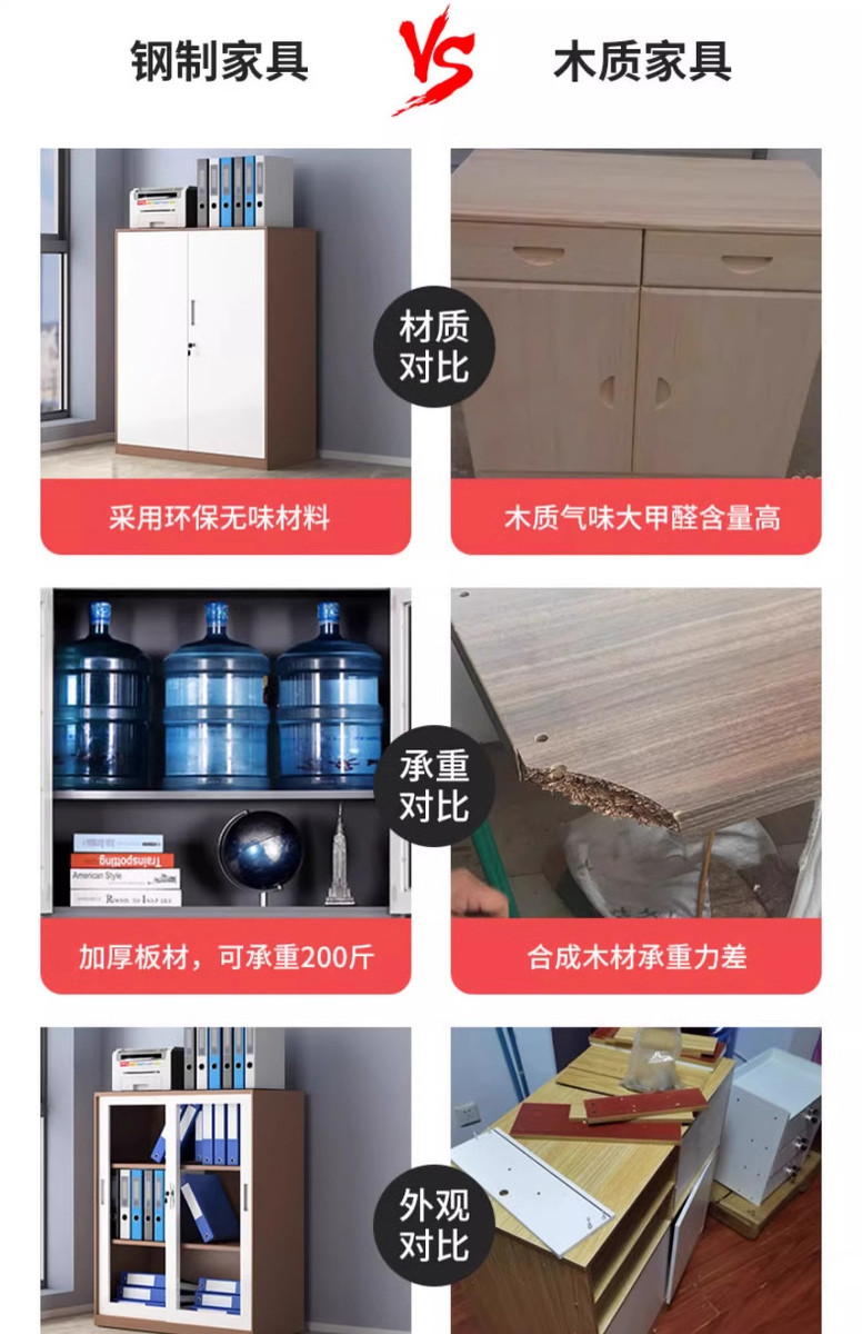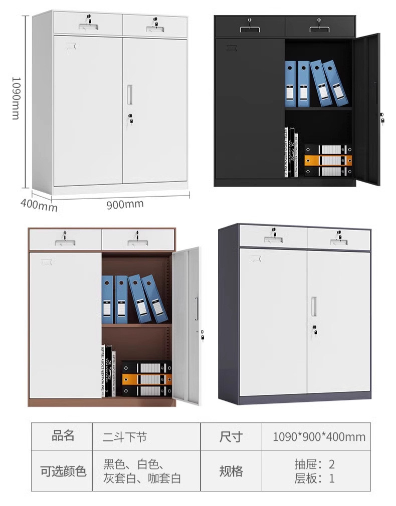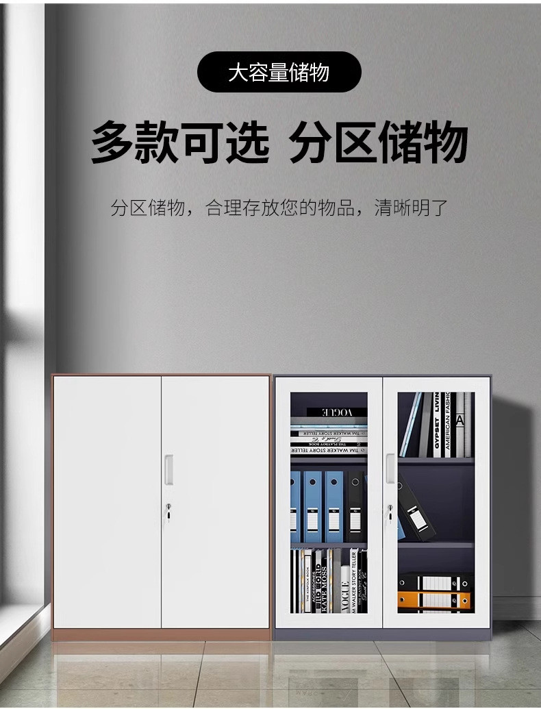 办公室铁皮文件柜带锁矮柜落地档案收纳柜对开资料柜钢制储物柜子