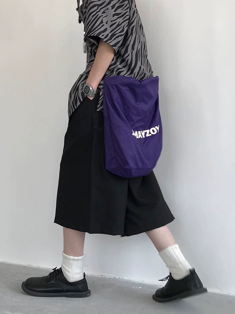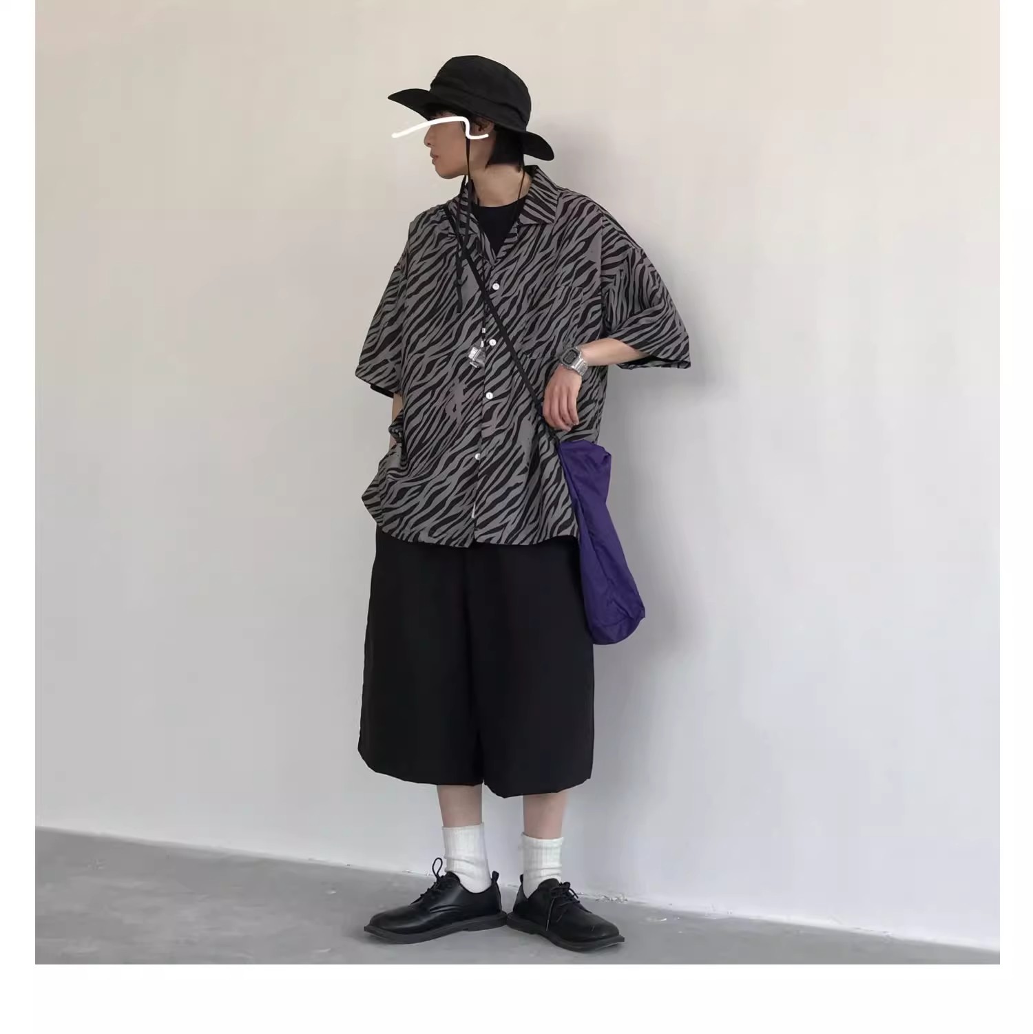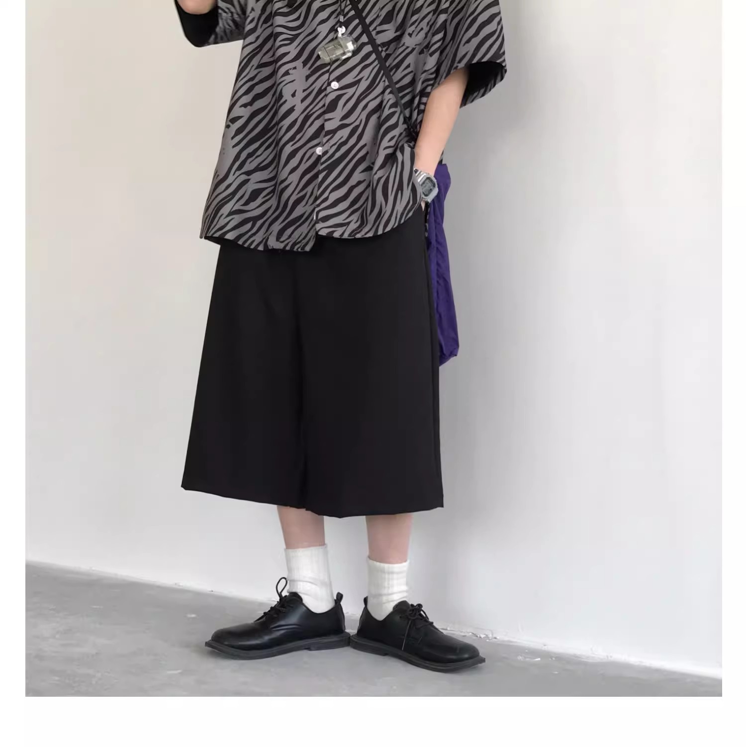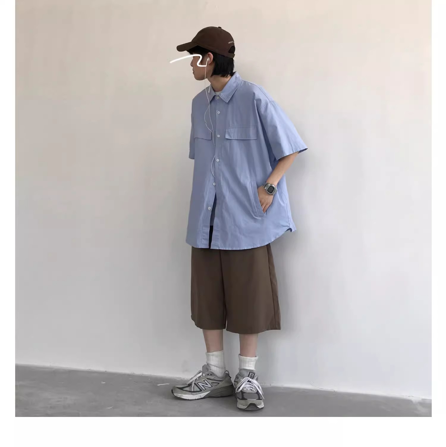 夏季日系港风咖色工装中裤男女宽松阔腿裤原宿风短裤休闲百搭西裤