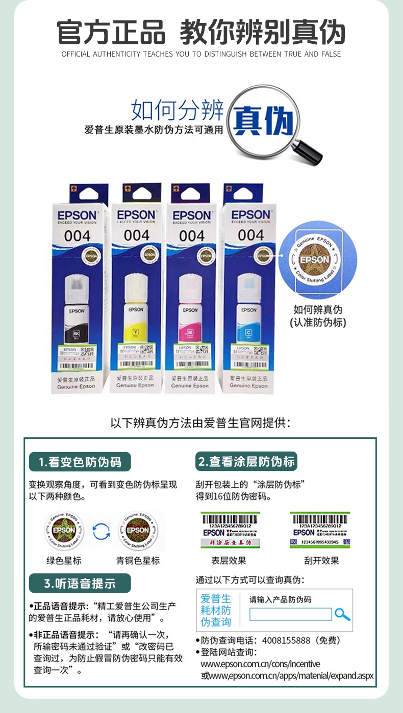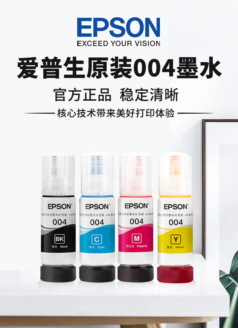 EPSON爱普生原装墨水004 L3151 L3153 L3156 L3158 L3251 L3253 L3255 L3256 L3258喷墨彩色爱普生打印机墨水