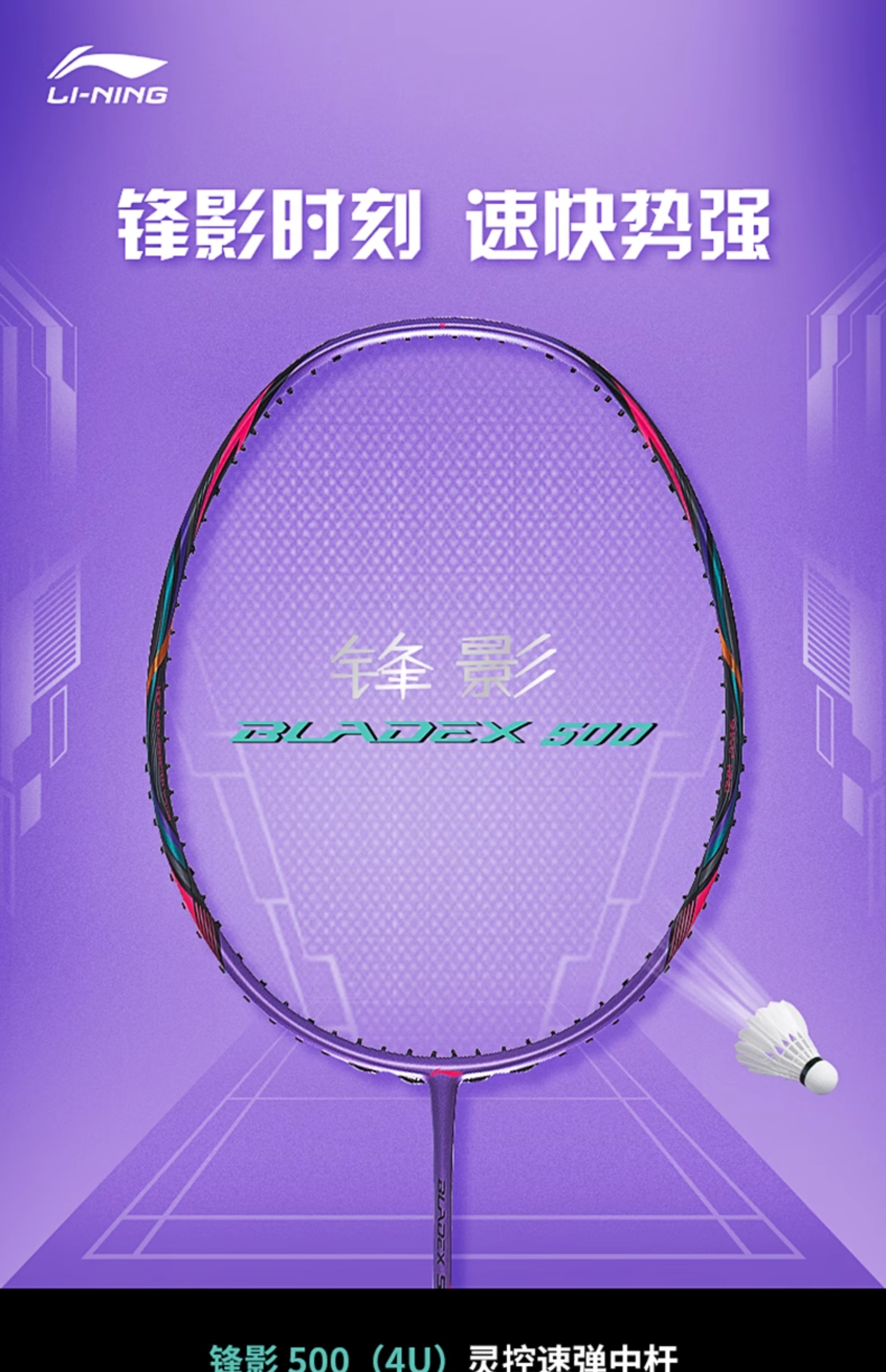 李宁羽毛球拍 锋影500 200 超轻易学球拍 4U 速度型 男女双打拍子