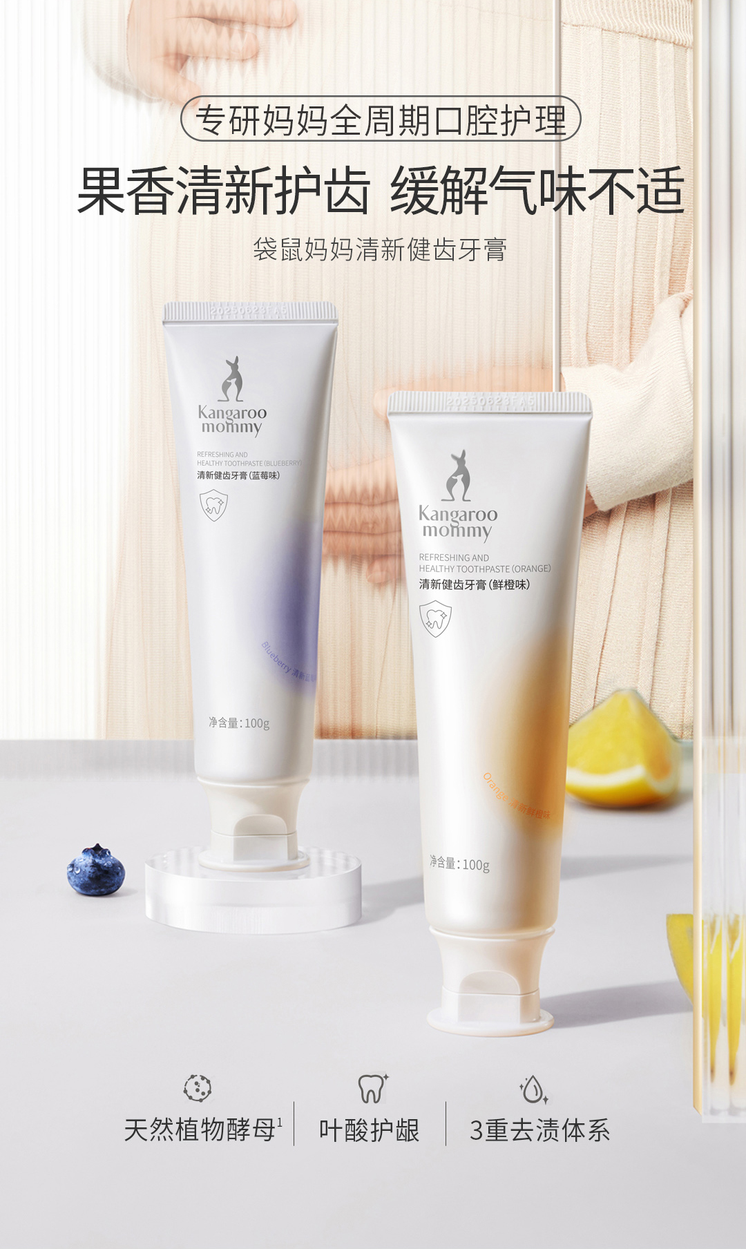 袋鼠妈妈准孕妇牙膏专用清新口气家庭无氟口腔护理套装官方旗舰店