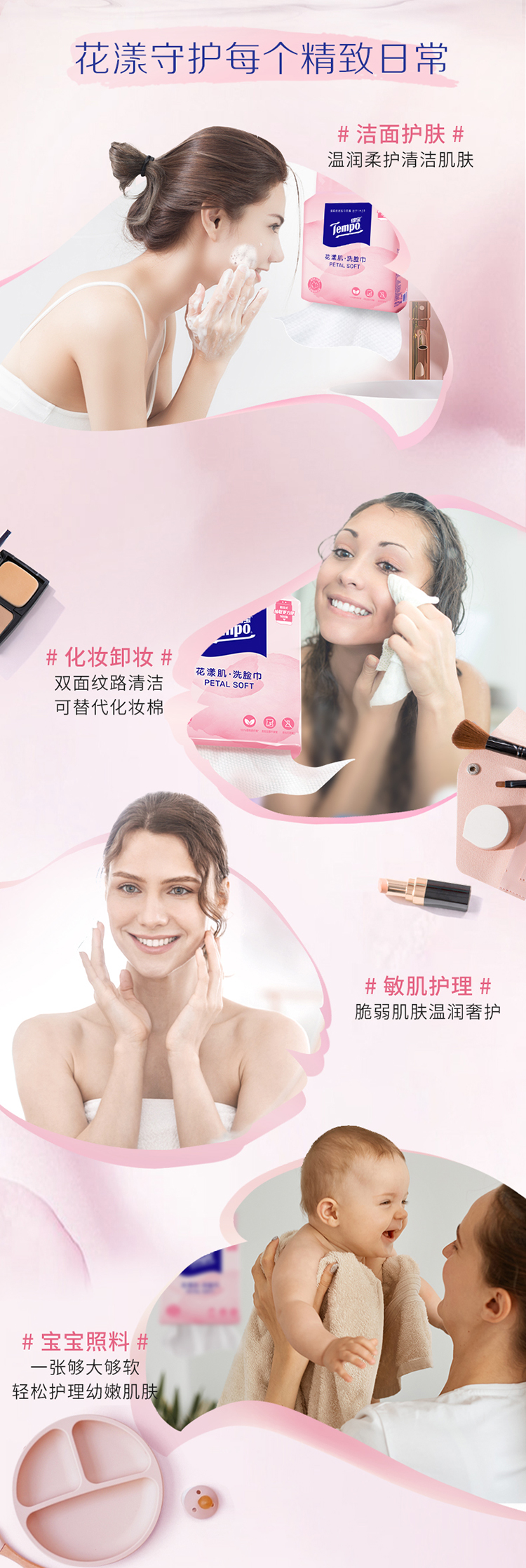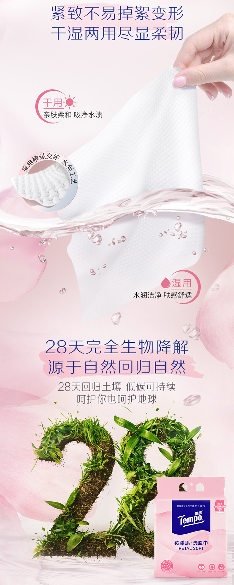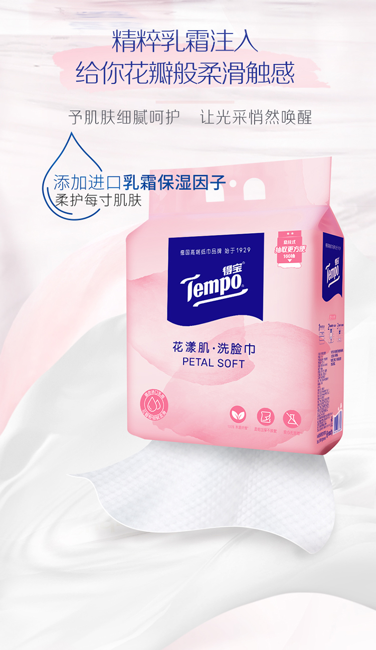 Tempo/得宝洗脸巾蓬松加厚花漾肌悬挂式160抽*1包
