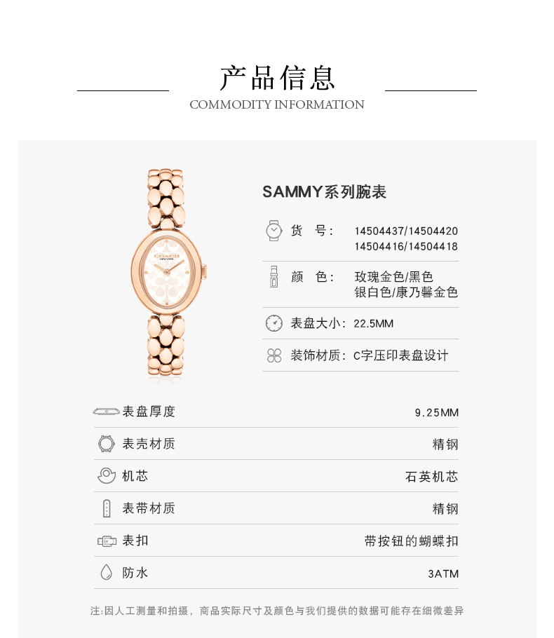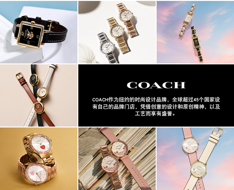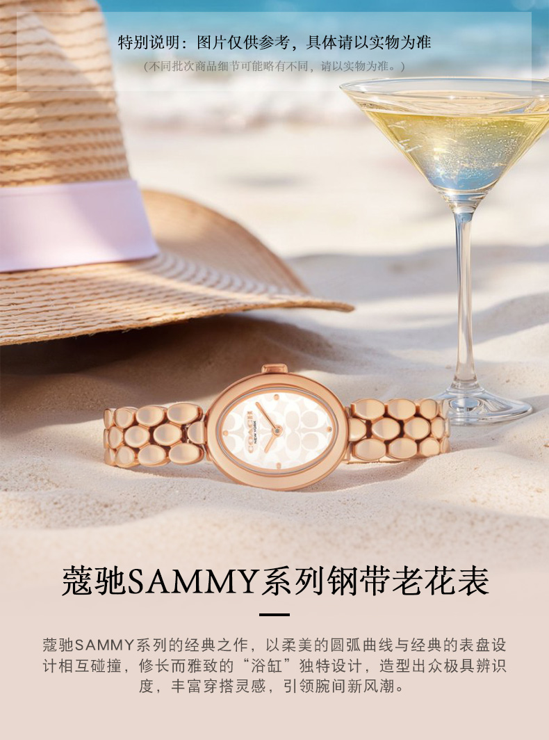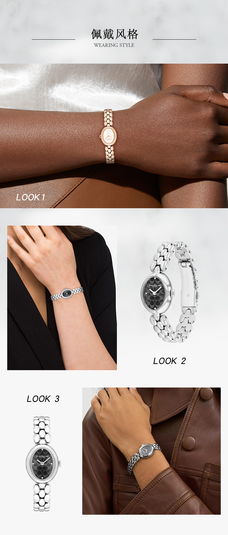 COACH/蔻驰SAMMY系列钢带老花压印表盘椭圆表女表小浴缸手表