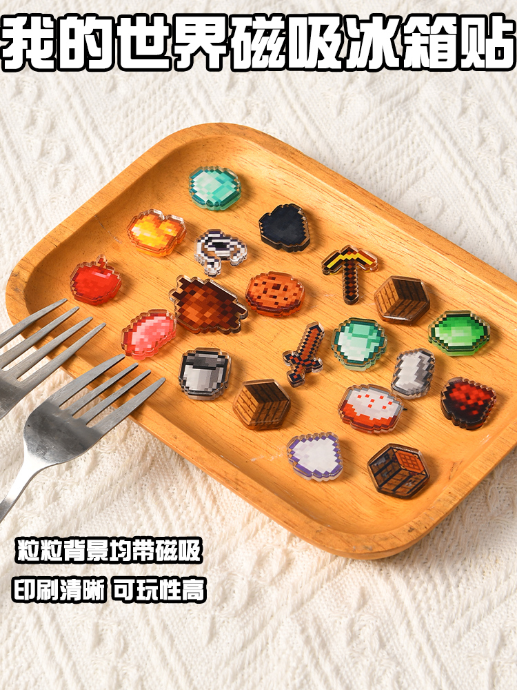 我的世界冰箱贴周边迷你工作台磁吸箱子可动装饰亚克力片片背包