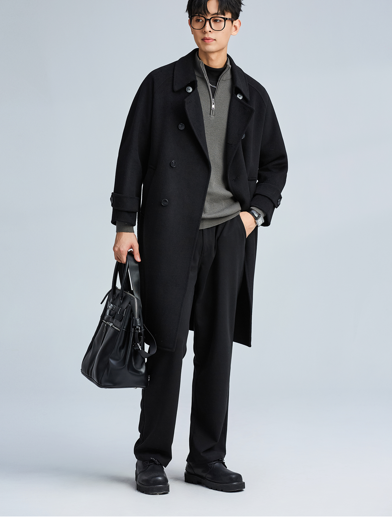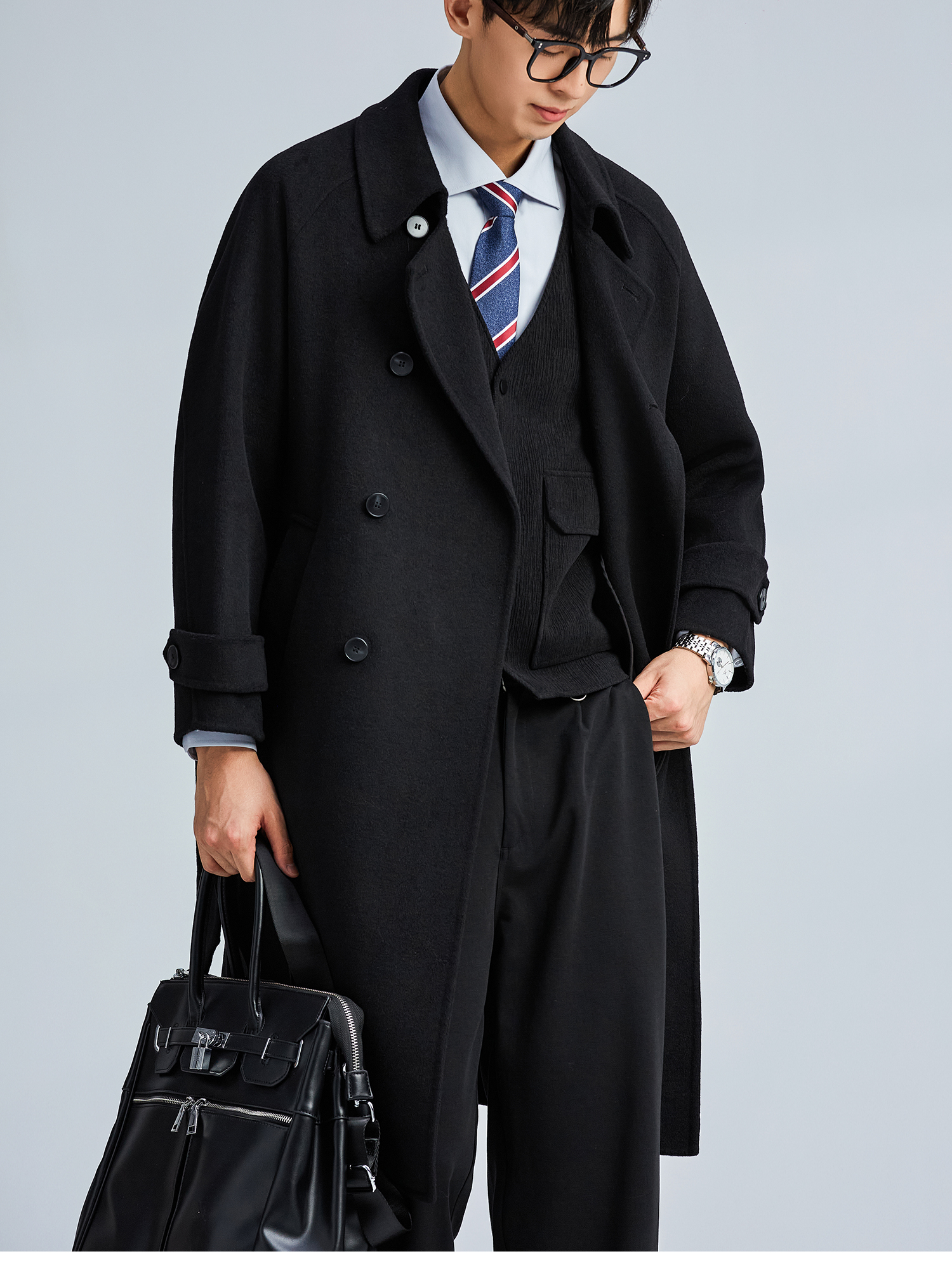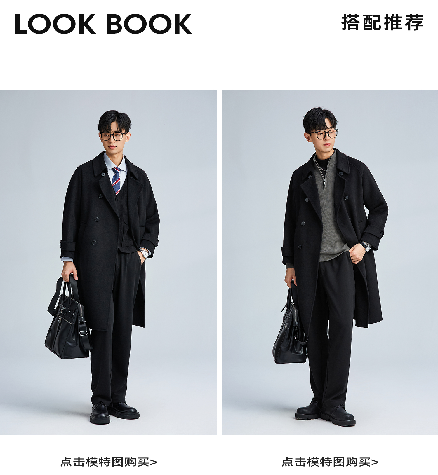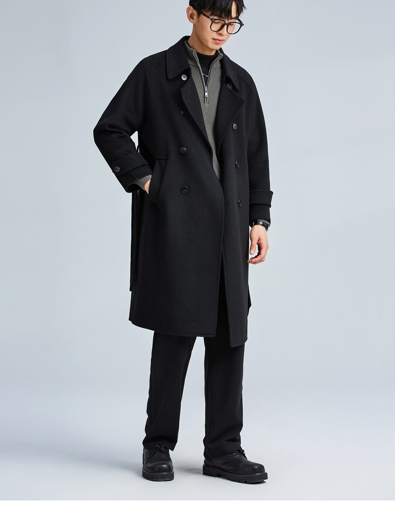 海上公路旗舰店70羊毛海军大衣男士秋冬双排扣风衣领双面毛呢外套