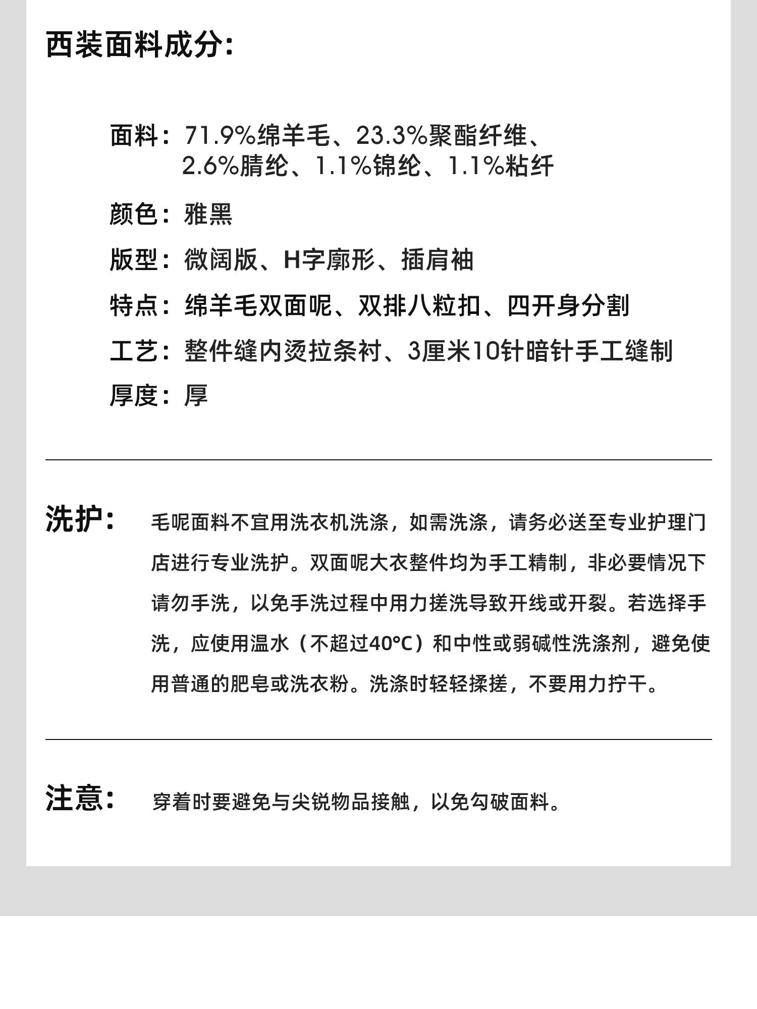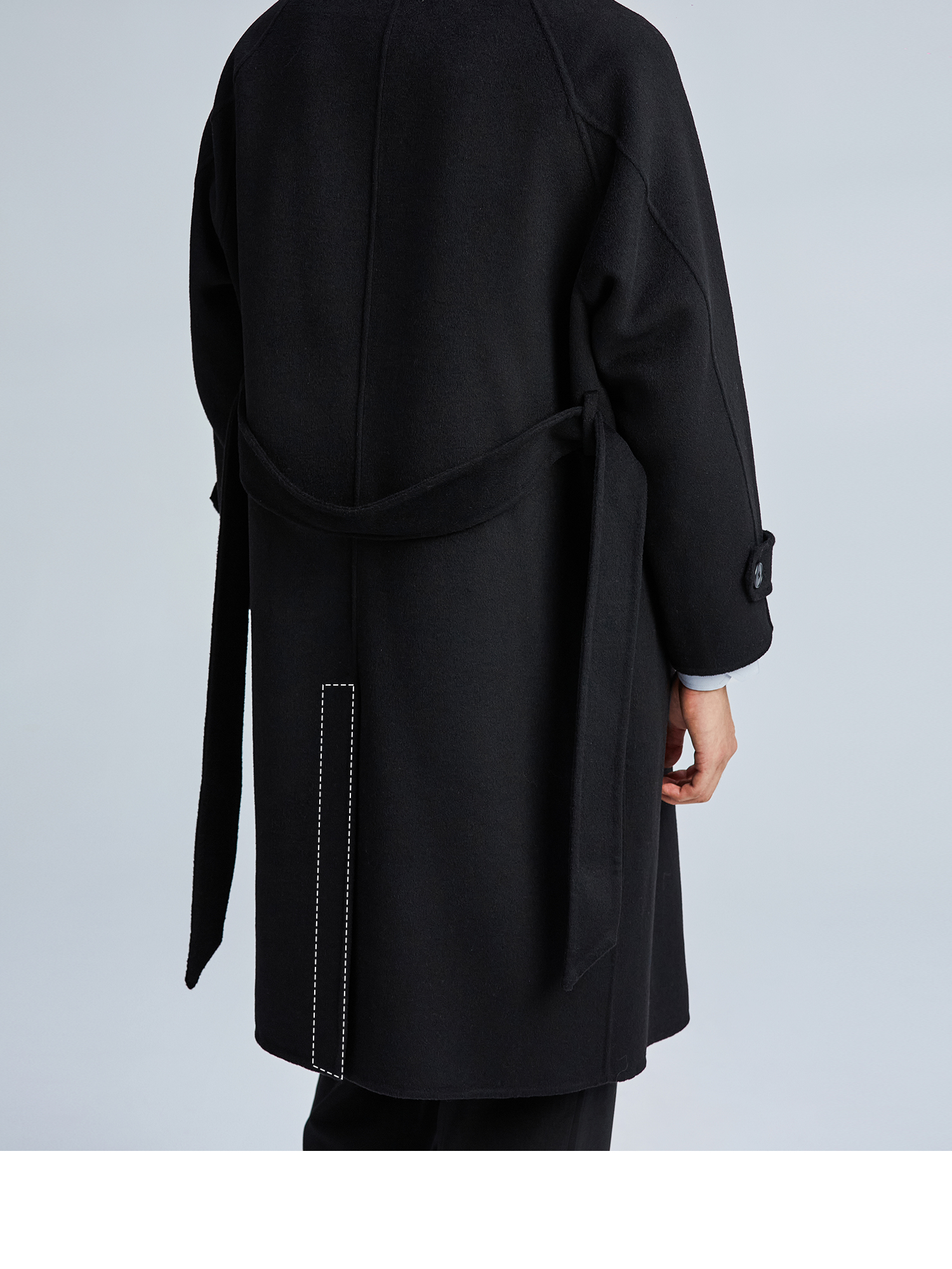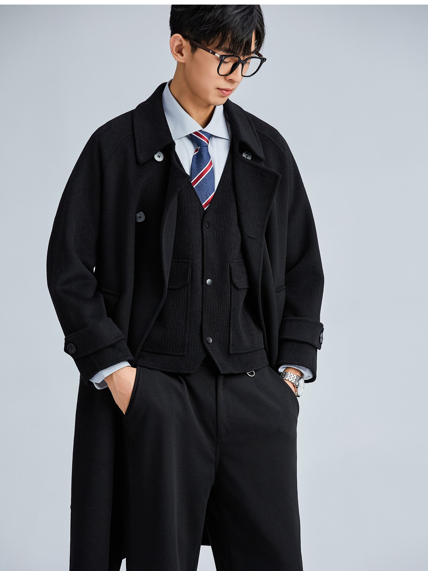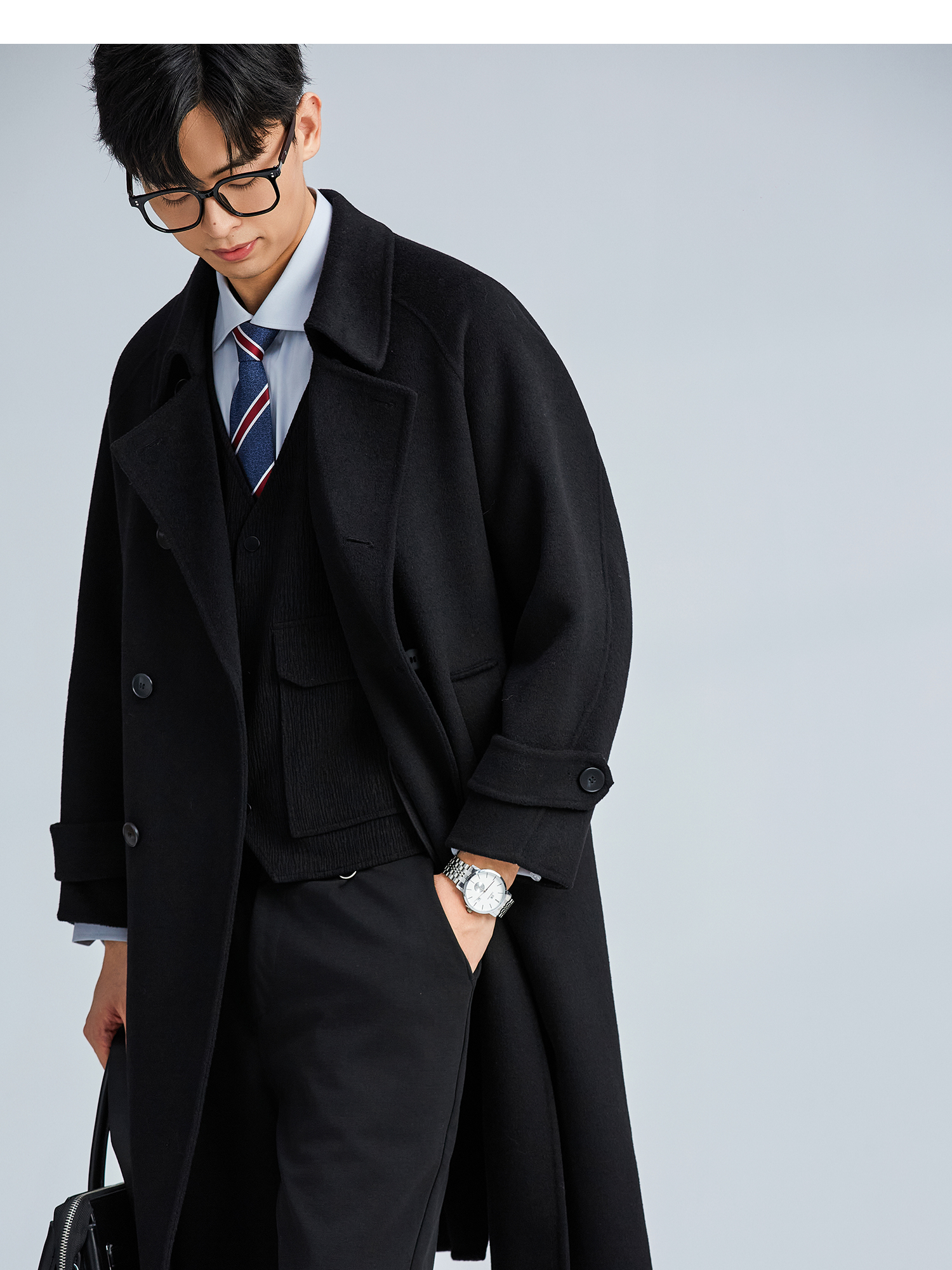 海上公路旗舰店70羊毛海军大衣男士秋冬双排扣风衣领双面毛呢外套