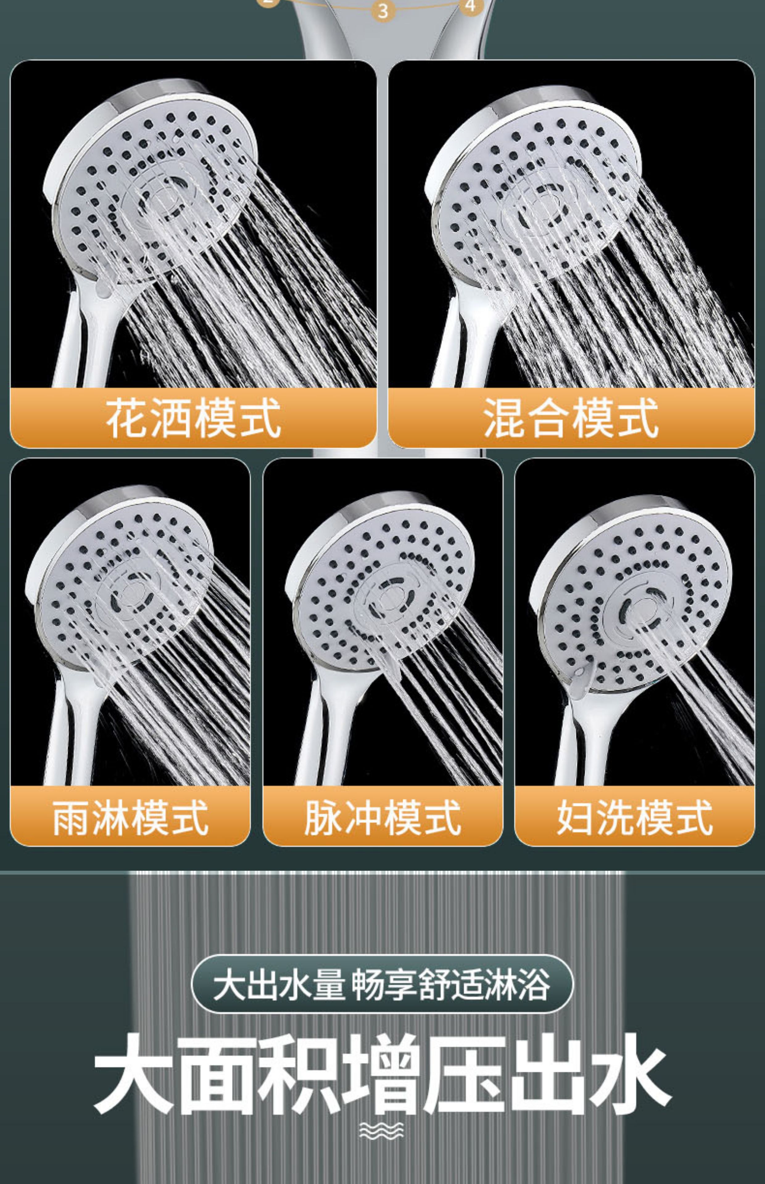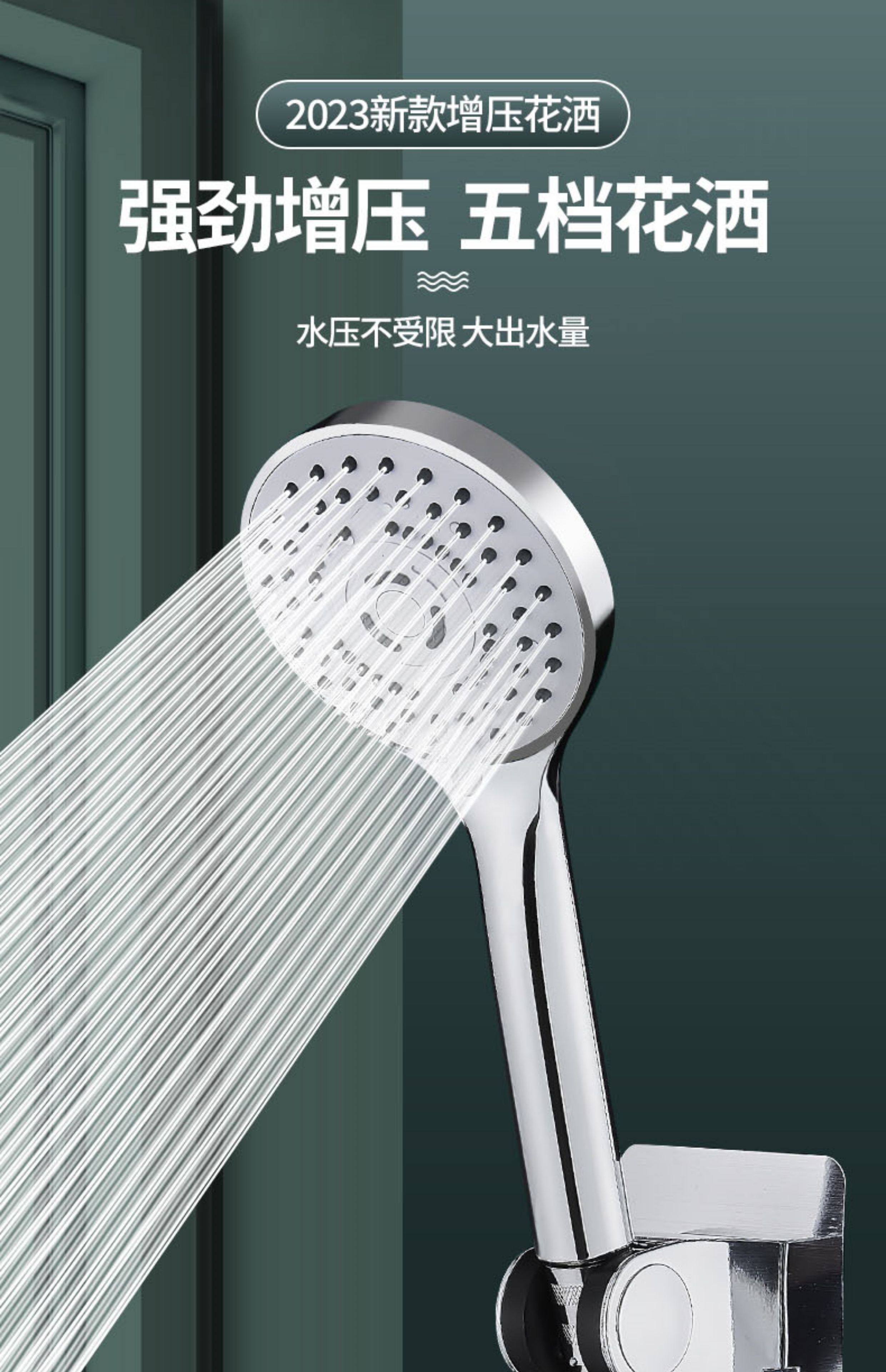 五档增压淋雨淋浴花洒喷头套装家用加压洗澡沐浴热水器软管莲蓬头
