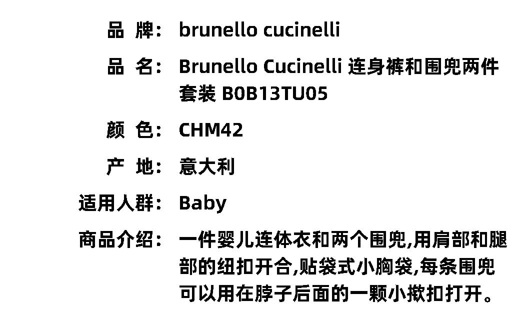 香港直邮Brunello Cucinelli 连身裤和围兜两件套装 B0B13TU05