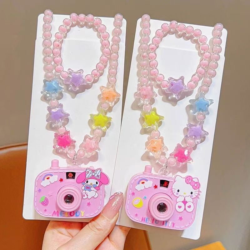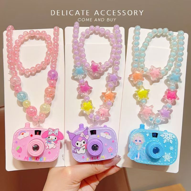 儿童投影相机项链公主首饰新款小女孩库洛米饰品玩具串珠手链套装
