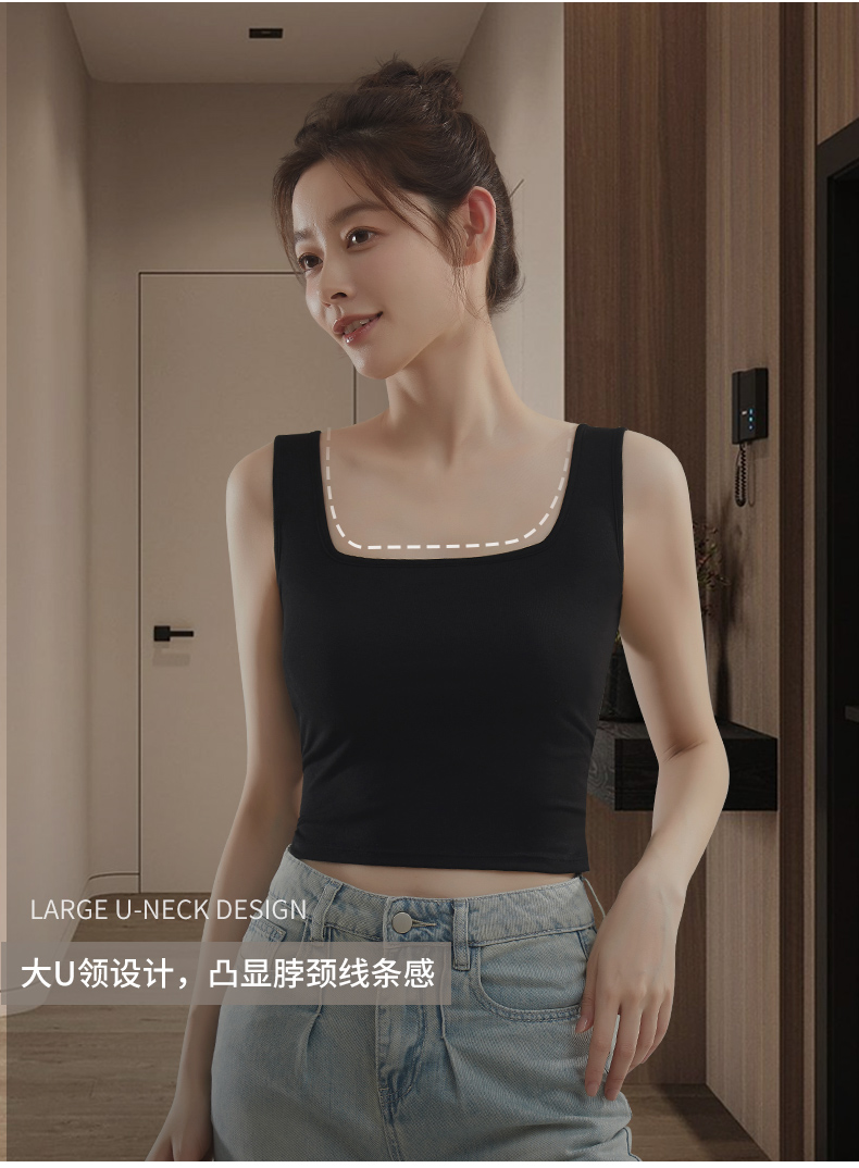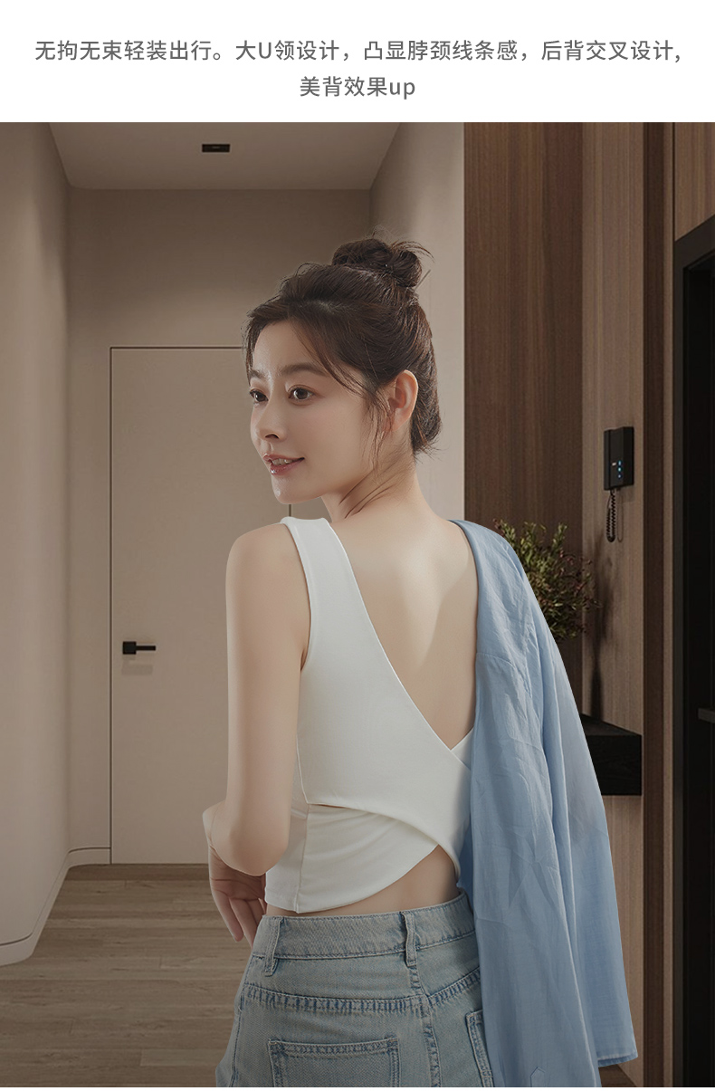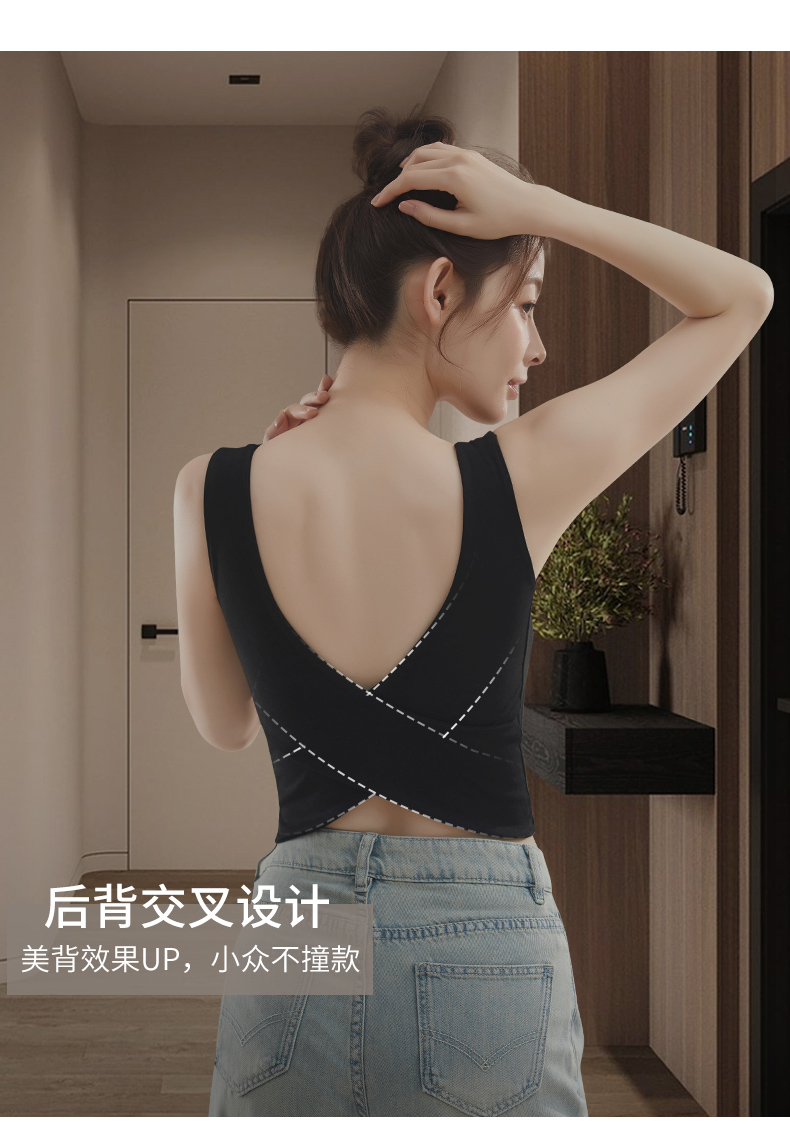 吊带背心女夏季带胸垫外穿内搭修身露背性感交叉美背文胸一体上衣