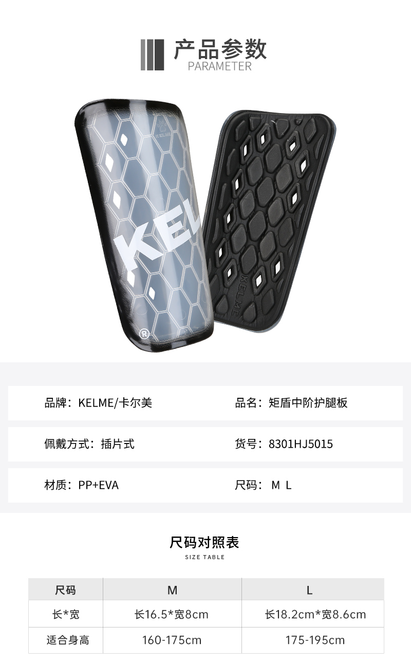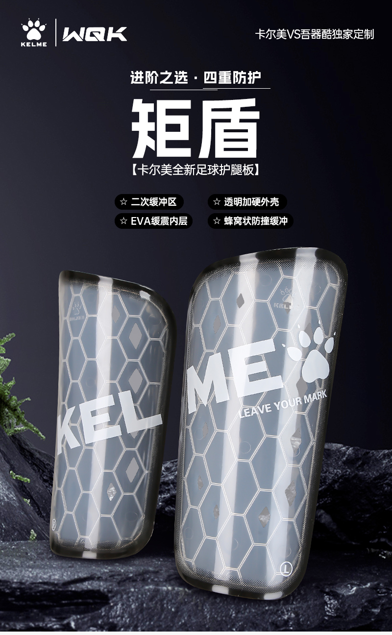 卡尔美护腿板成人比赛训练专用防护插板护胫板专业足球装备护具
