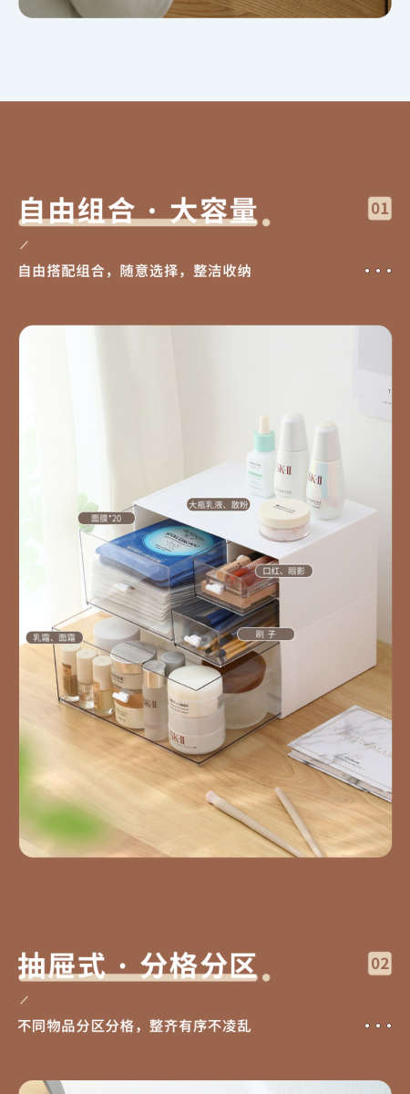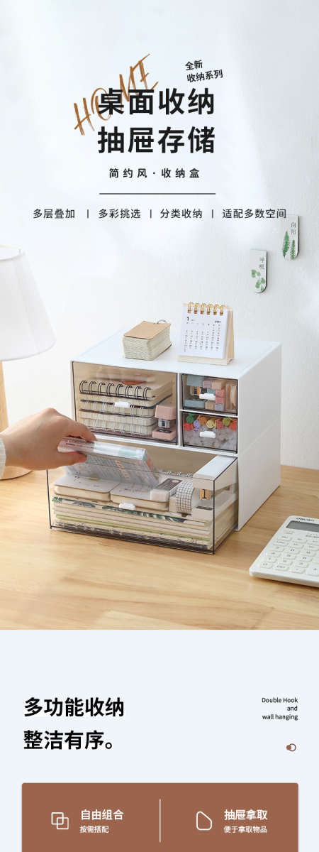 桌面抽屉化妆品收纳盒办公室整理盒宿舍书桌文具储物盒杂物置物架