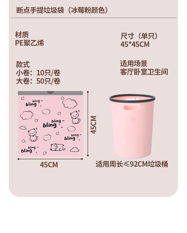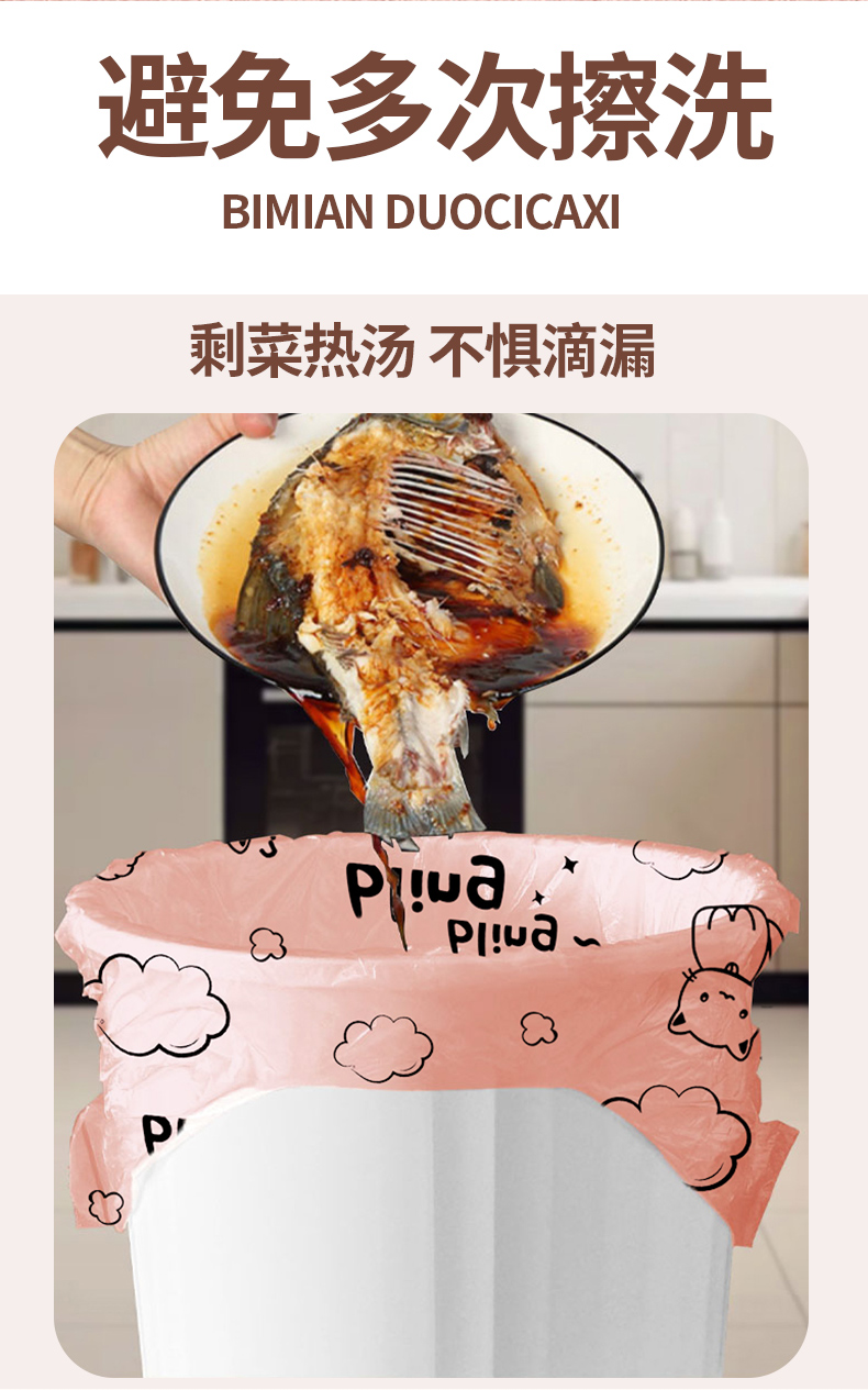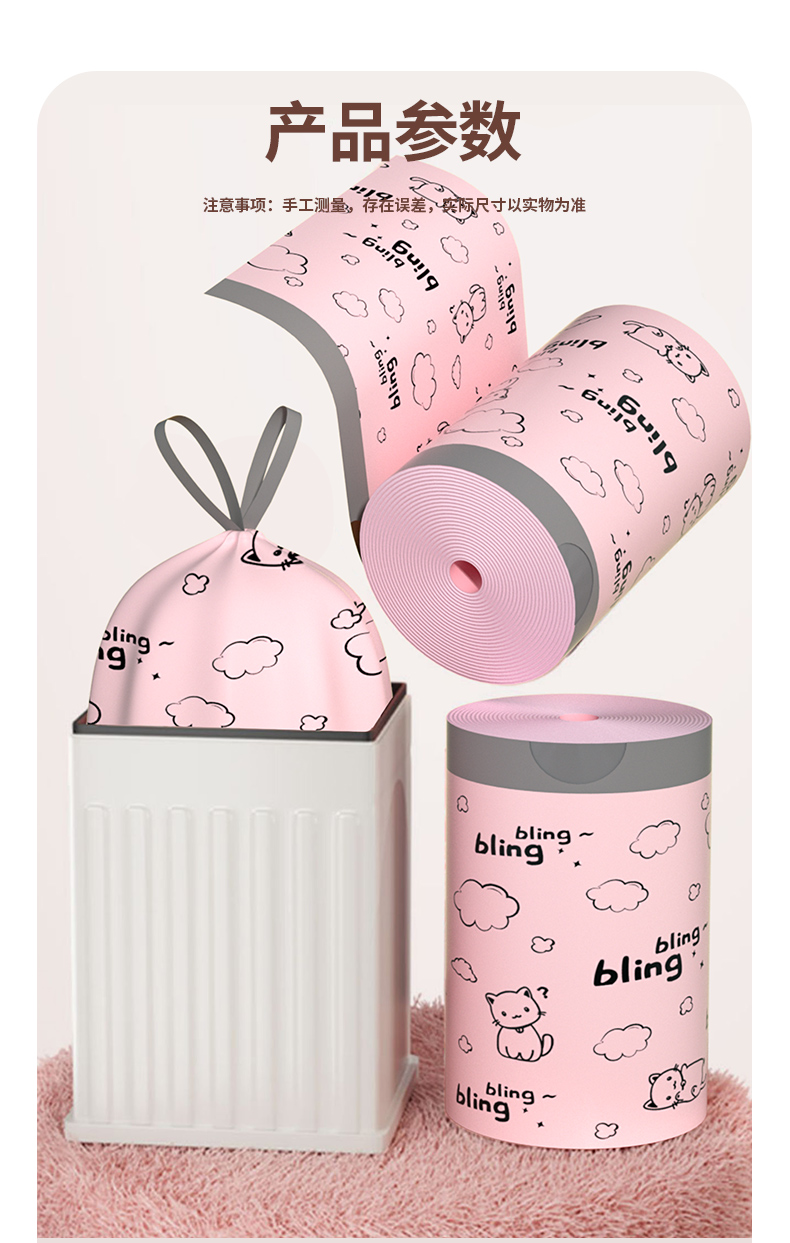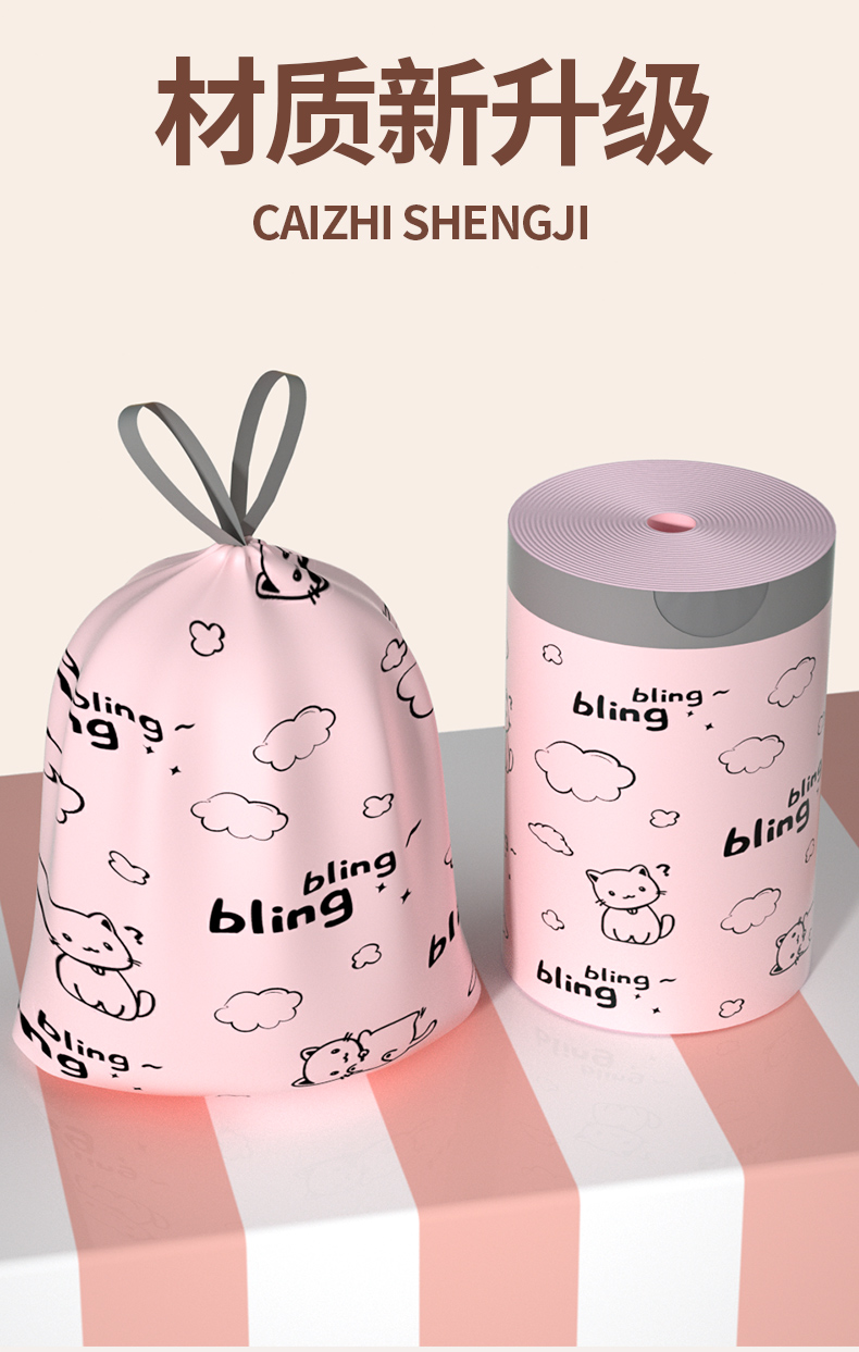 印花免撕抽绳垃圾袋家用加厚手提实惠装厨房塑料袋