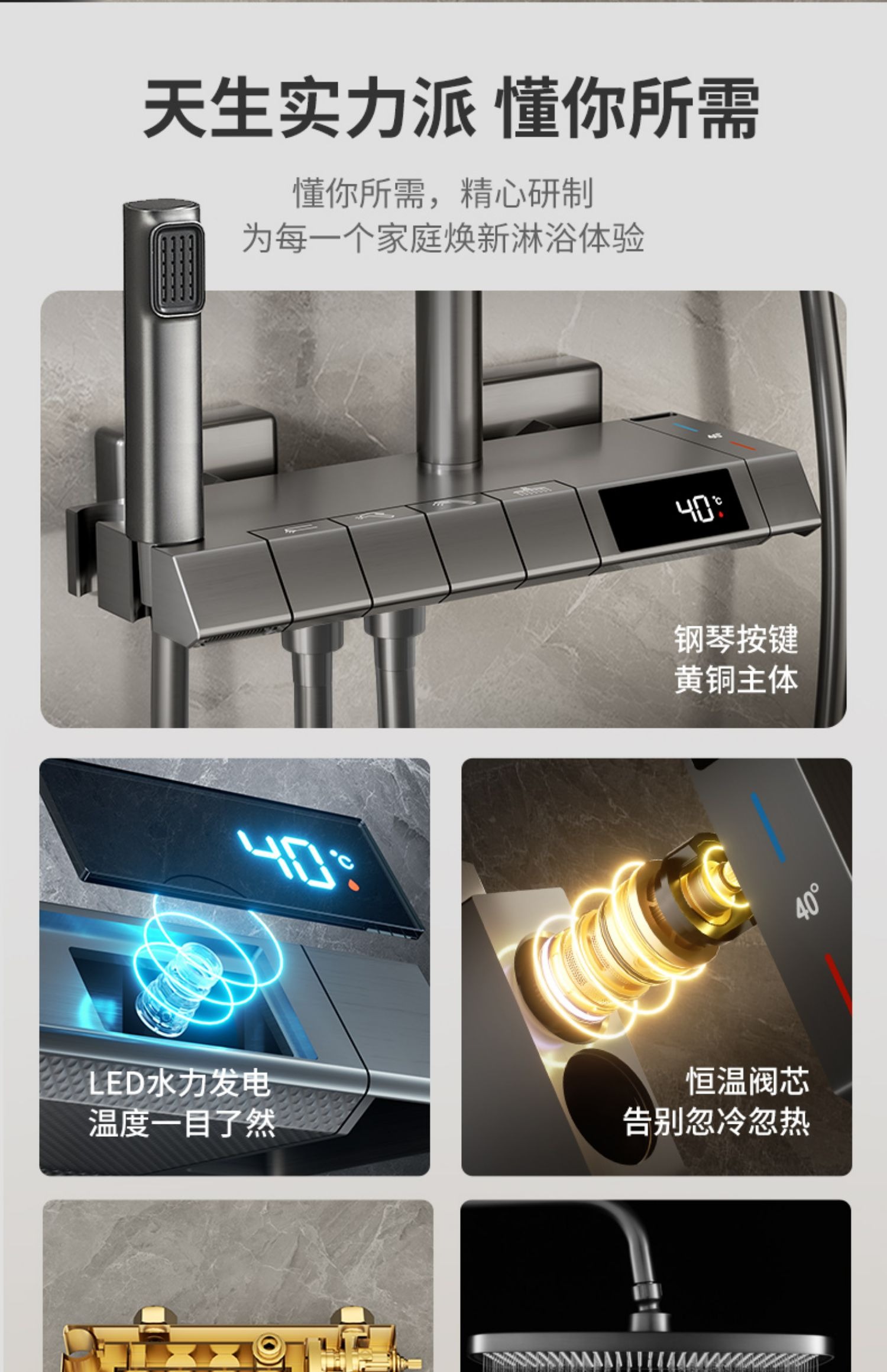 新款淋浴花洒套装家用浴室卫生间枪灰淋浴器数显恒温淋雨花洒喷头