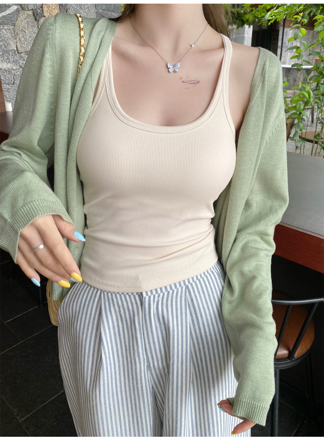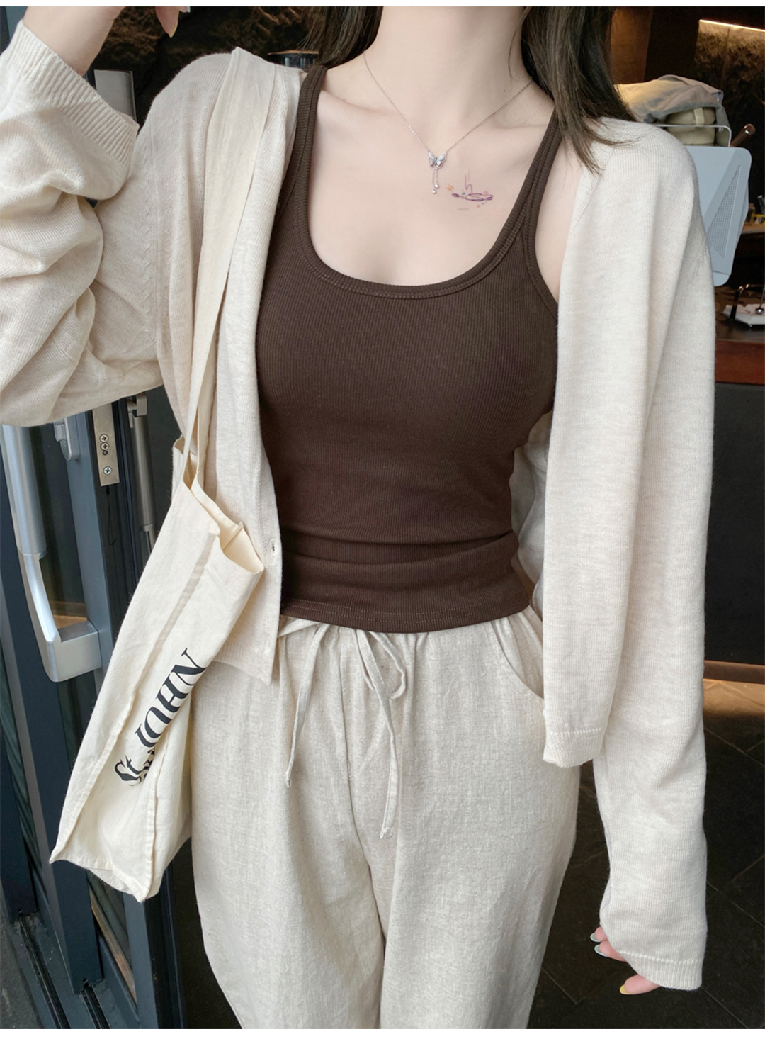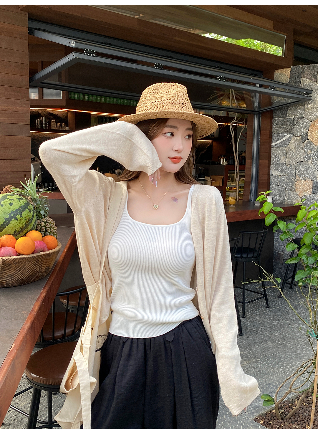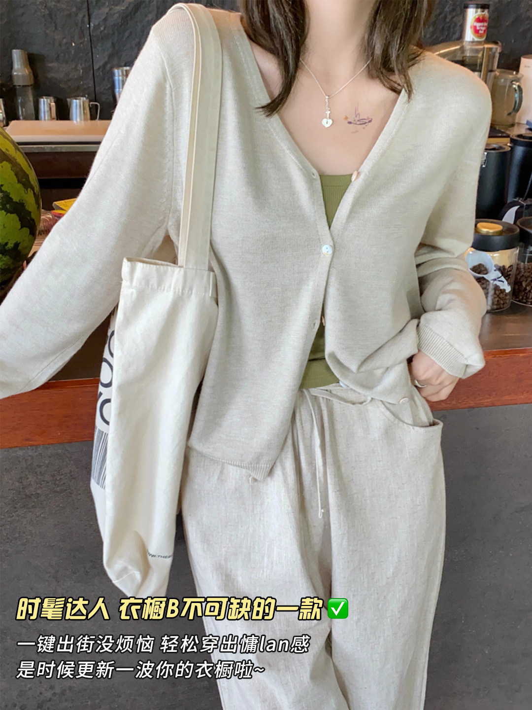 杏色薄款针织开衫配吊带裙女春夏季外搭2025新款外套防晒罩衫上衣