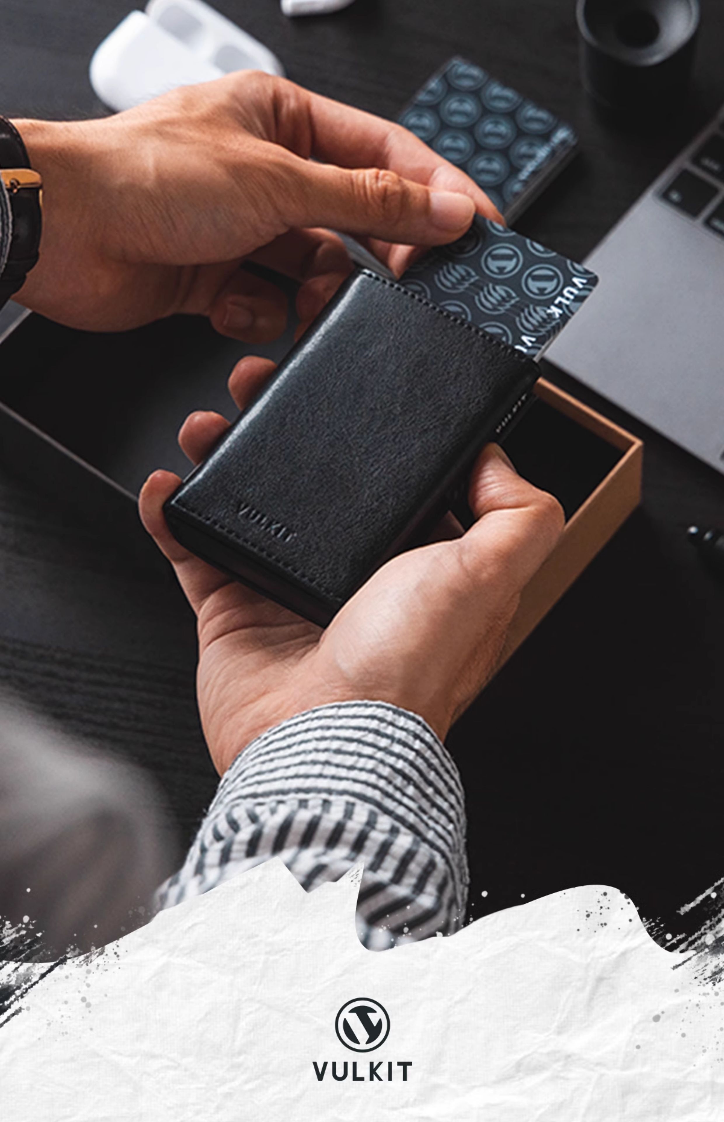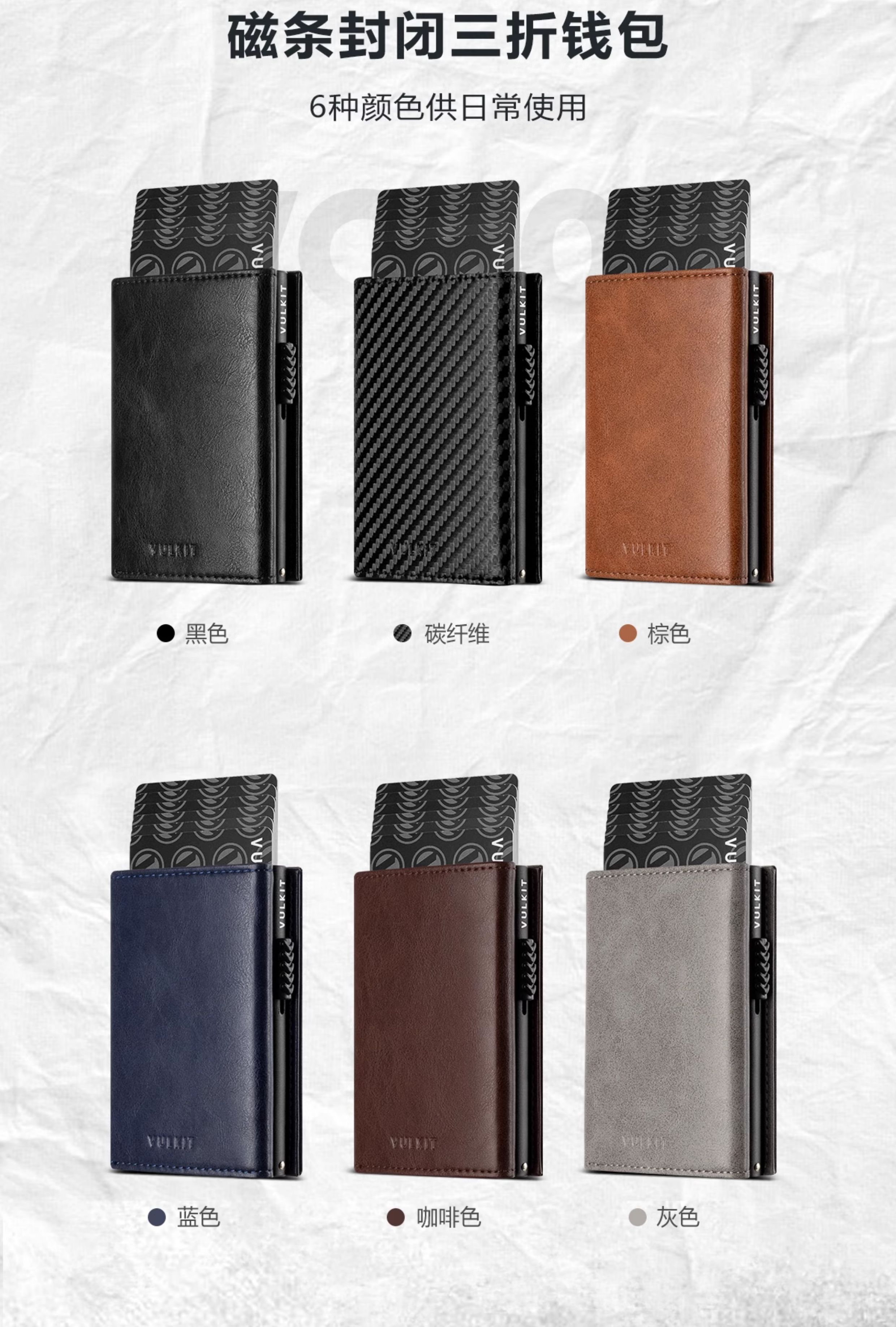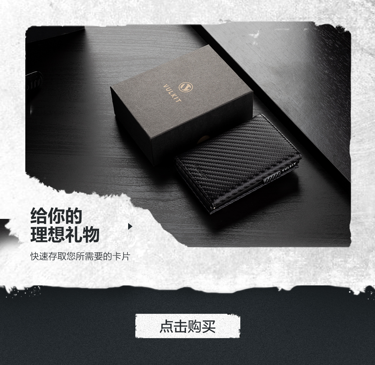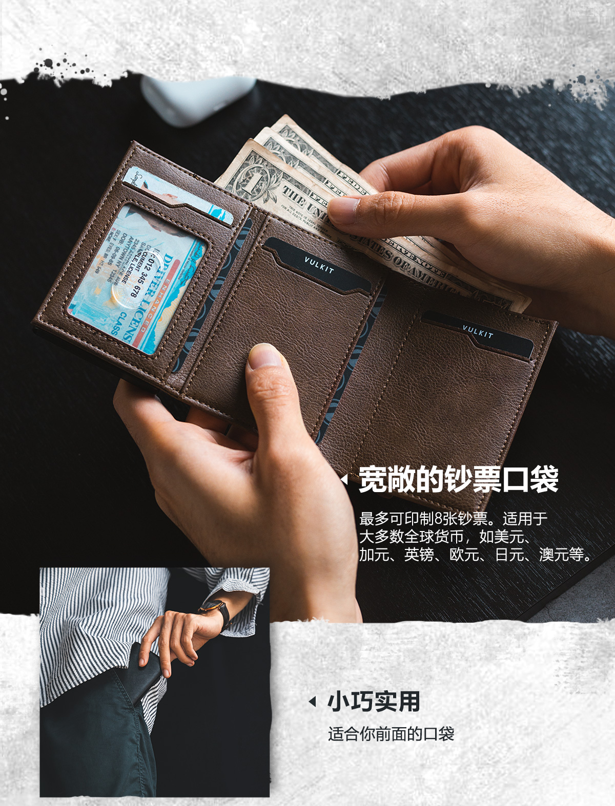 Vulkit复古高级男生钱包弹出式卡包RFID防盗刷多卡位证件收纳卡套