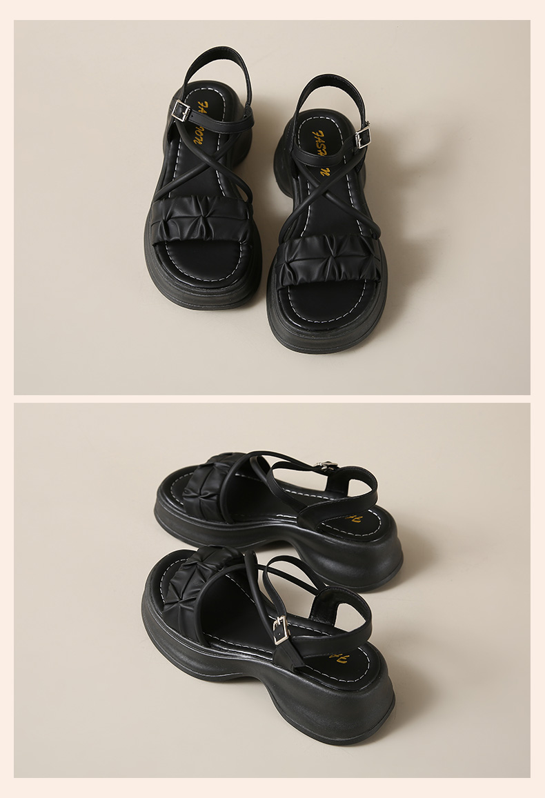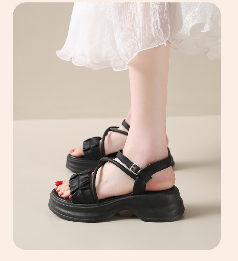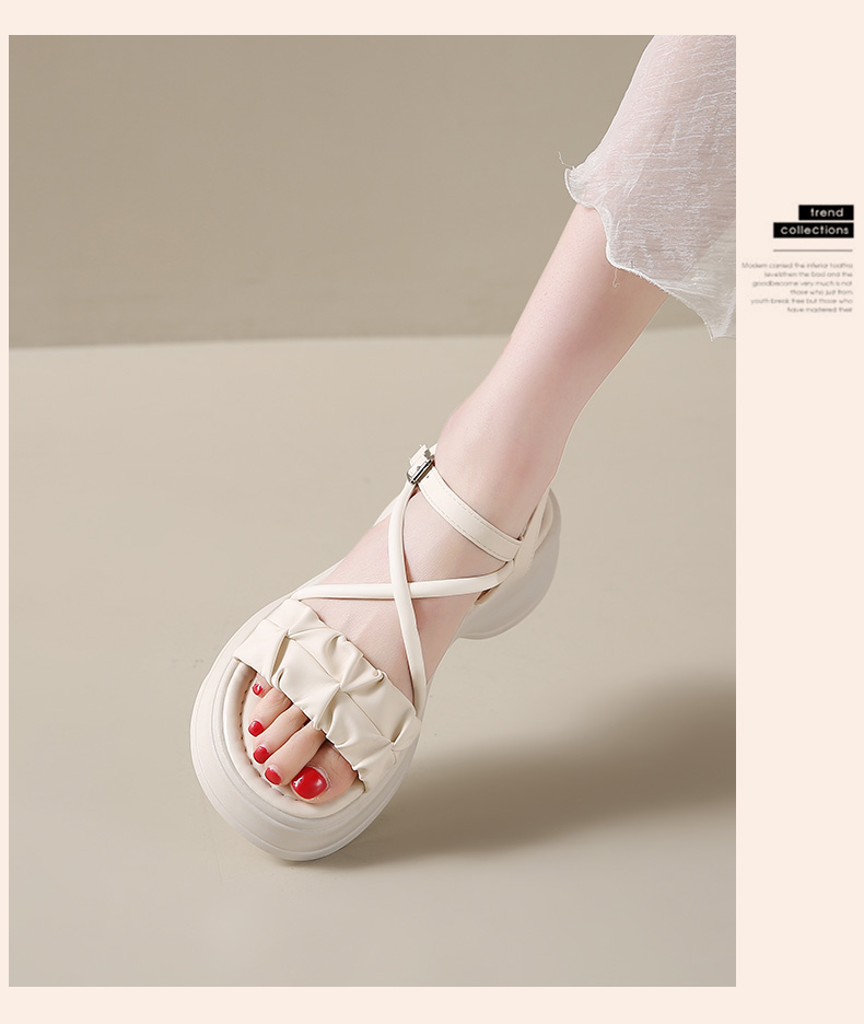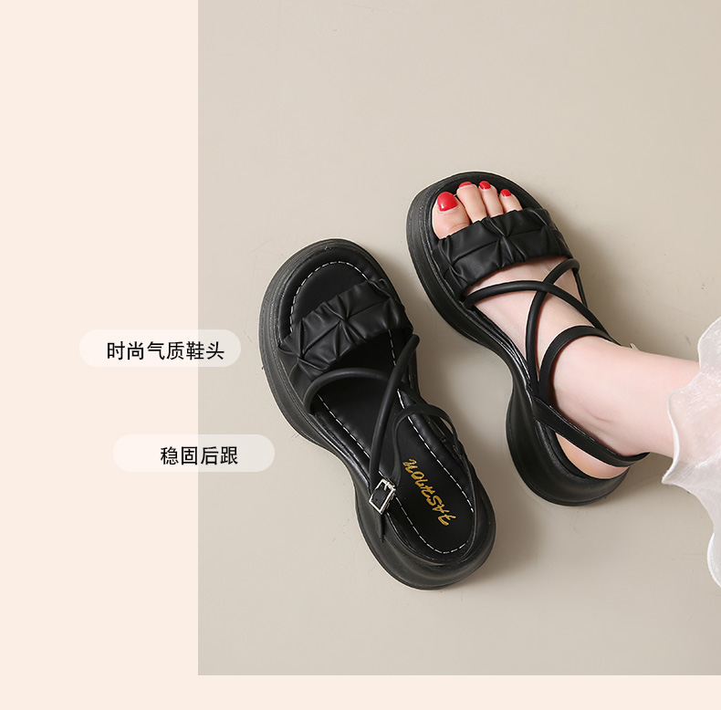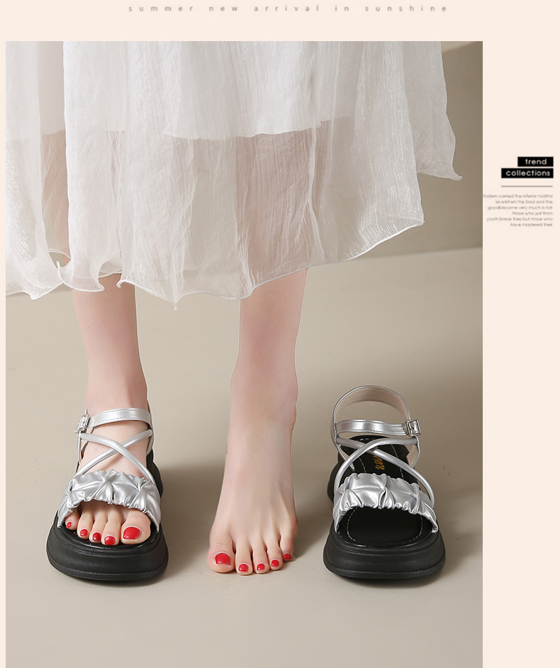 罗马配裙子凉鞋女2025夏季新款休闲百搭厚底凉靴超火踩屎感沙滩鞋