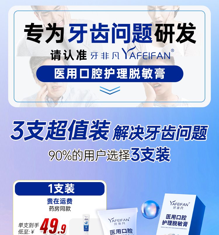 牙非凡医用口腔护理脱敏膏疗牙治齿过敏牙龈萎缩牙周炎出血牙膏xu
