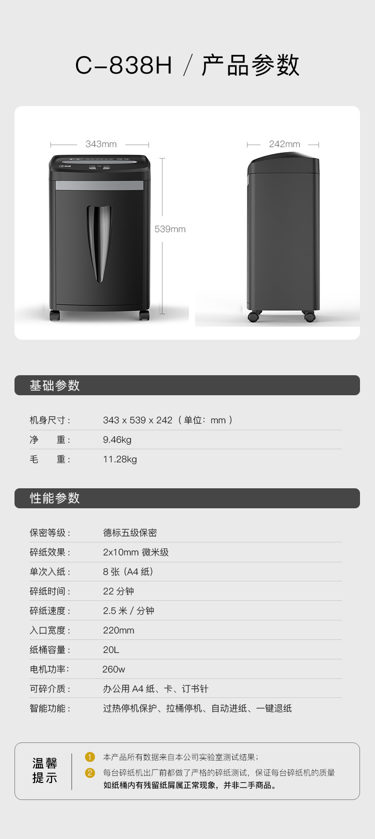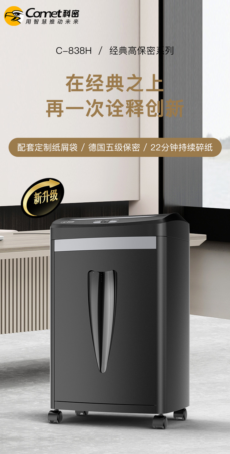 科密碎纸机838H 办公家用电动商用碎纸颗粒状碎书钉碎卡碎光盘小型保密办公室专用文件粉碎机
