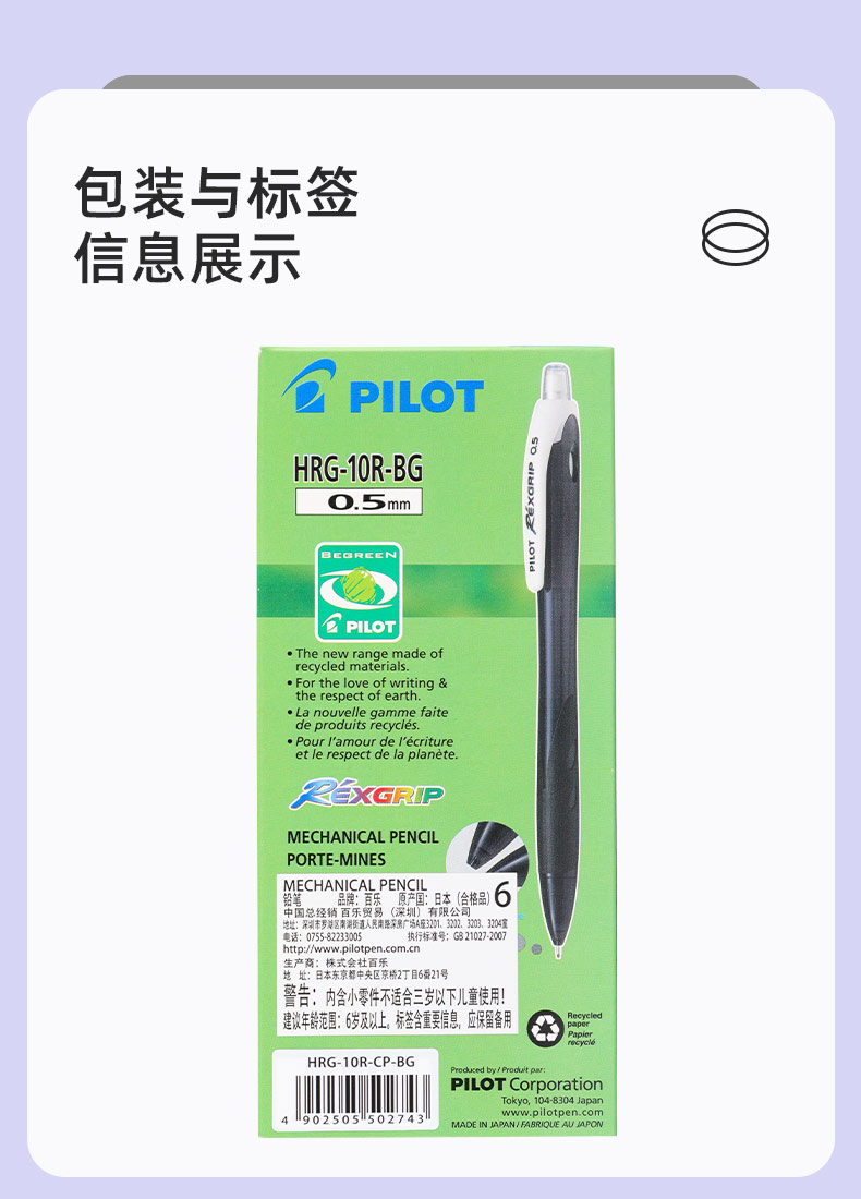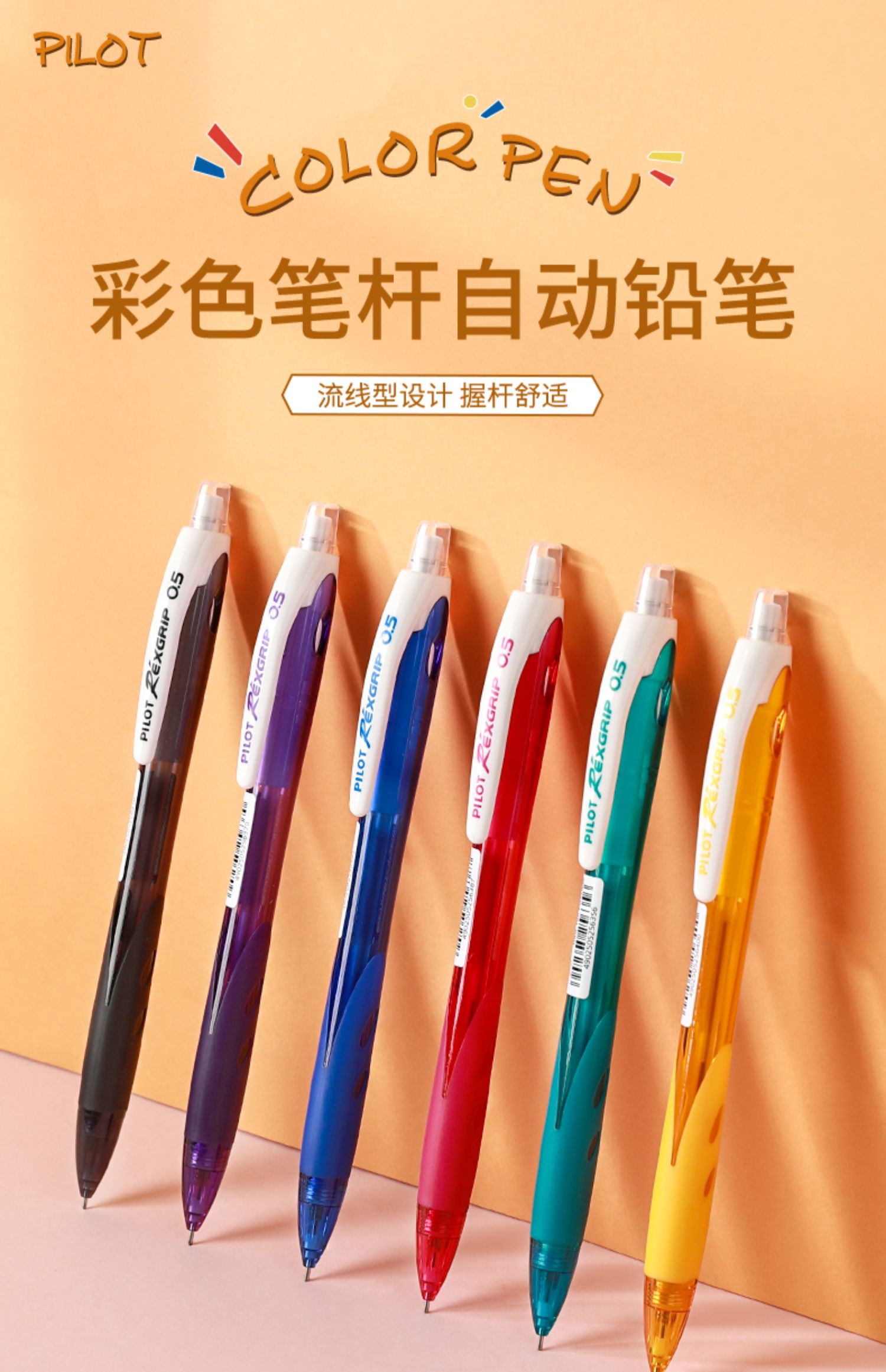 日本PILOT百乐自动铅笔0.5彩色杆小学生用活动铅带自带橡皮擦儿童铅笔清新女HRG-10R