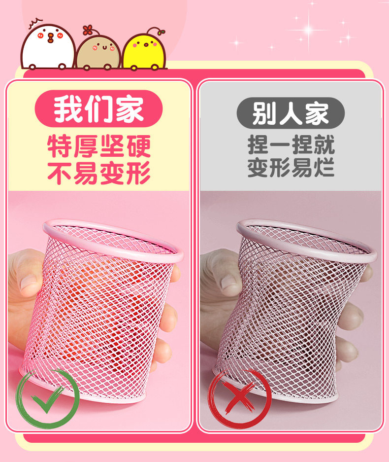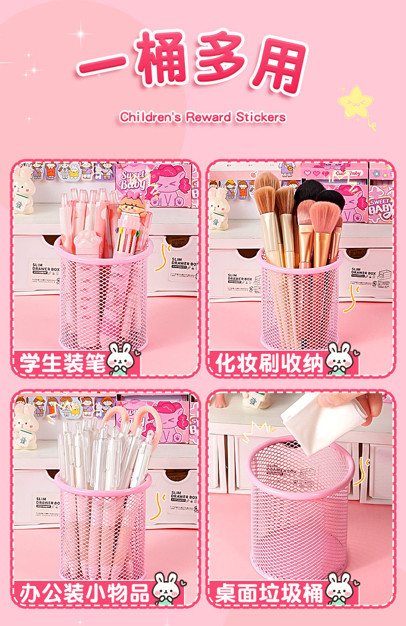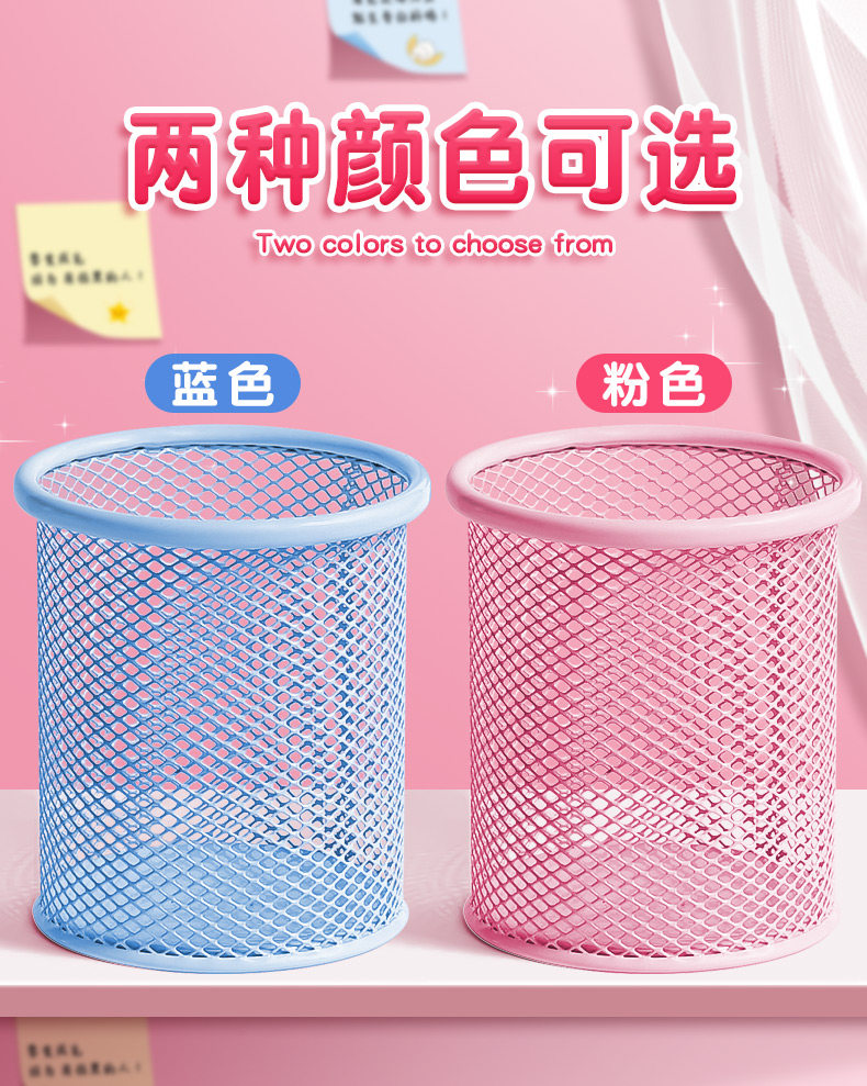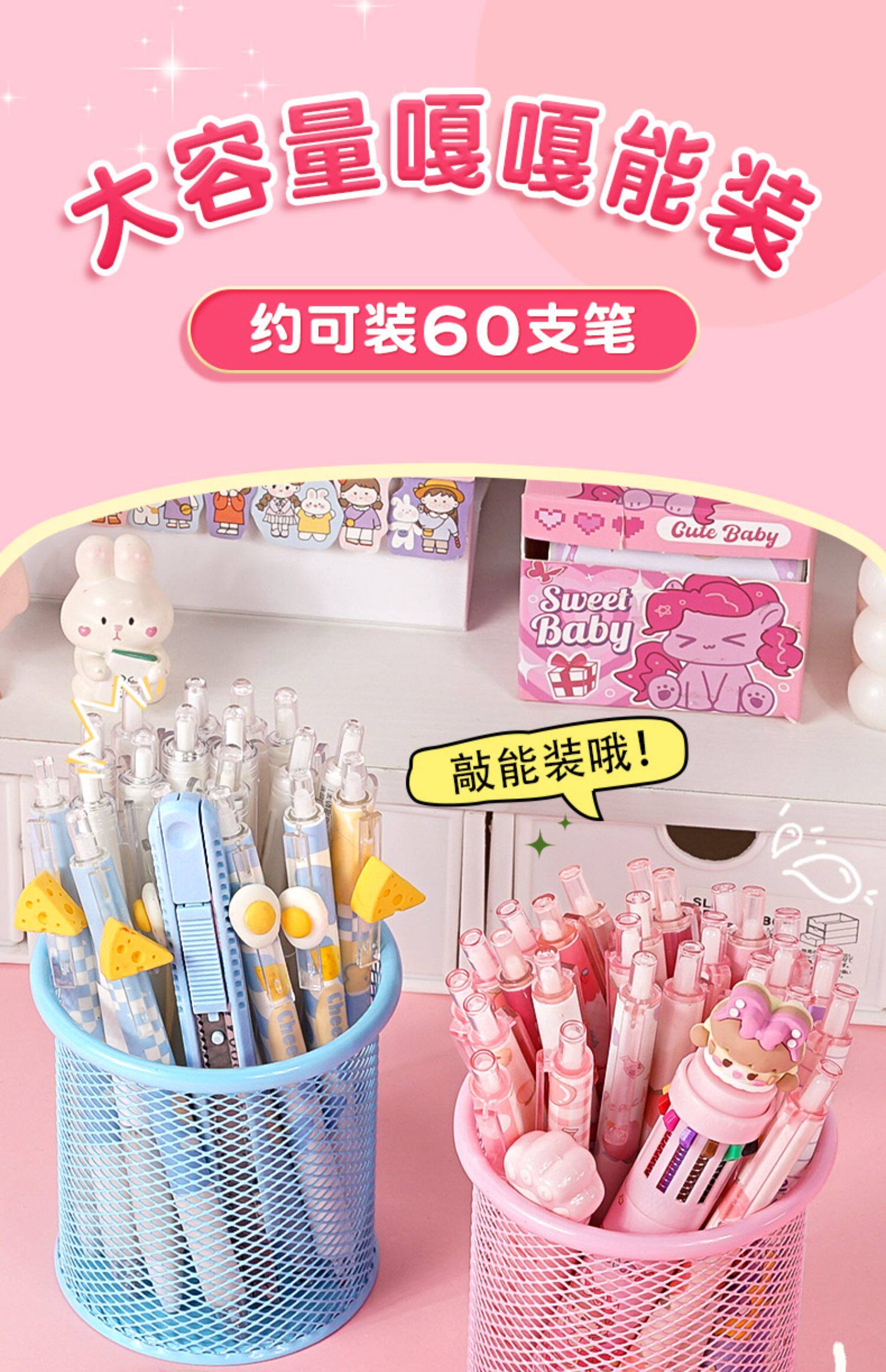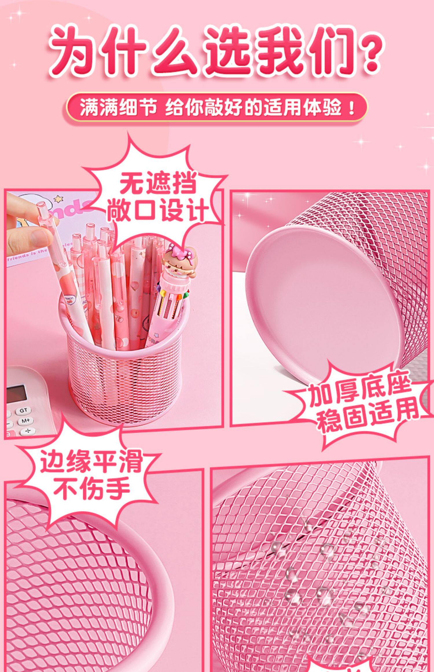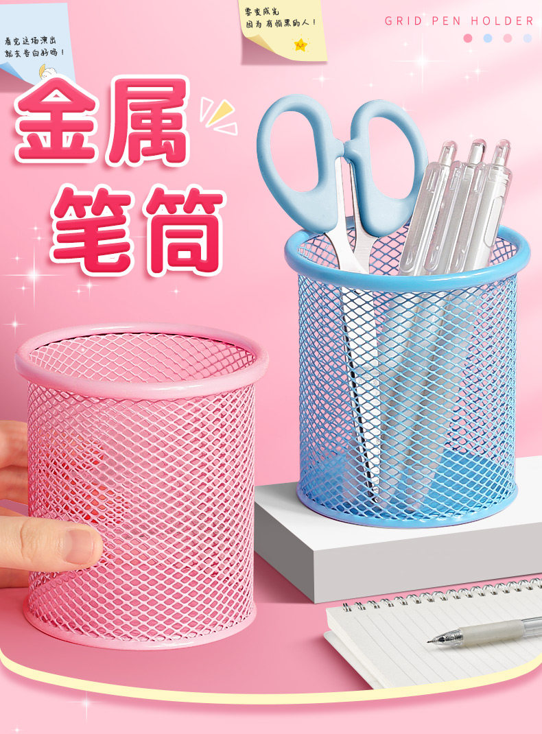 金属笔筒办公室桌面学生笔桶收纳盒大容量超大铁网简约铅笔筒化妆刷笔盒轻奢高级感创意办公桌文具办公用品